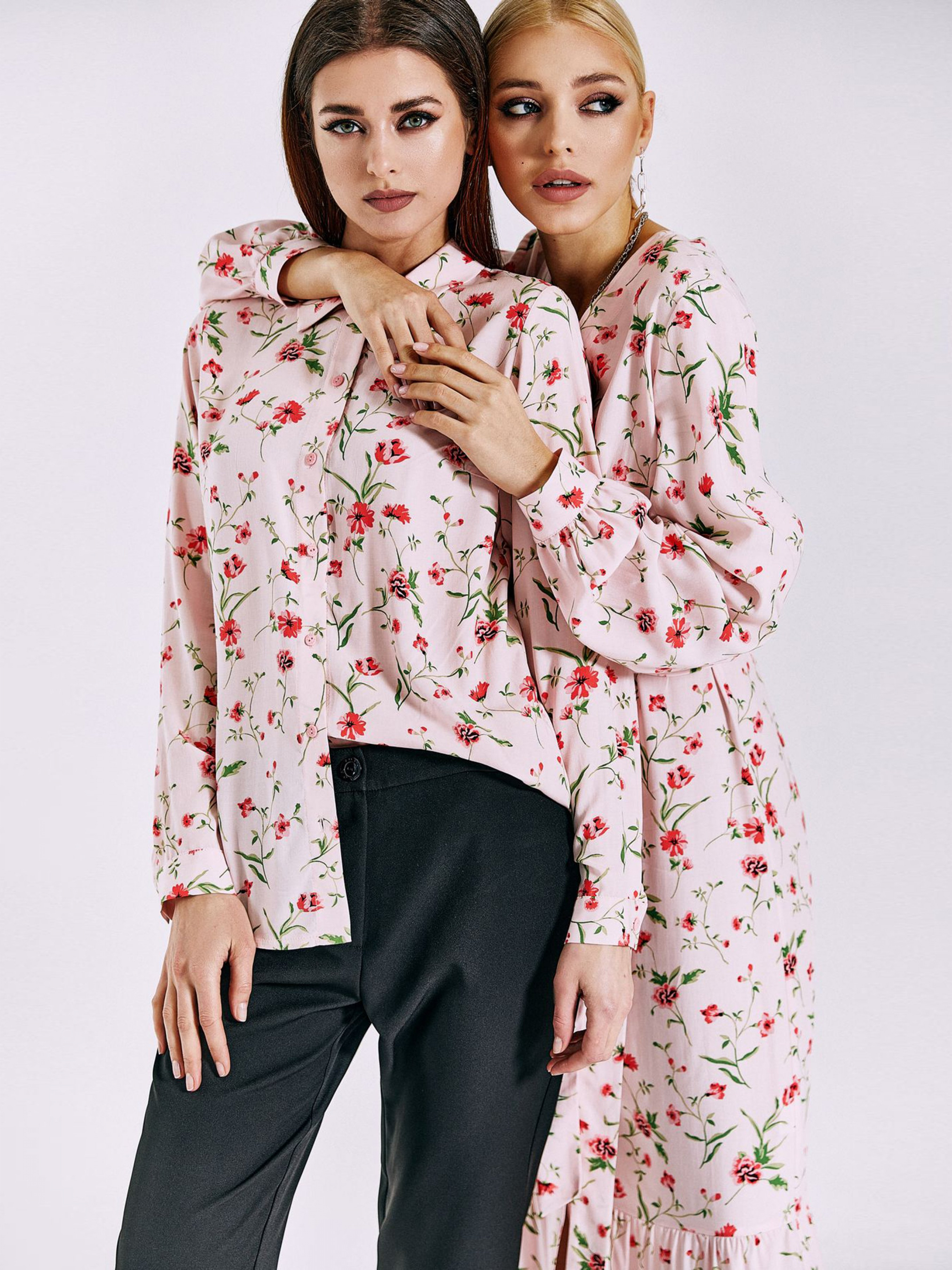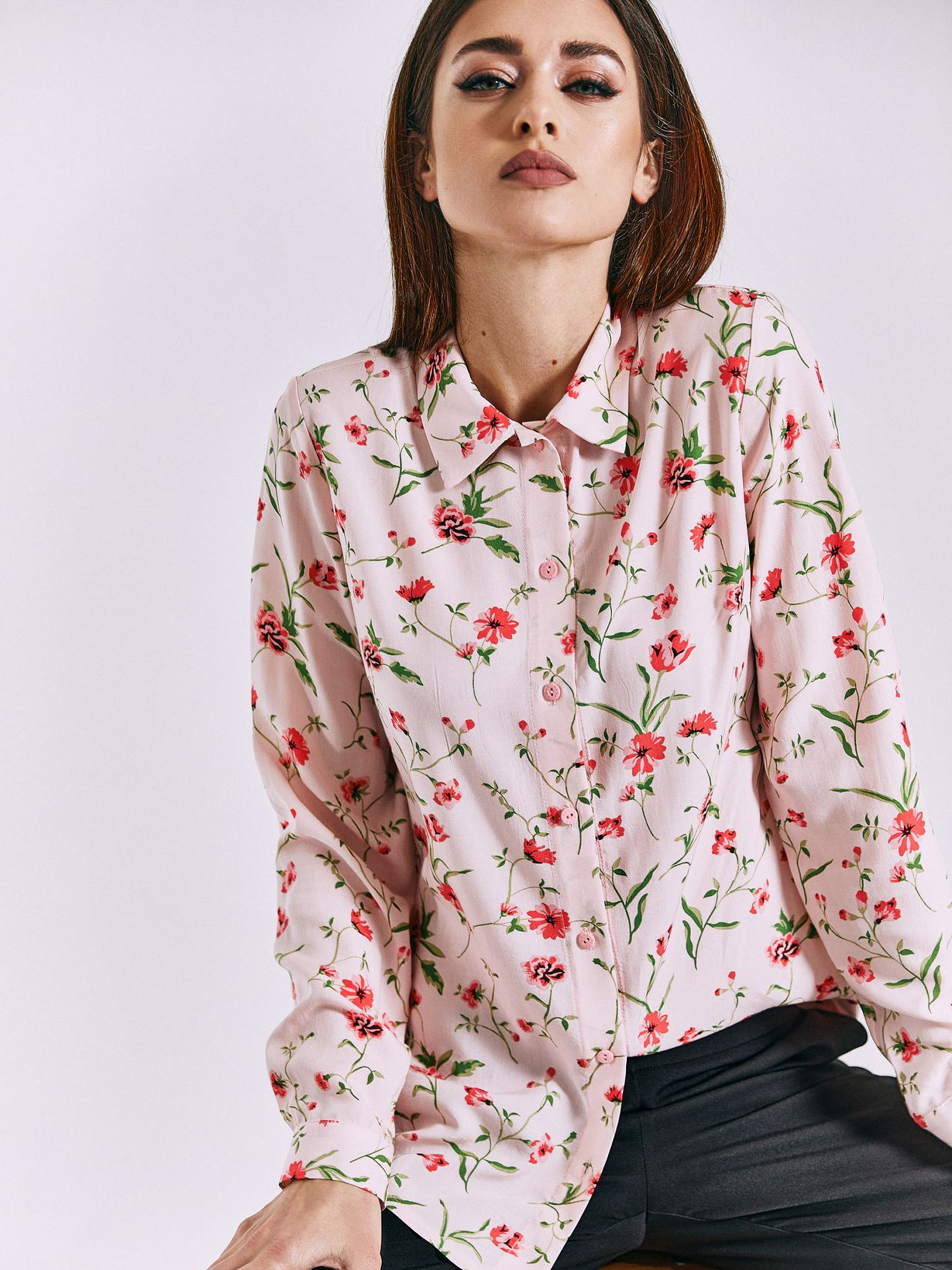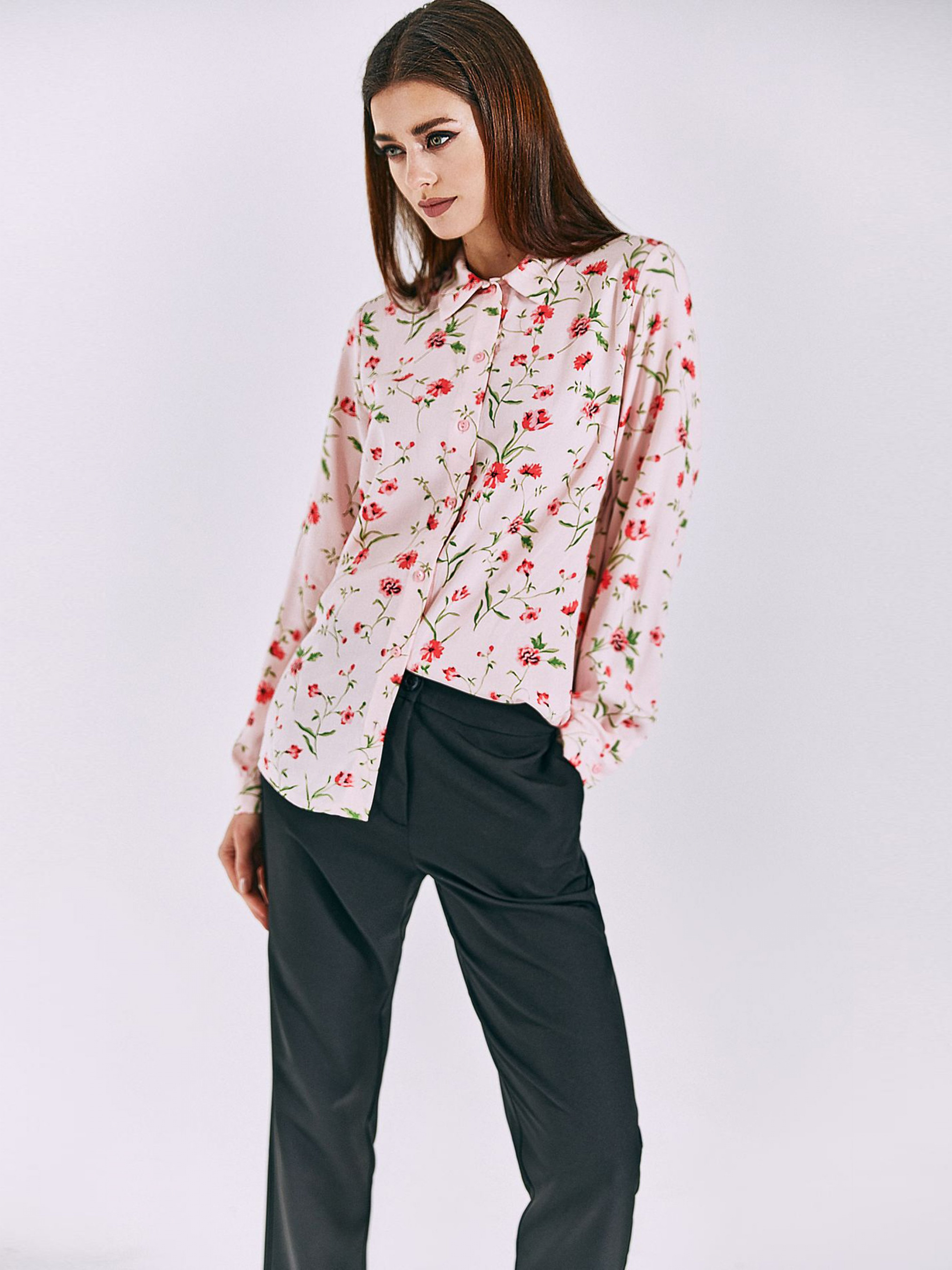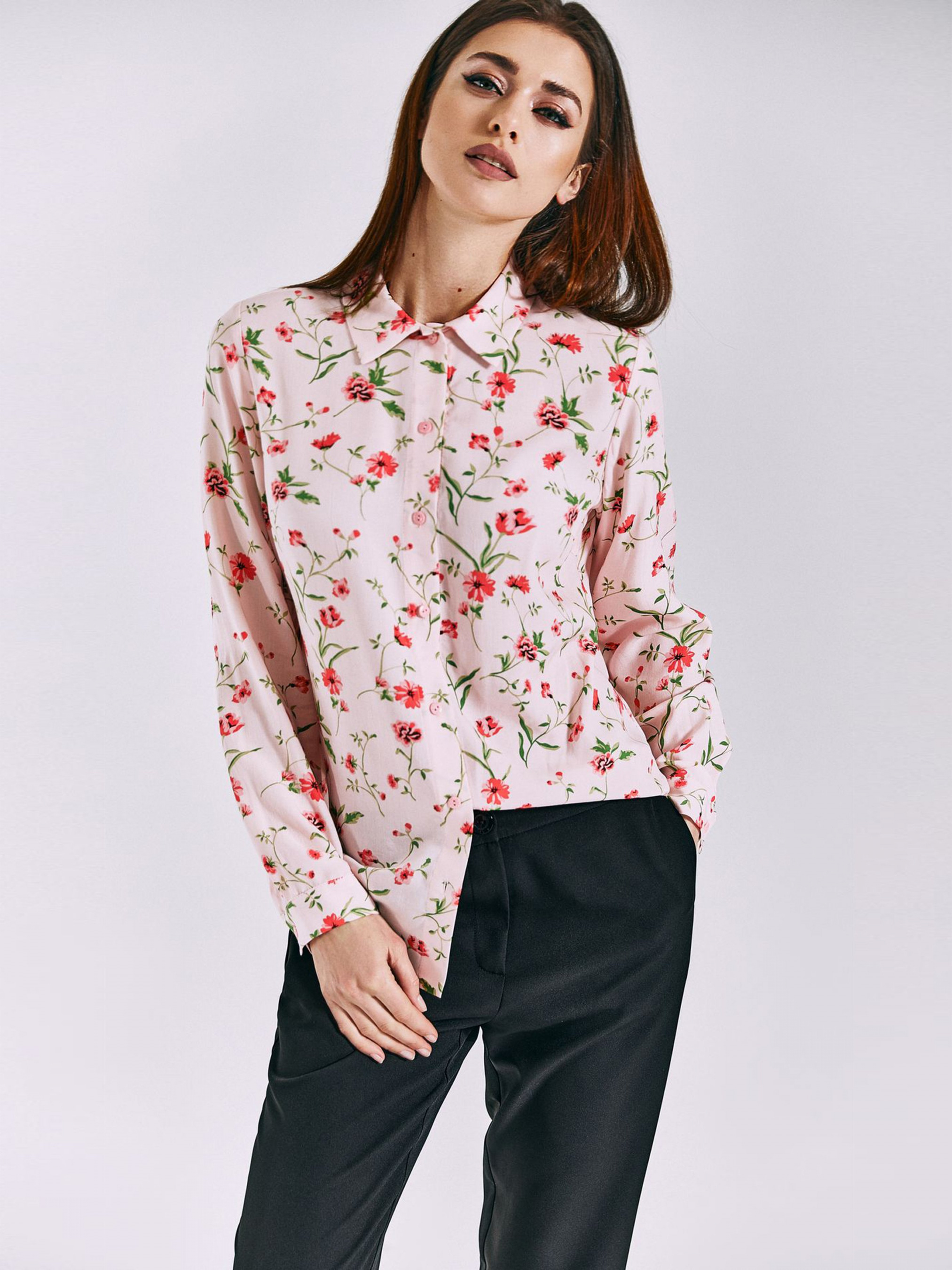 Рубашка повседневная VOVK модель 011000 принт квіти на рожевому