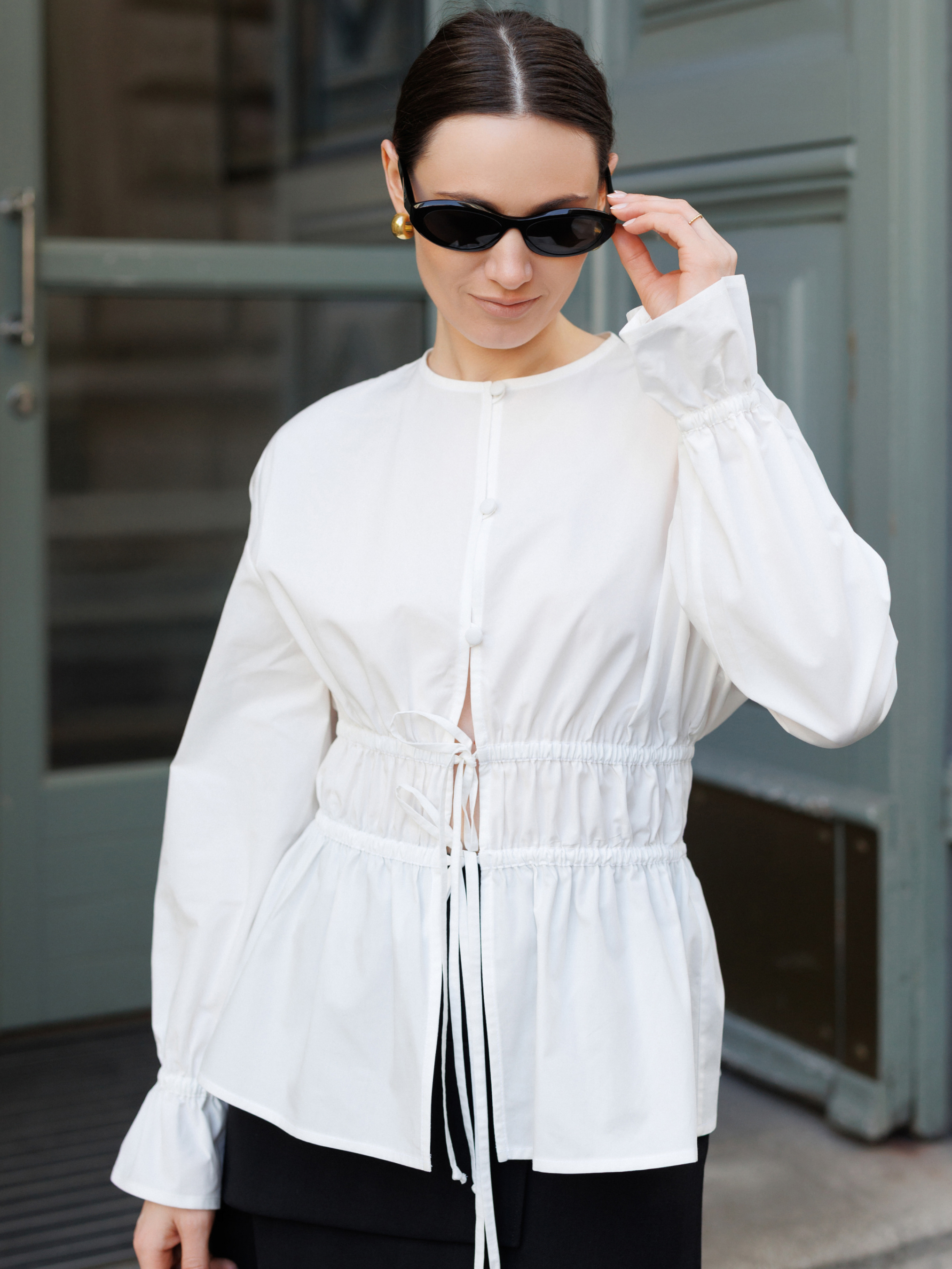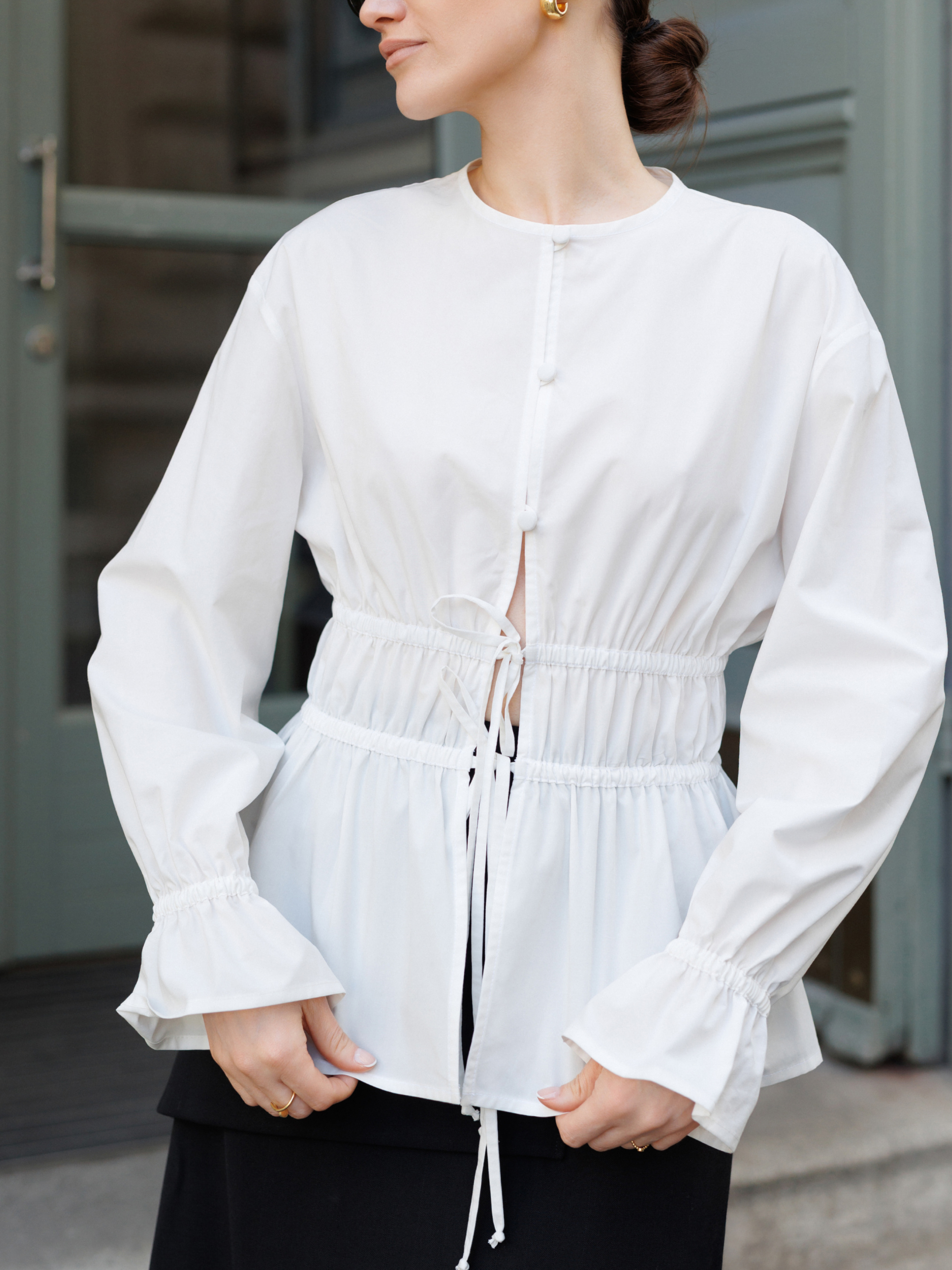 Белая блуза из премиального батиста. Нежная и невесомая, очень приятная на ощупь. Рукава внизу на резинке, их длину можно регулировать. При пошиве использована премиальная обработка: все внутренние швы — французские и окантованные. Всё это обеспечивает долговечность изделия и эстетическое удовольствие.