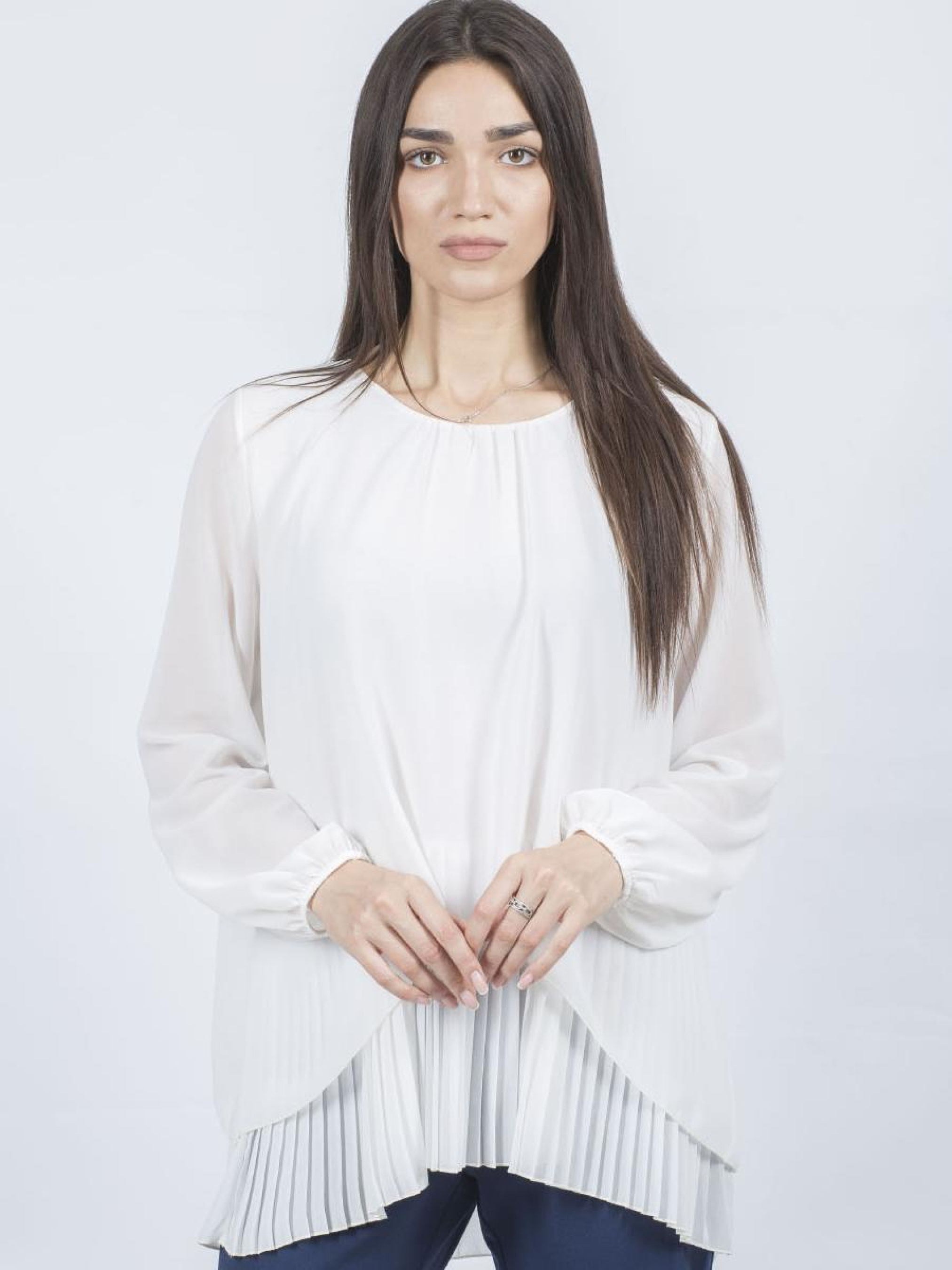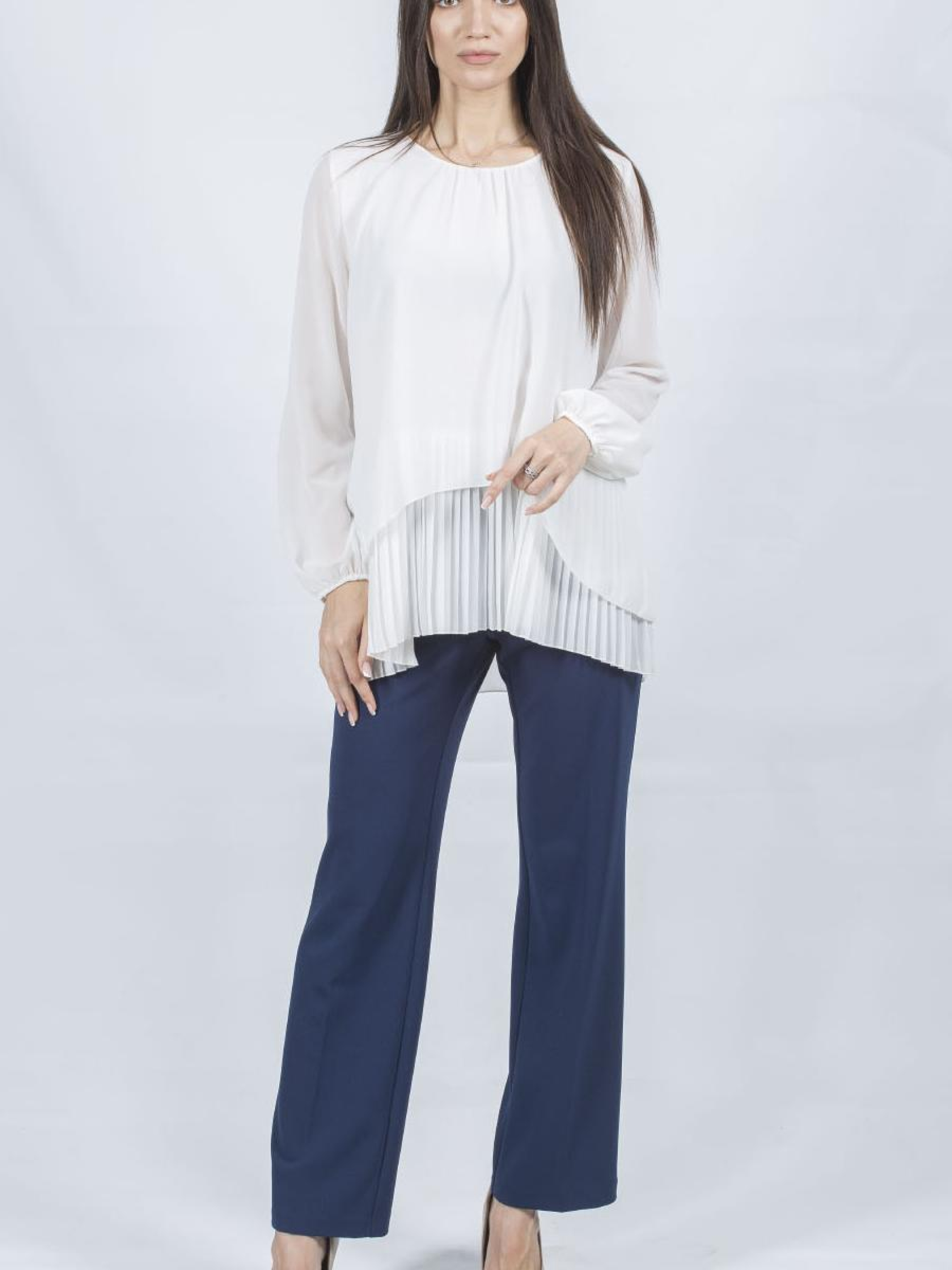 Представляем вашу новую любимицу гардероба – элегантную женскую блузу с втачными длинными рукавами. Это универсальное однотонное произведение мастеров моды обеспечивает идеальный баланс между классическим и нарядным стилем, добавляя нотку утонченности в ваш обычный casual образ. Блуза имеет круглый вырез и пуговицы, что делает ее практичной и легкой для одевания. Особое очарование добавляет деталь с бахромой, которая придает изделию уникальности. Приталенный силуэт подчеркивает вашу фигуру, сохраняя комфорт в любое время года – лето, осень, зима или весна. Идеальная блуза для современной женщины, ценящей стиль и комфорт.