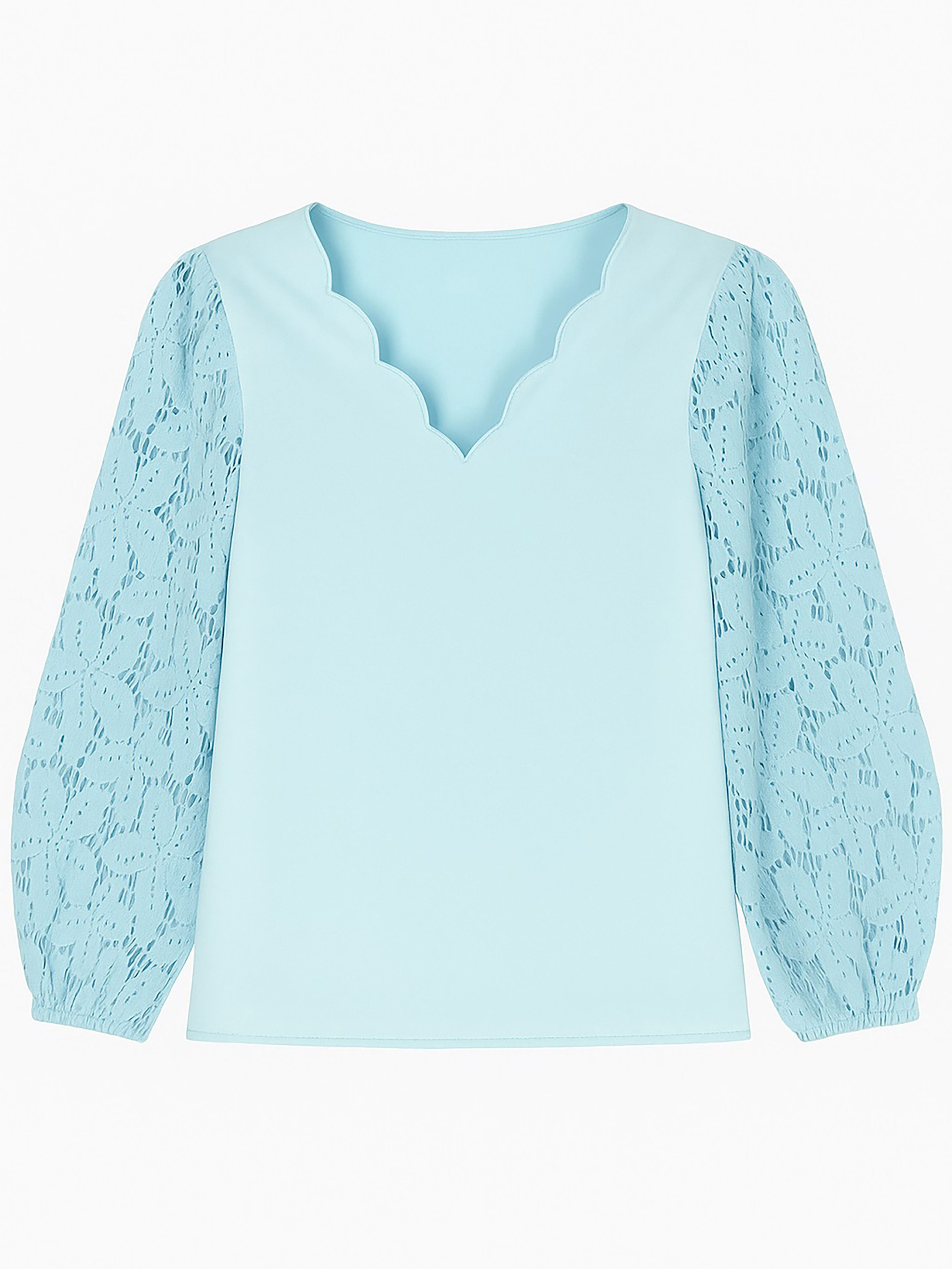 Блуза с кружевом и V-образным вырезом ***Размер - XL Полуобхват пояса - 57,00 см Длина рукава - 64,00 см Длина изделия - 67,00 см Ширина по плечам - 41,00 см Объем груди - 110,00 см Состав: 100% полиэстер