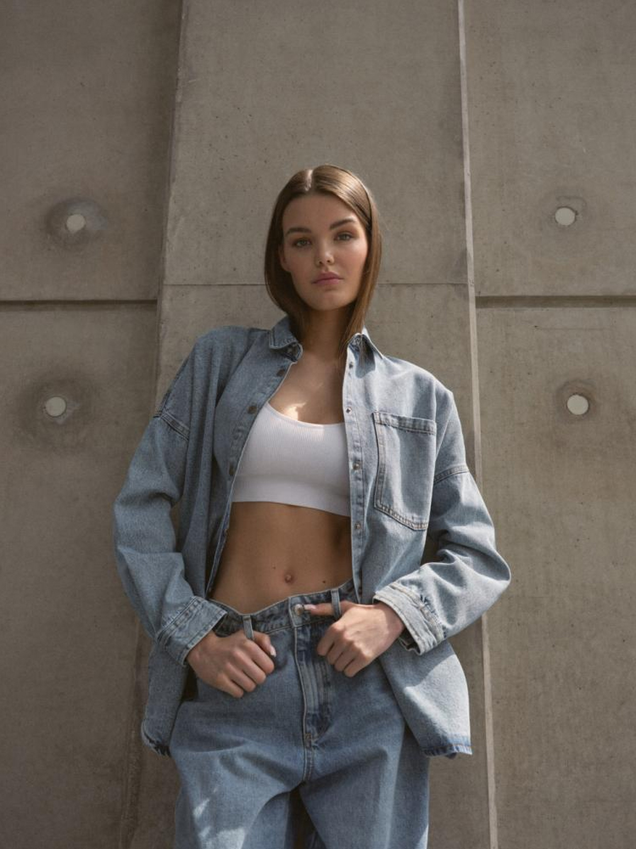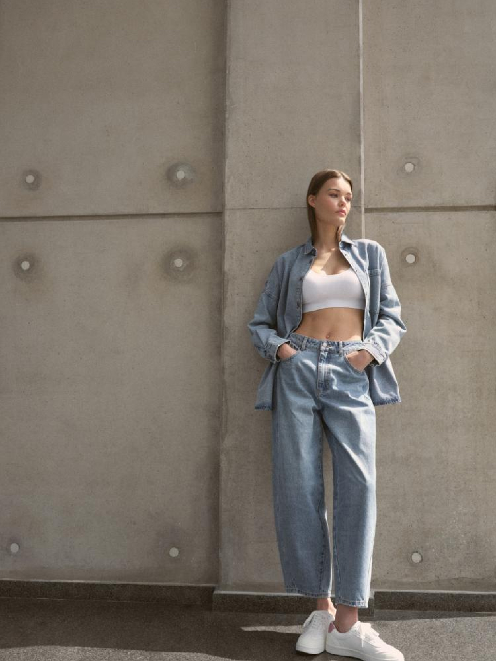 Рубашка DEMNO 10045042 Джинсовая рубашка свободного кроя с выстиранным эффектом: - просторный, удлиненный крой, - длинный рукав со спущенным плечом, - большой передний карман, - карманы в боковых швах, - застегивается на состаренные серебряные кнопки, - доступна в светло-голубом выстиранном цвете. Сезон: осень/зима 2024 Состав: 100% хлопок Уход: - стирка при максимум 40 °С - не отбеливать - сушите при низкой температуре - гладить максимум при темп. 150°С - не химчистка Размер на модели - XS/S Рост модели - 178 см