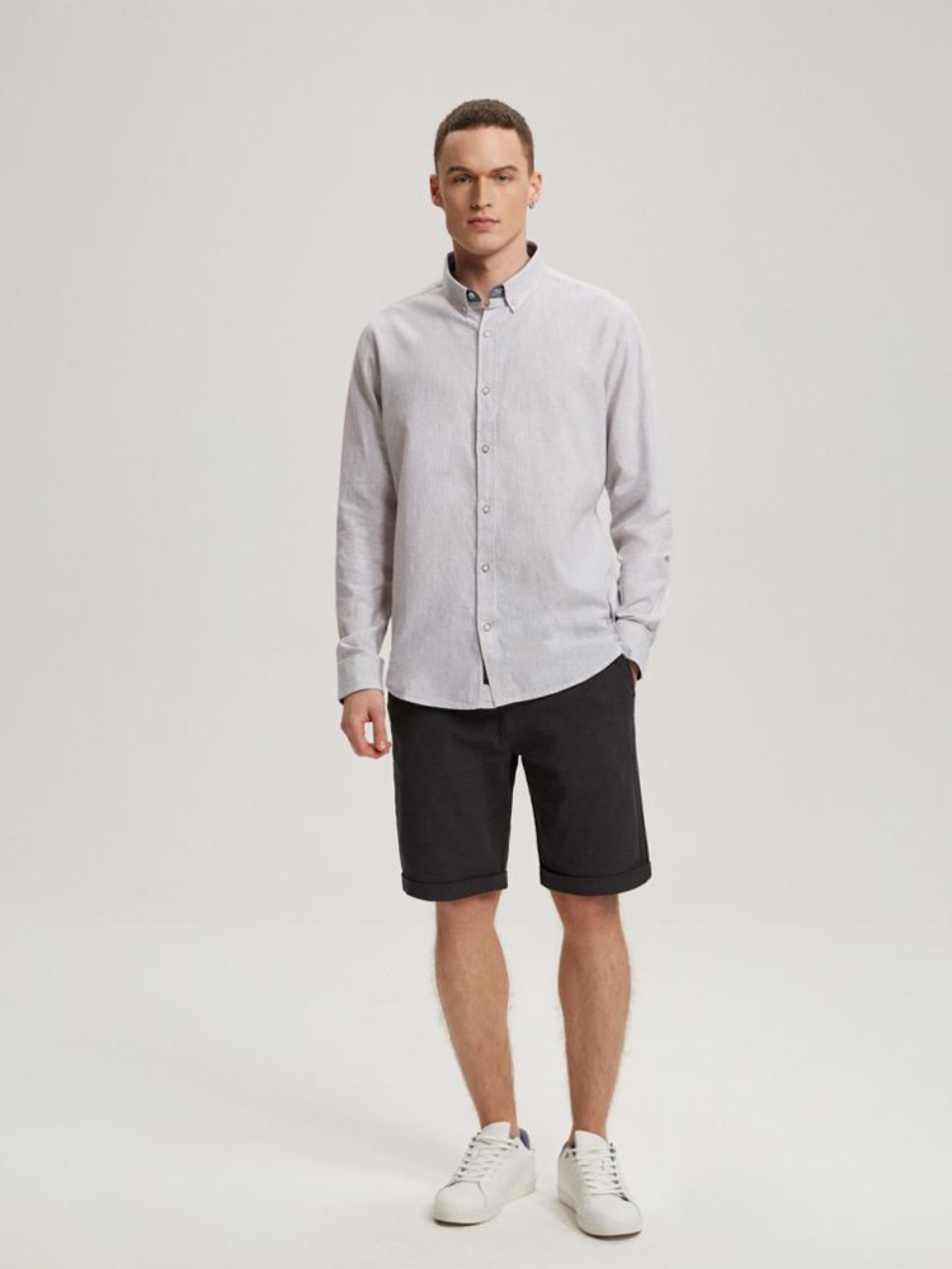 Рубашка PRM LINEN 10041333 Рубашка приталенного кроя с длинными рукавами: - из смеси льна и хлопка, - характерный узор в вертикальную полоску. Сезон: Весна/Лето Состав: 70% хлопок 30% лен. Уход: - стирка при максимум 30 °С - не отбеливать - не сушить в сушильной машине - гладить максимум при темп. 150 °С - не химчистка