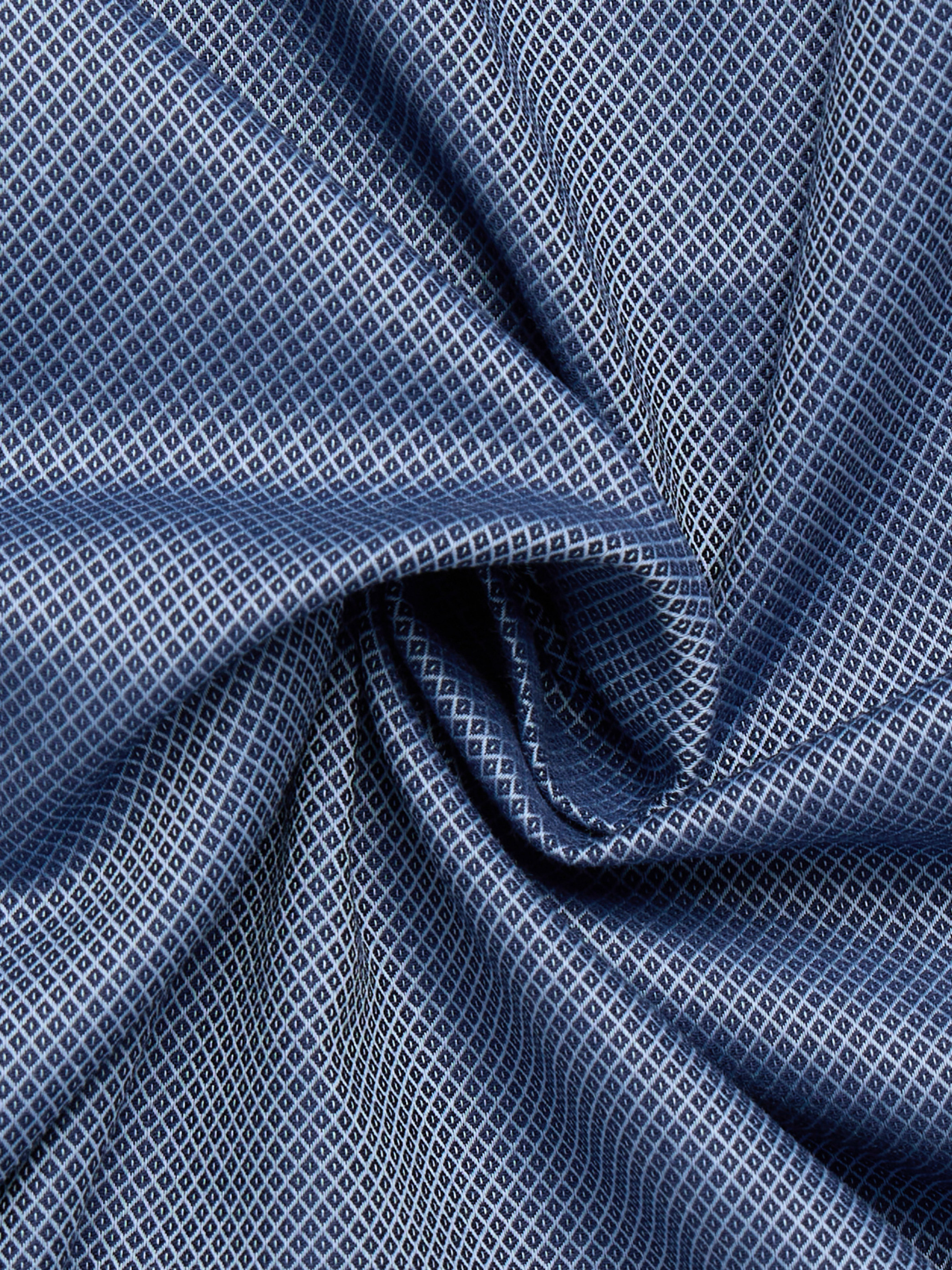 Классическая темно-синяя рубашка сочетает чистоту стиля и современные детали. Приталенный Slim Fit подчеркивает силуэт, а Kent Collar придает образу стильный акцент. Особое внимание привлекают контрастные черные пуговицы, которые добавляют изделию современного шарма. Изготовлена из 100% хлопка с эффектом non-iron, рубашка всегда выглядит аккуратно без дополнительной глажки. Характеристики модели Состав: 100% хлопок Ткань: Dynamic Cotton™ — инновационная ткань с естественной эластичностью Крой: Slim Fit — приталенный силуэт Цвет: темно-синяя Воротник: Kent Collar Манжеты: Комбинированные, с возможностью регулировки Пуговицы: Контрастные черные Длина рукава: Стандартная (около 67 см) Особенности: Non-iron — лёгкий уход без глажки Применение: Для офиса, деловых встреч и торжественных мероприятий Преимущества Безупречный вид весь день: эффект non-iron позволяет рубашке оставаться гладкой без глажки Комфорт и эластичность: технология Dynamic Cotton™ обеспечивает свободу движений Современный классический дизайн: Slim Fit, Kent Collar и контрастные черные пуговицы добавляют элегантности и стильный акцент Универсальность: подходит для офиса, деловых встреч и праздничных мероприятий