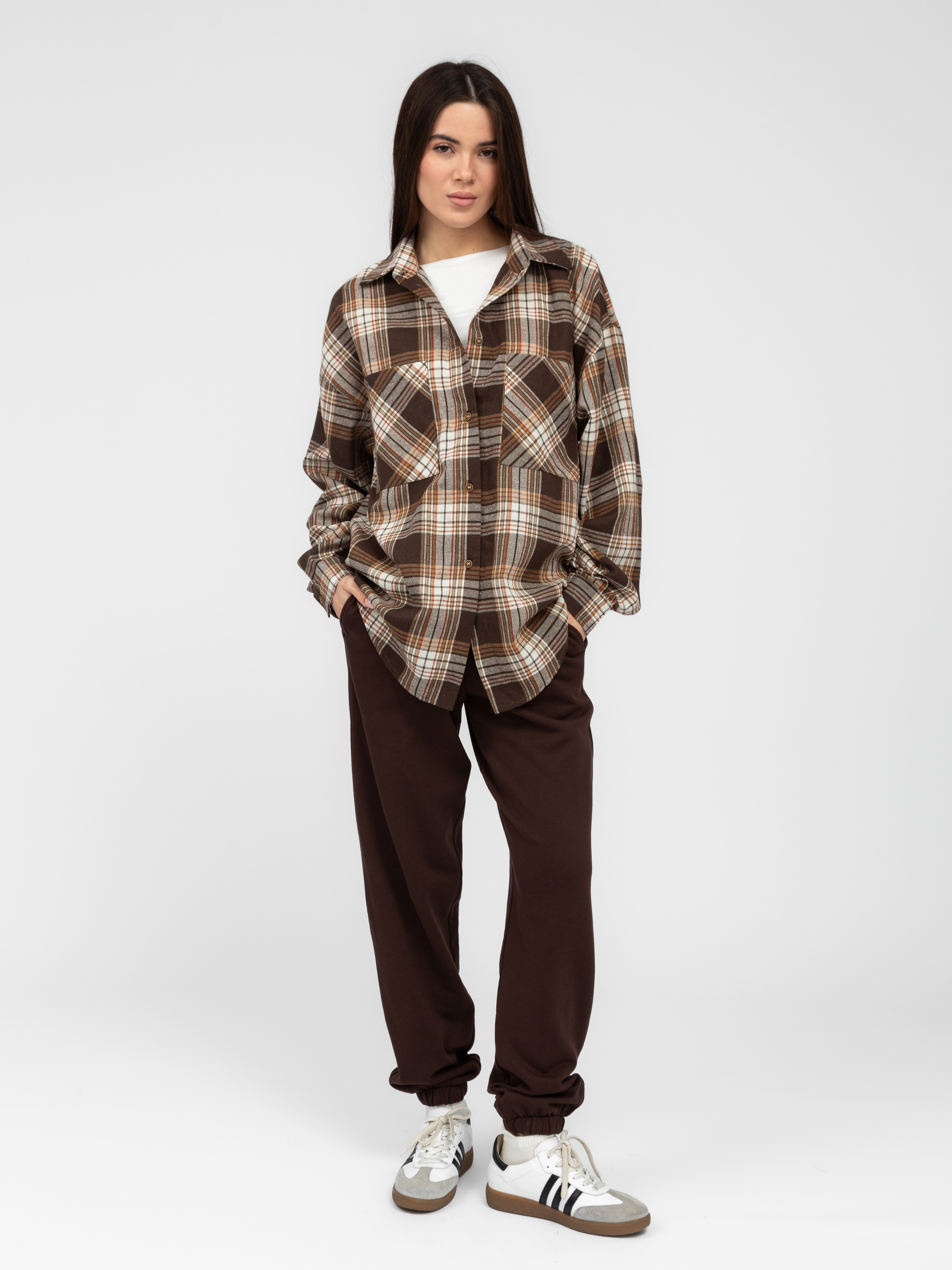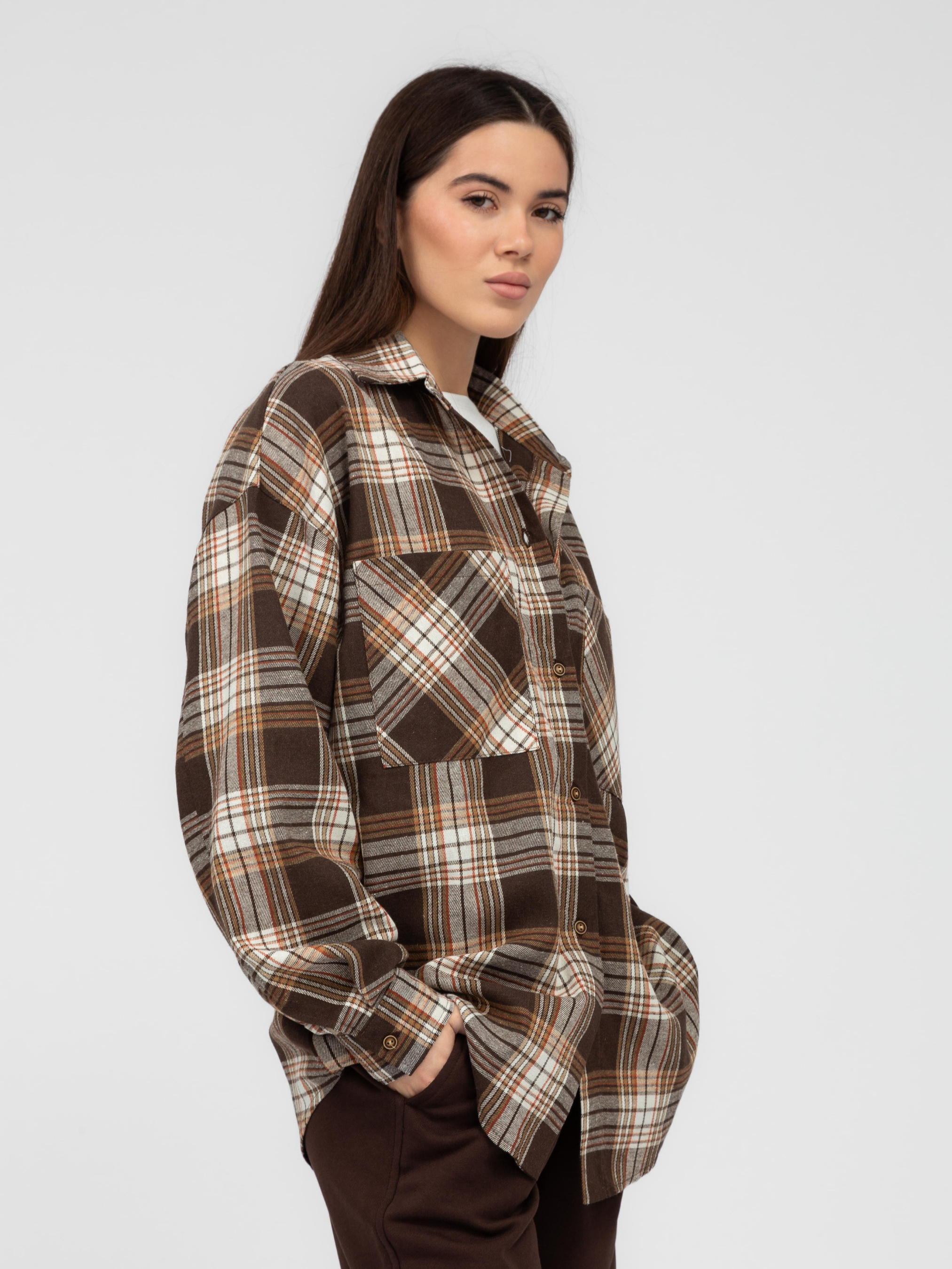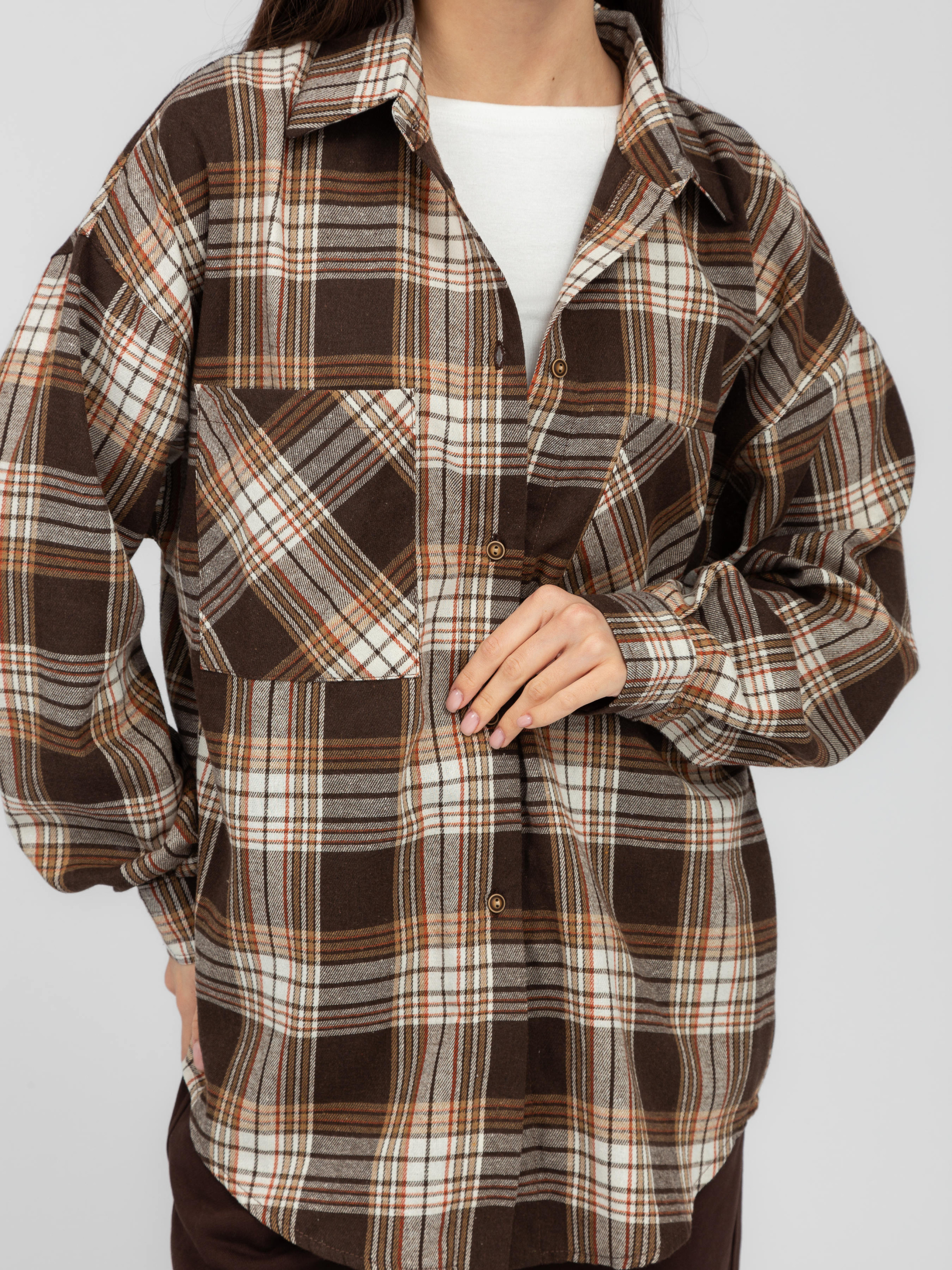 Зручна сорочка в клітинку створена для стильних повсякденних образів. Її можна носити як самостійний елемент одягу або ж поєднувати з топами, майками та футболками. Сорочка виготовлена з акрилу та бавовни. Завдяки такому поєднанню матеріалів тканина приємна до тіла, стійка до зношування та чудово зігріватиме у прохолодну весну та осінь. При належному догляді речі з таким складом довго зберігатимуть свій колір та привабливий зовнішній вигляд. Особливості моделіСорочка прямого вільного крою має довгі рукави та комірець. Також ця модель має дві нагрудні кишені. Застібається вона за допомогою ґудзиків. Представлена сорочка у стриманій палітрі відтінків, тому вона буде чудово комбінуватися з будь-якими джинсами та штанами. Як доглядати• Рекомендована температура для прання - 30°C• Віджимати на найнижчих обертах• Бажано використовувати рідкі пральні засоби• Сушити у розправленому вигляді на рівній поверхні Замовляйте цю стильну сорочку в клітинку на нашому сайті зі швидкою доставкою. Також ви можете завітати на примірку до магазинів Famo.