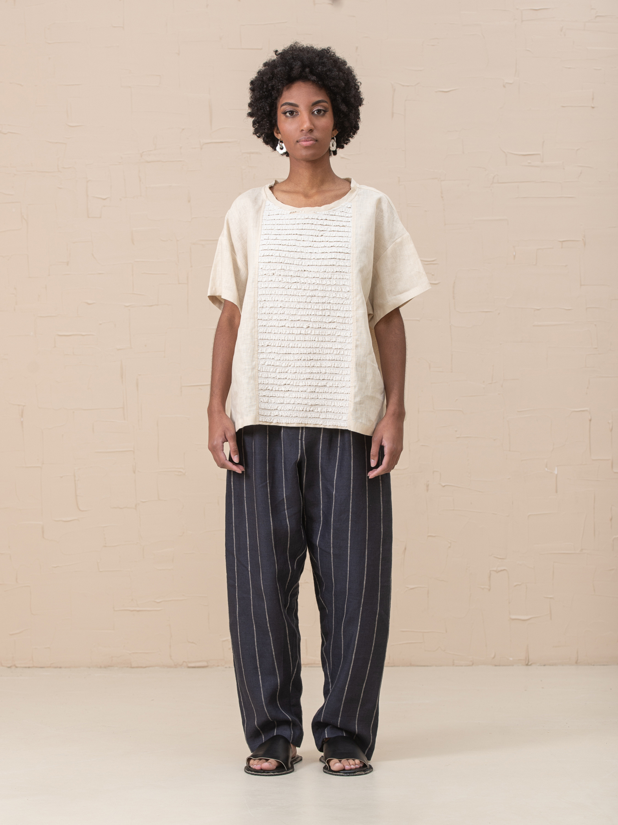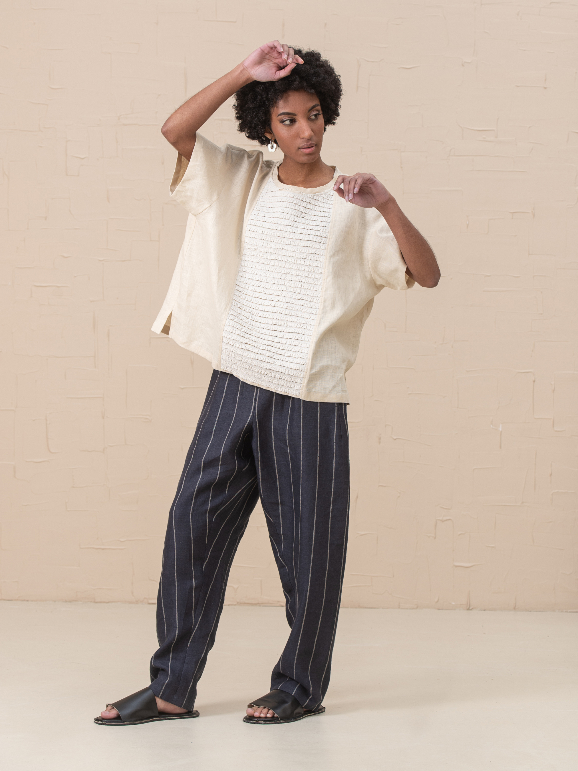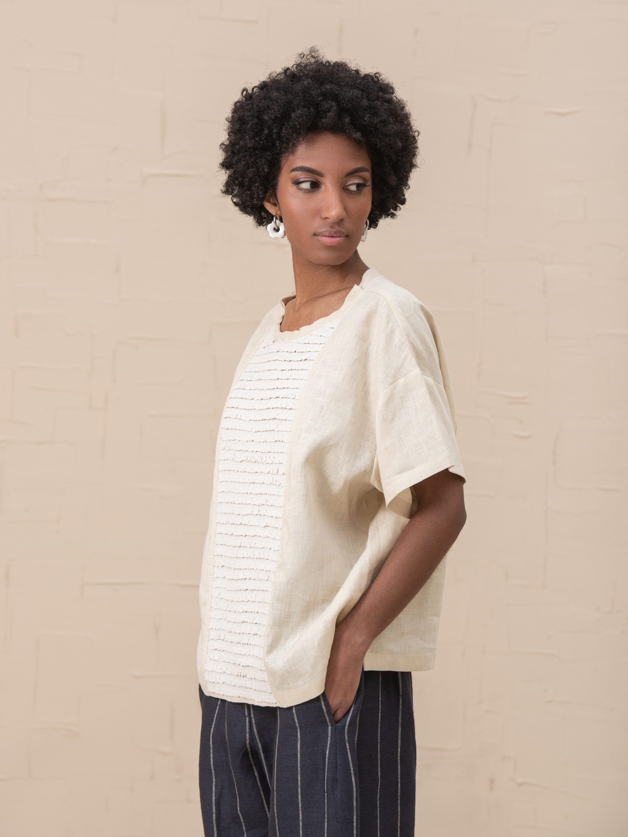 Наш топ Doris изготовлен из льна средней плотности и имеет квадратный крой. Боковые разрезы по бокам. По центру переда - хлопковое кружево. Стиль идеально подходит для многослойности. Лен 100% Наш размер One size Грудь 128cm Талия 128cm Бедра 128cm Длина 61cm Длина рукава 41cm Ширина рукава 41cm Ширина низа рукава 41cm Размер XS-XXL