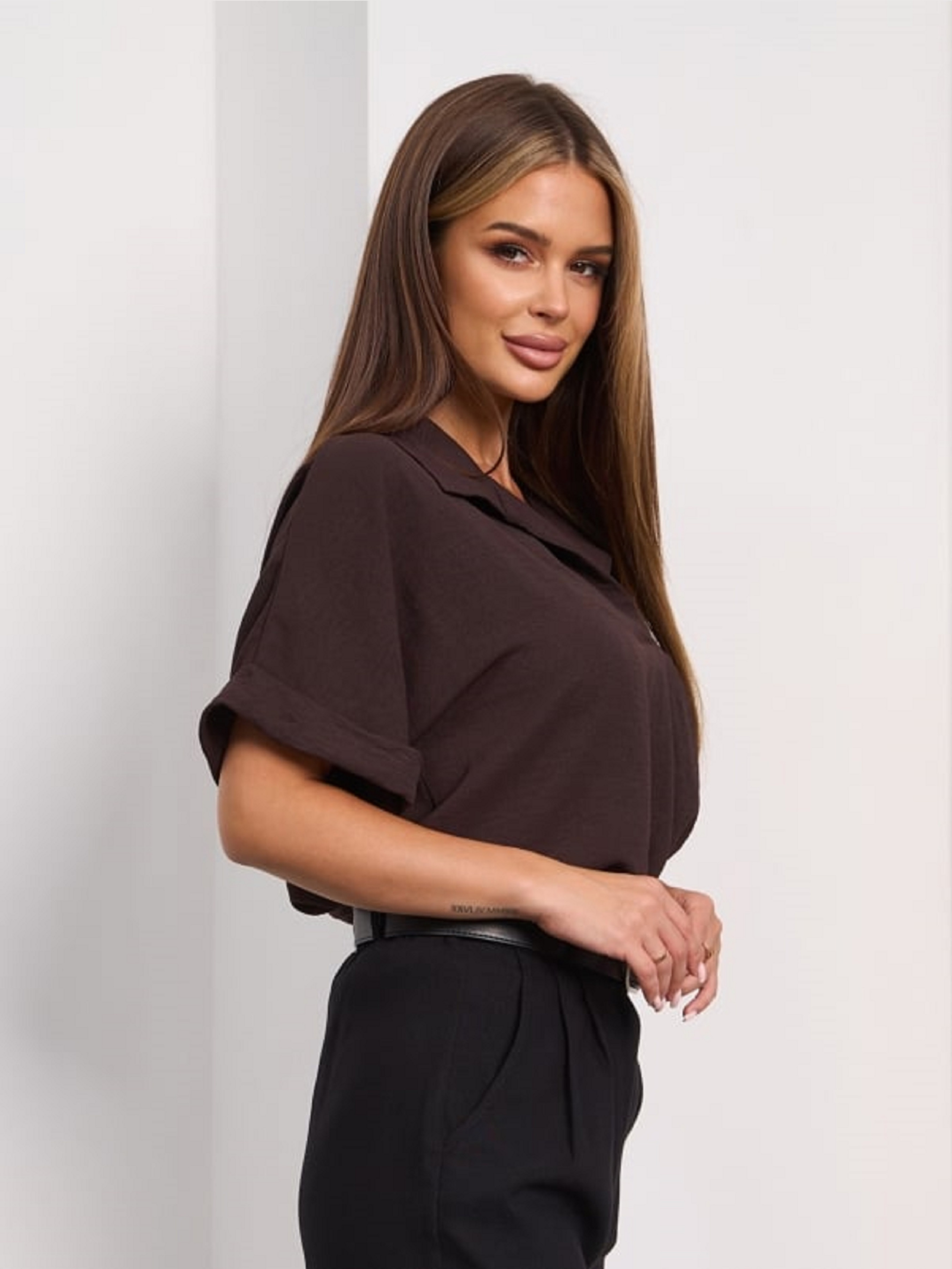 Блуза ISSA Plus модель 15278_темно_коричневый