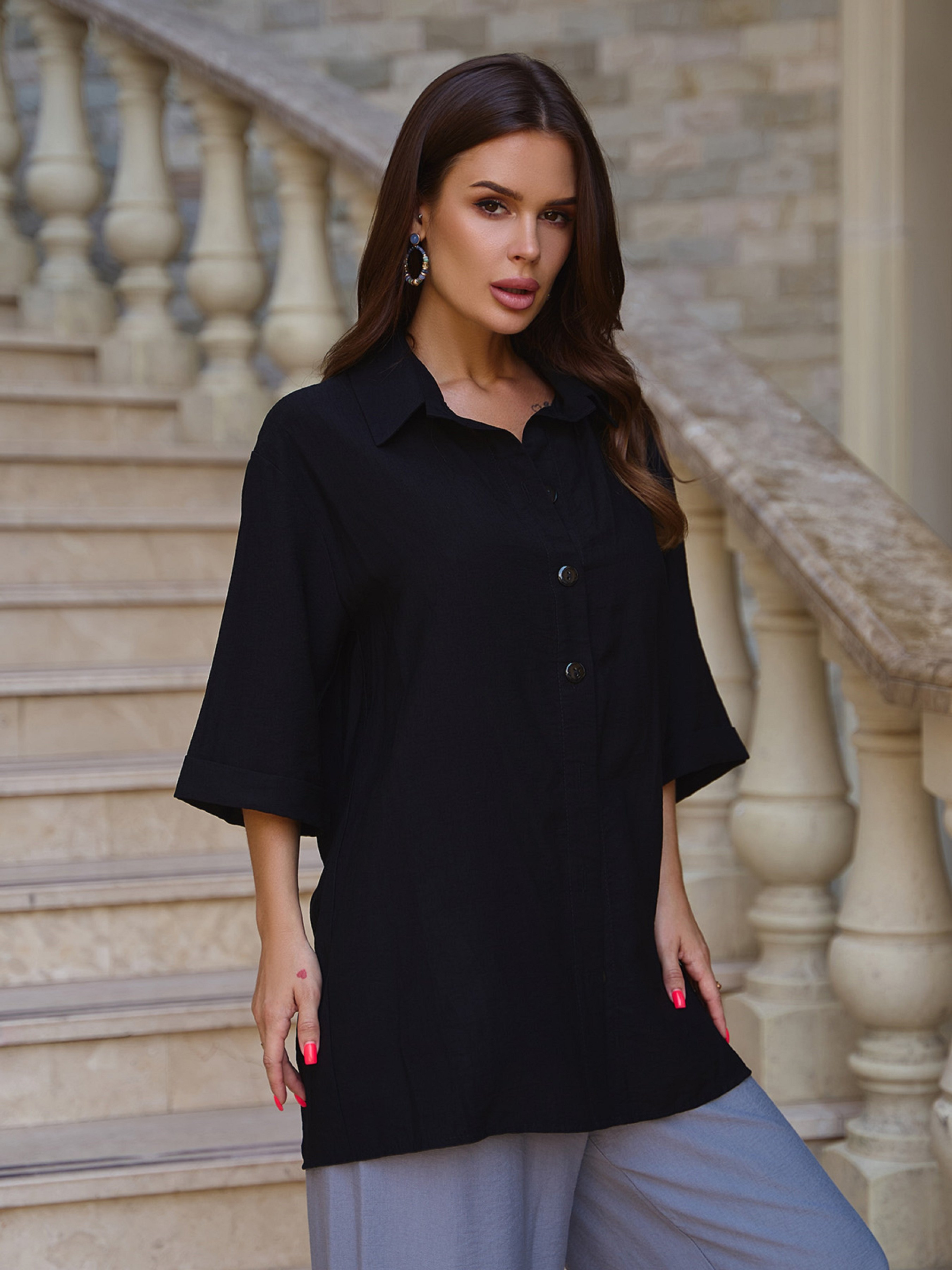 Рубашка повседневная ISSA Plus модель 14784_черный