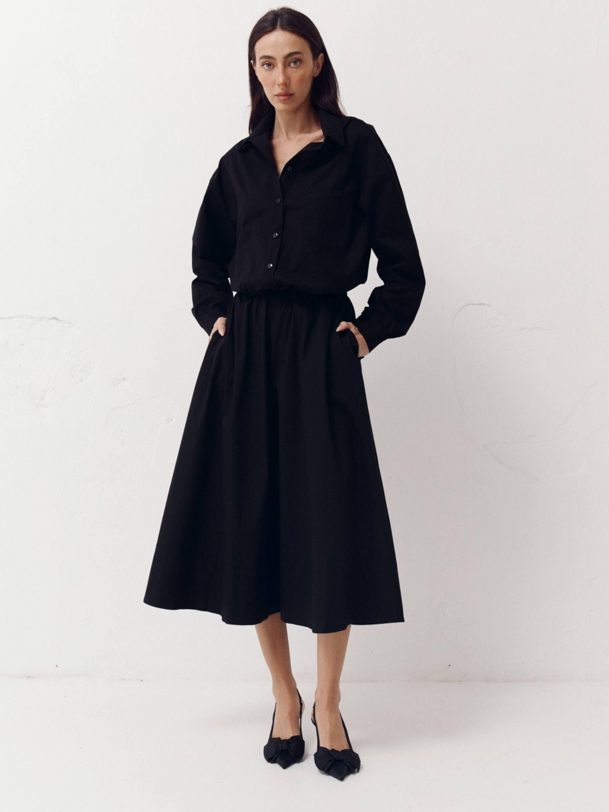 Рубашка с резинкой на поясе Shirt Pure в черном цвете. модель 410