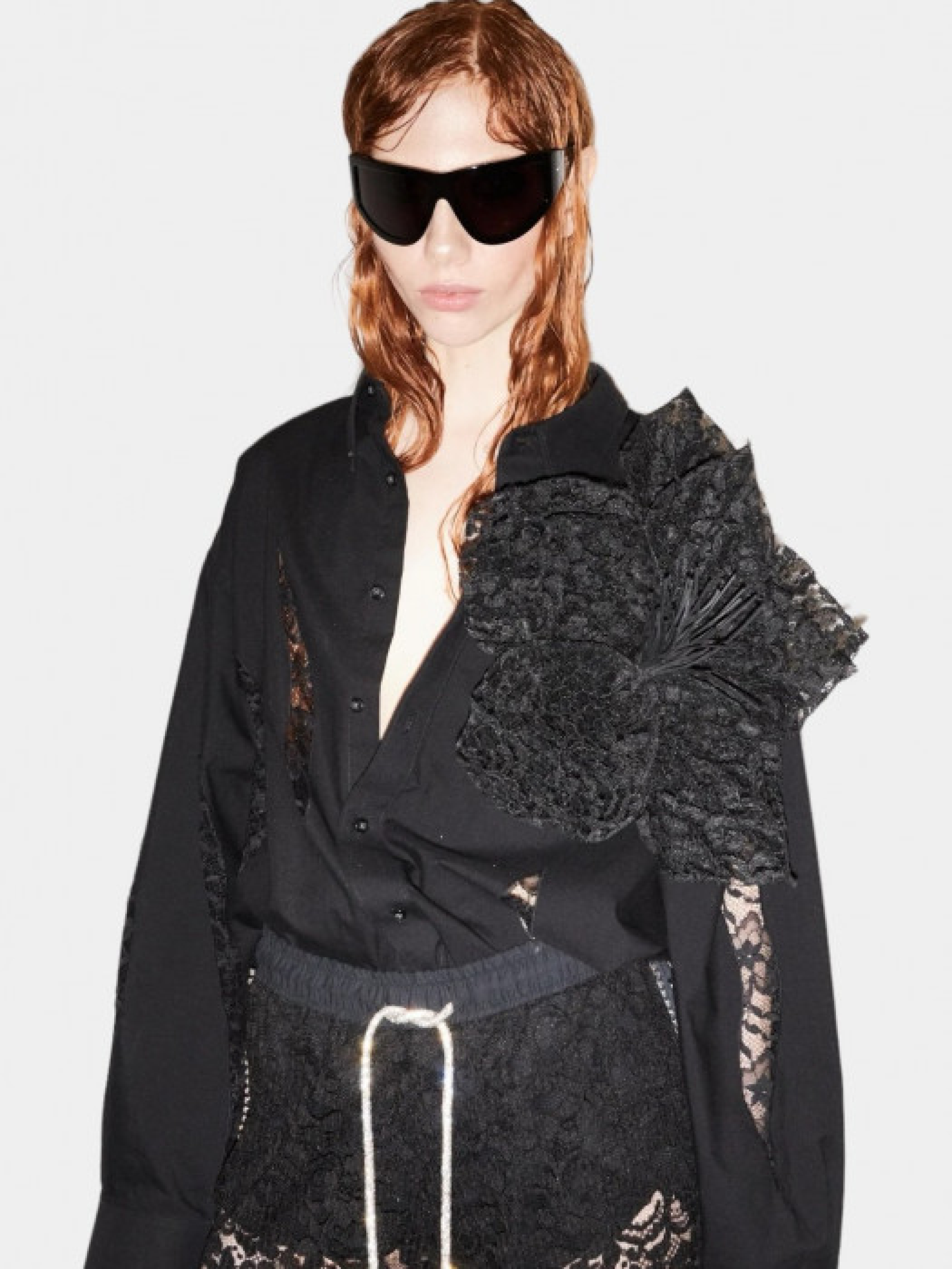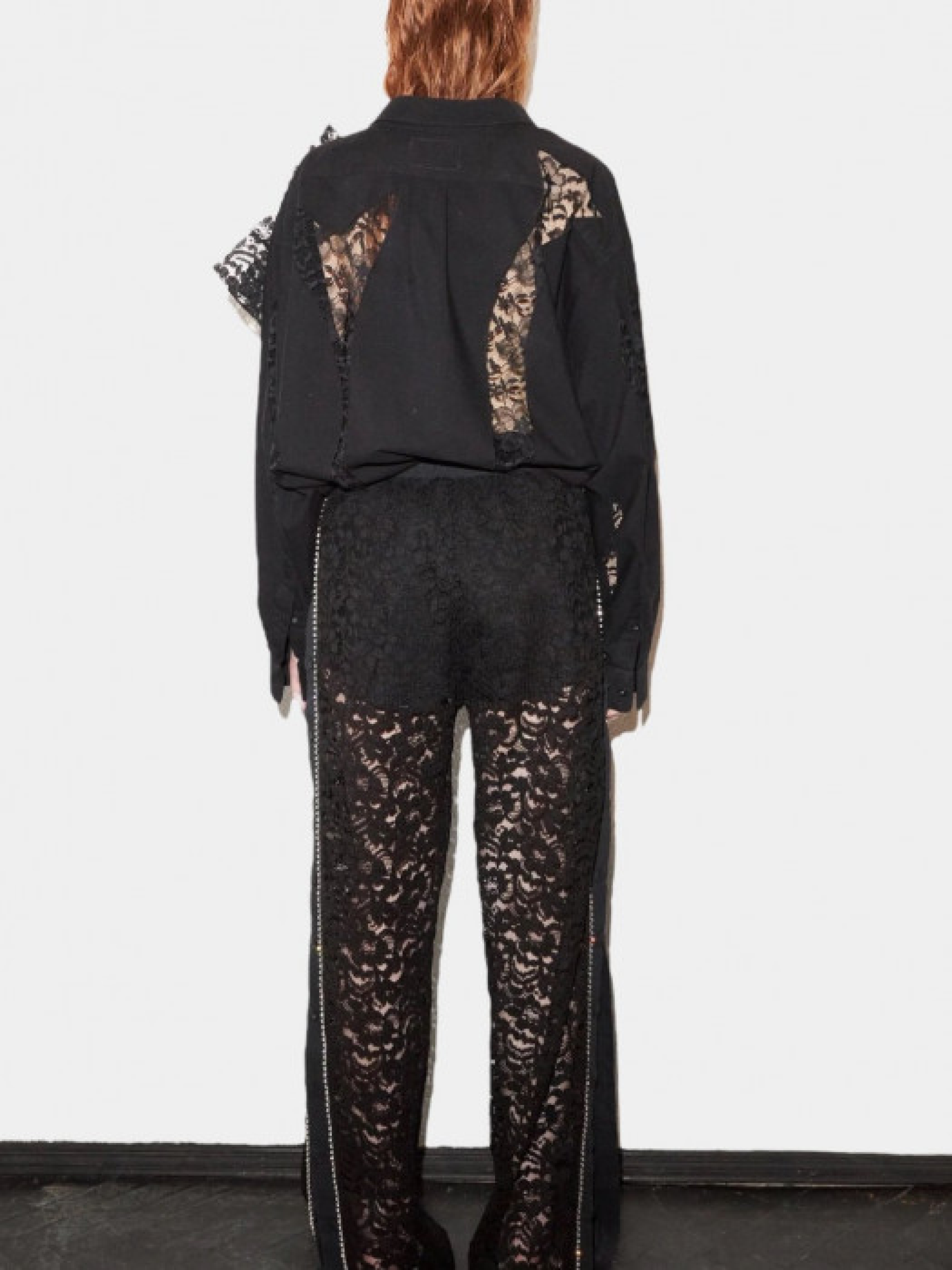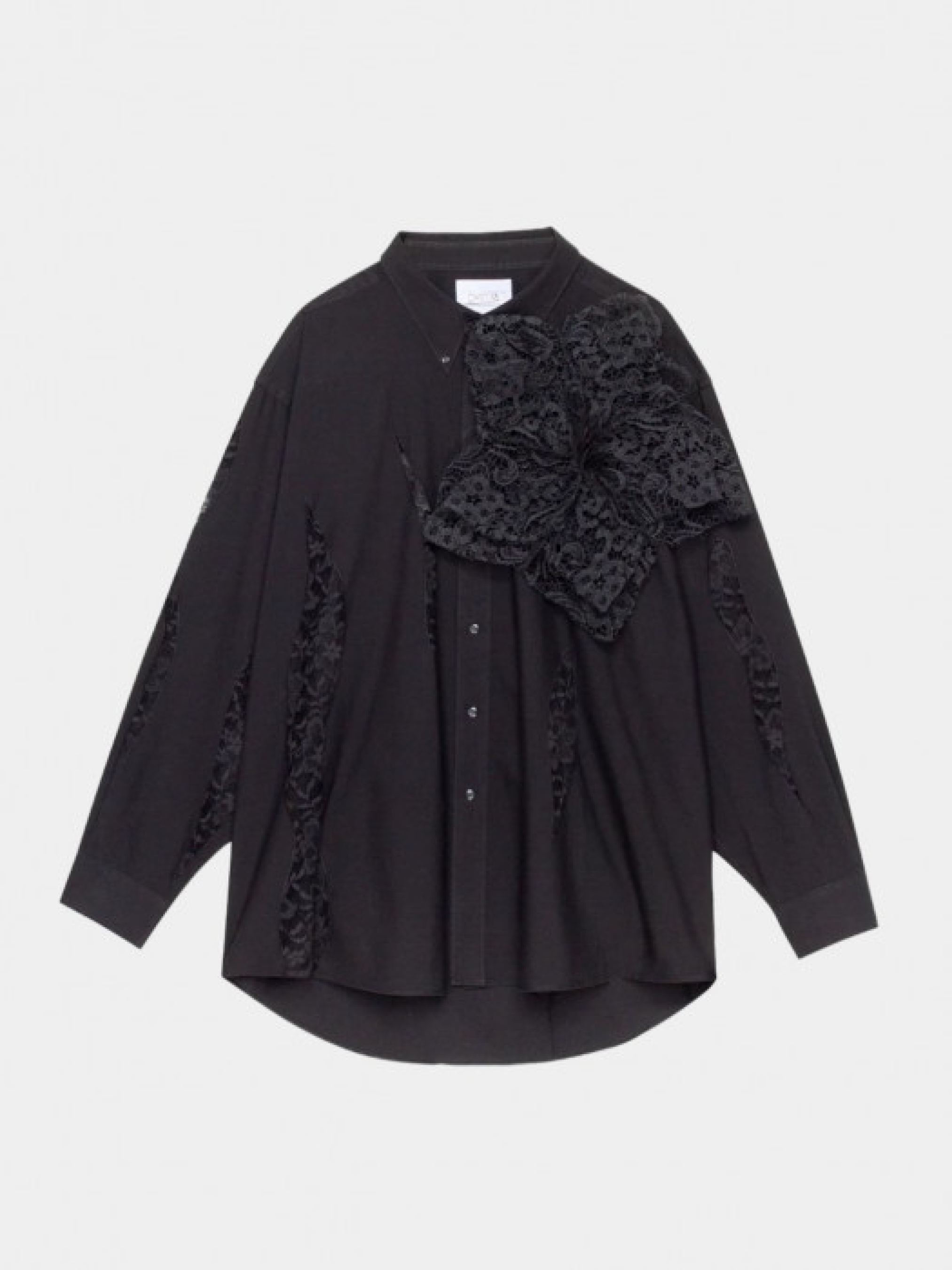 Рубашка Redesigned Shirt 133 Oversize с кружевными аппликациями и съемным цветком из кружева ручной работы. Диаметр цветка составляет 40 см, крепление находится на обороте в виде 4 шпилек. Уход: химчистка.Бренд работает исключительно с винтажными продуктами. Каждая рубашка уникальна и декорирована вручную. Размер и цвет камней, структура ткани могут несколько отличаться от показанных на фотографии. "Мы верим, что красота в ее разнообразии", – OMELIA.