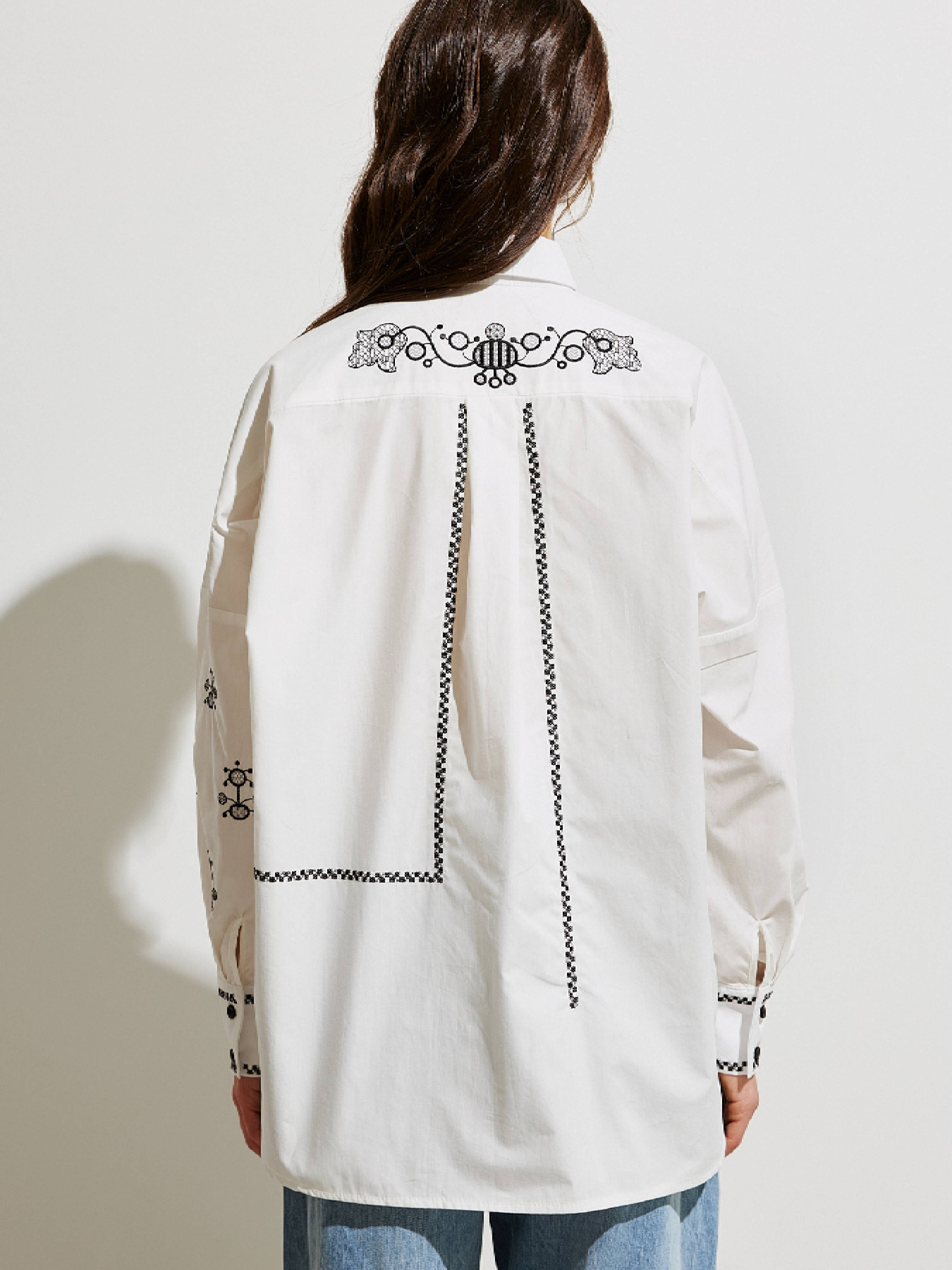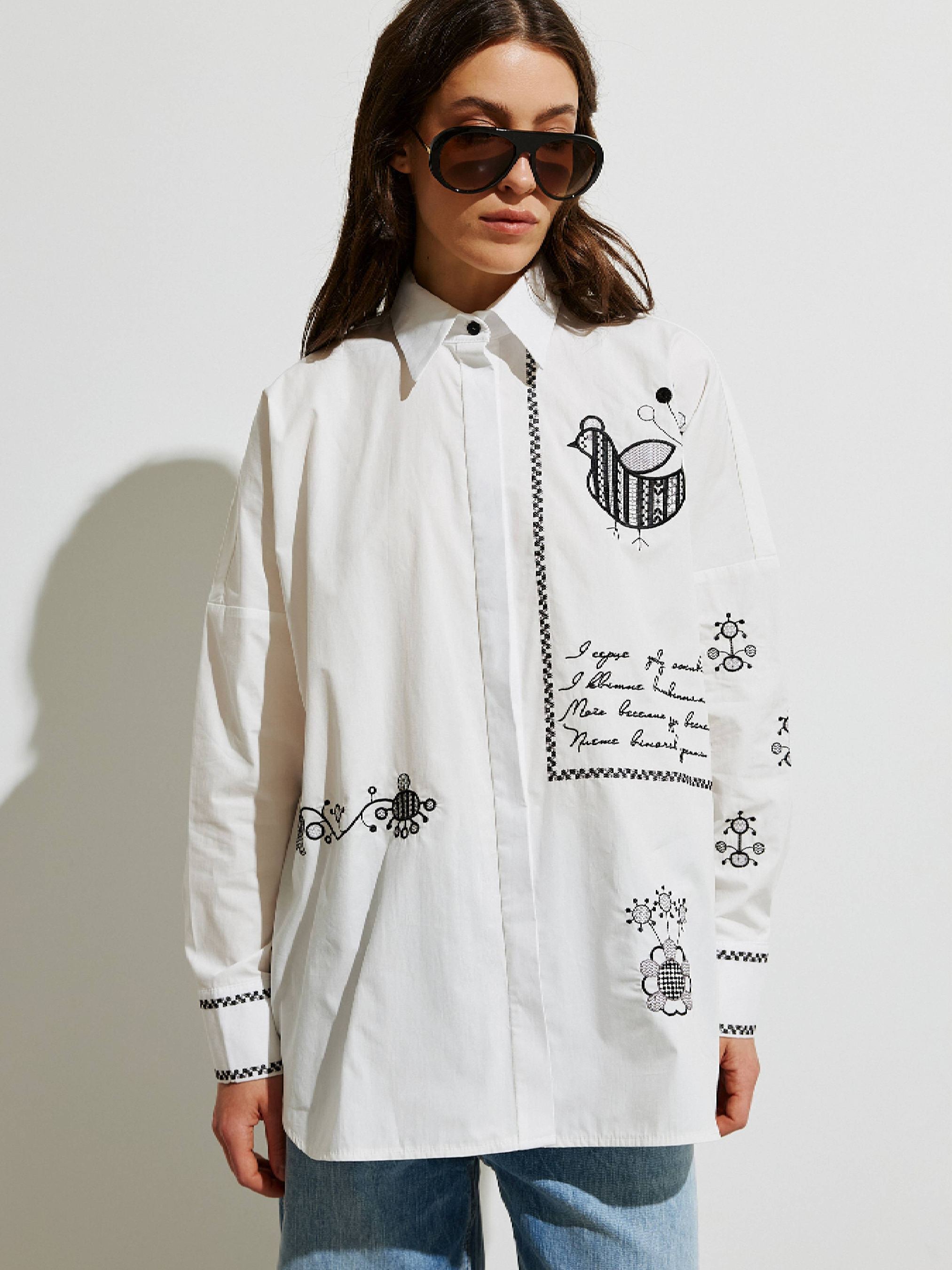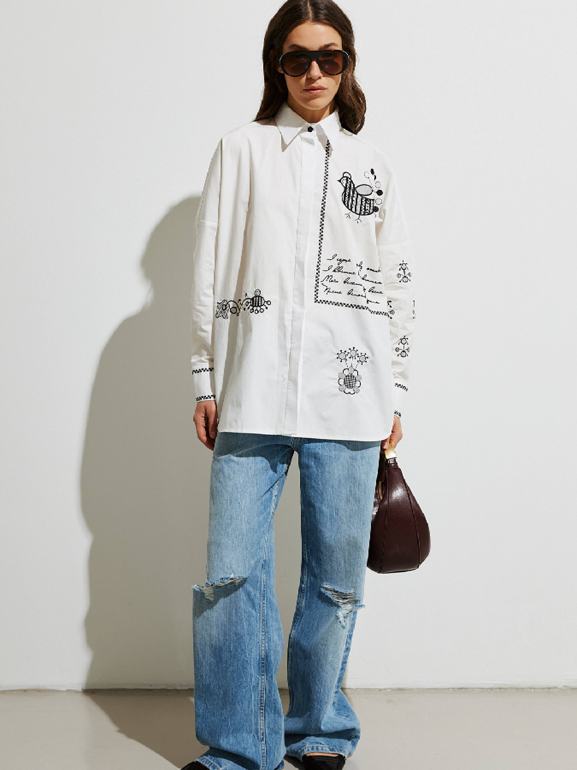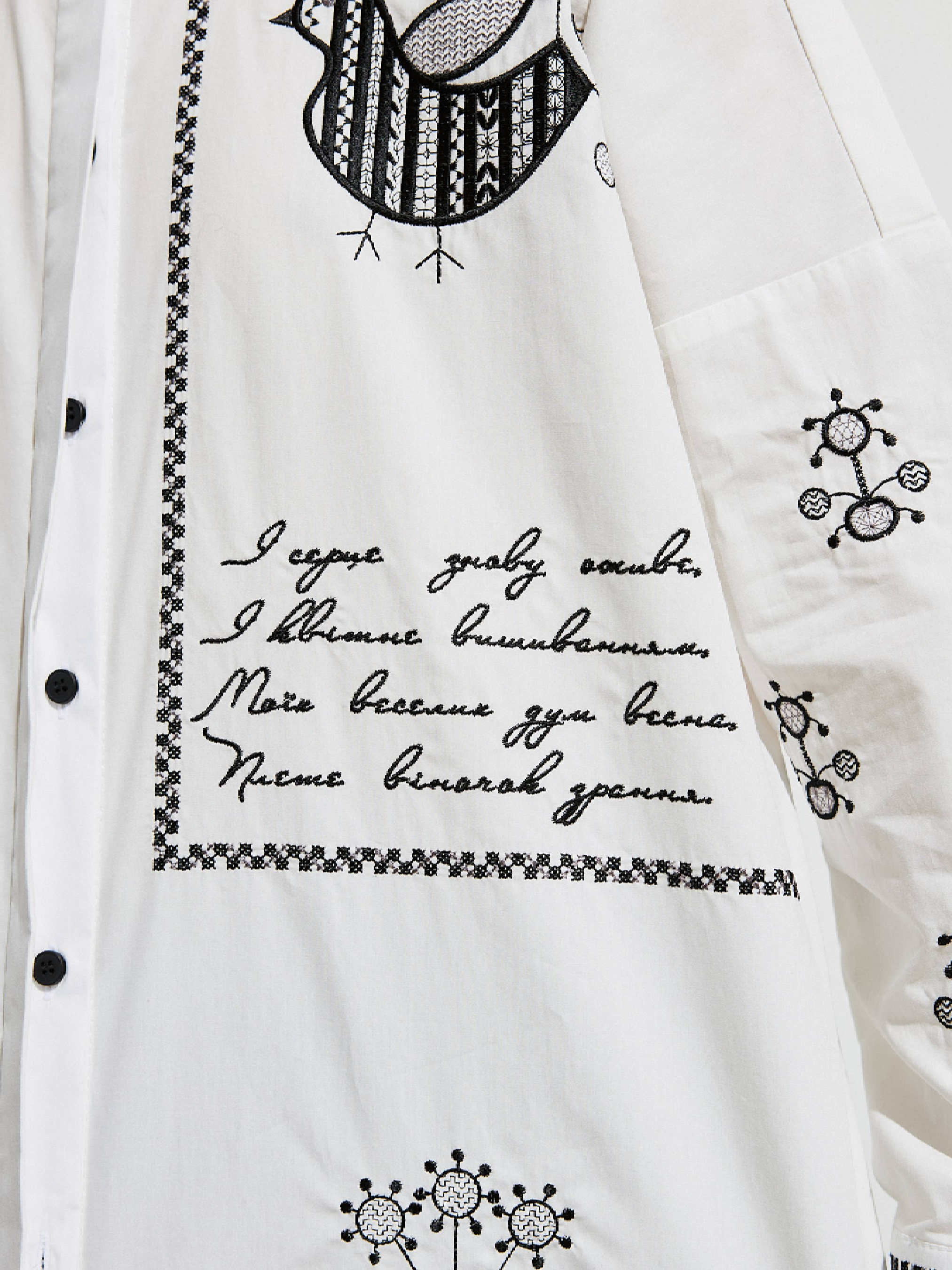 Невероятная вышивка разными методами и цветами украшает всю рубашку, придает характер и служит акцентным аксессуаром. Авторское стихотворение: И сердце снова оживет, И цветет вышиванием, Моих веселых дум весна, Плетет венчик с утра. Словно манифест заявляет о принципах и намерениях, но нежно, как родительский совет, питает надежду на светлое будущее. Рубашка Украинская Пава имеет силуэт Oversize, классический воротничок, супатную планку. На спинке изделия кокетка и складка. Пуговицы в контраст с тканью, но одного оттенка с цветом вышивки. Плотная хлопчатобумажная ткань хорошо держит форму.
