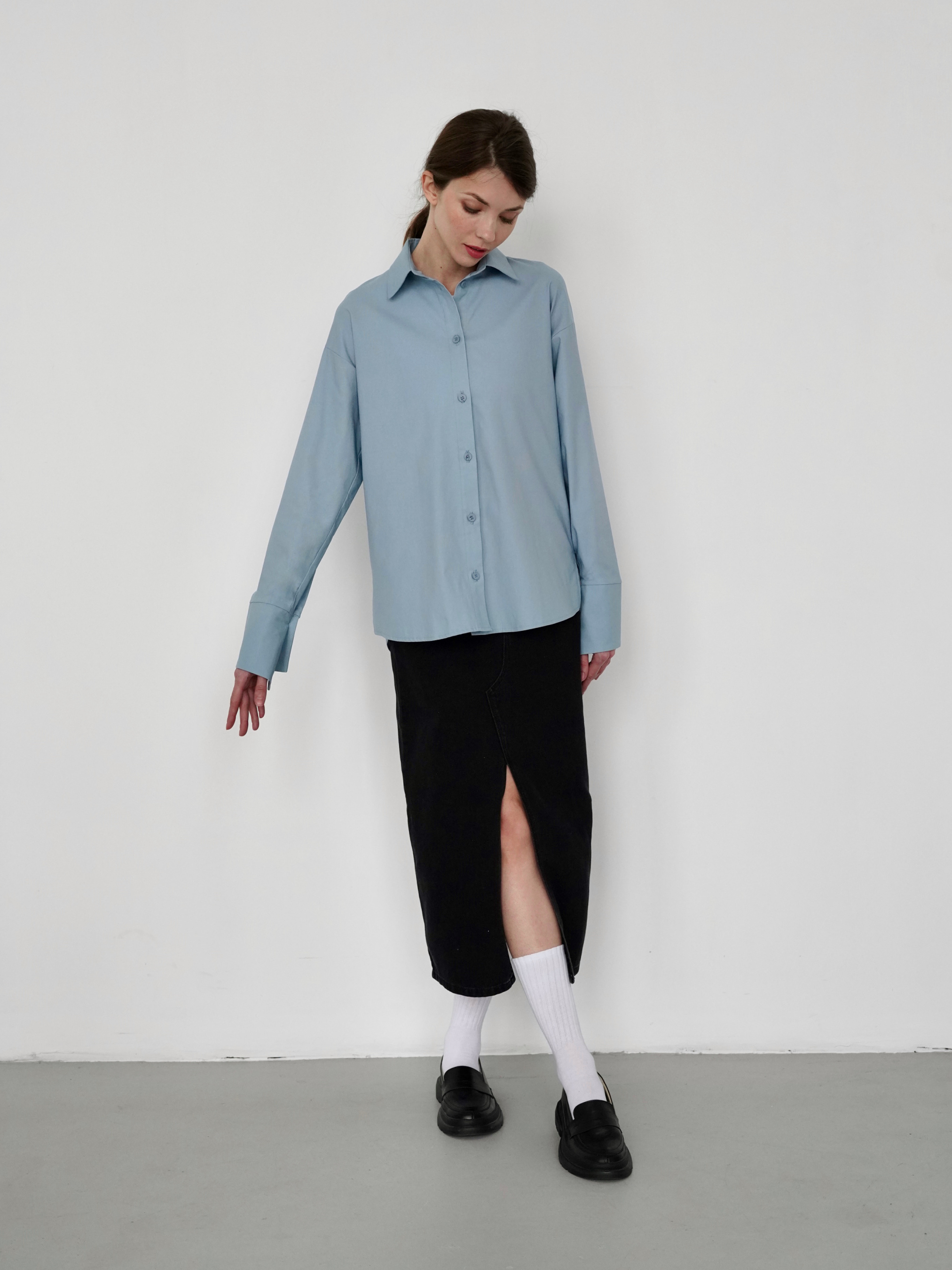 Классическая рубашка из хлопка в трех базовых цветах: синем, розовом и белом. Выполнена из натуральных материалов с добавлением спандекса (96% хлопок, 4% спандекс). Благодаря натуральному составу дает коже дышать, не парит. Удачно дополнит любой деловой образ. Если вы выбираете образ на работу или в университет, советуем также обратить внимание на классические брюки "Хельсинки" и пиджак "Уэльс". Если же вы выбираете для себя кэжуал-образ, то рекомендуем обратить внимание на наши прямые джинсы "Таллин" и миди-юбку "Найроби". Цвет изделия на фотографии может отличаться от реального цвета товара, что связано с особенностями цветопередачи на мониторе, настройками фотоаппаратуры или другими факторами. XS-S Длина по внутреннему шву : 40 см Длина по спине : 72 см Длина рукава : 55 см Полуобхват груди: 55 см Ширина по низу: 54 см S-M Длина по внутреннему шву: 40 см Длина по спине: 72 см Длина рукава: 55 см Полуобхват груди: 56 см Ширина по низу: 56 см M-L Длина по внутреннему шву: 40 см Длина по спине: 73 см Длина рукава : 55 см Полуобхват груди: 58 см Ширина по низу: 58 см