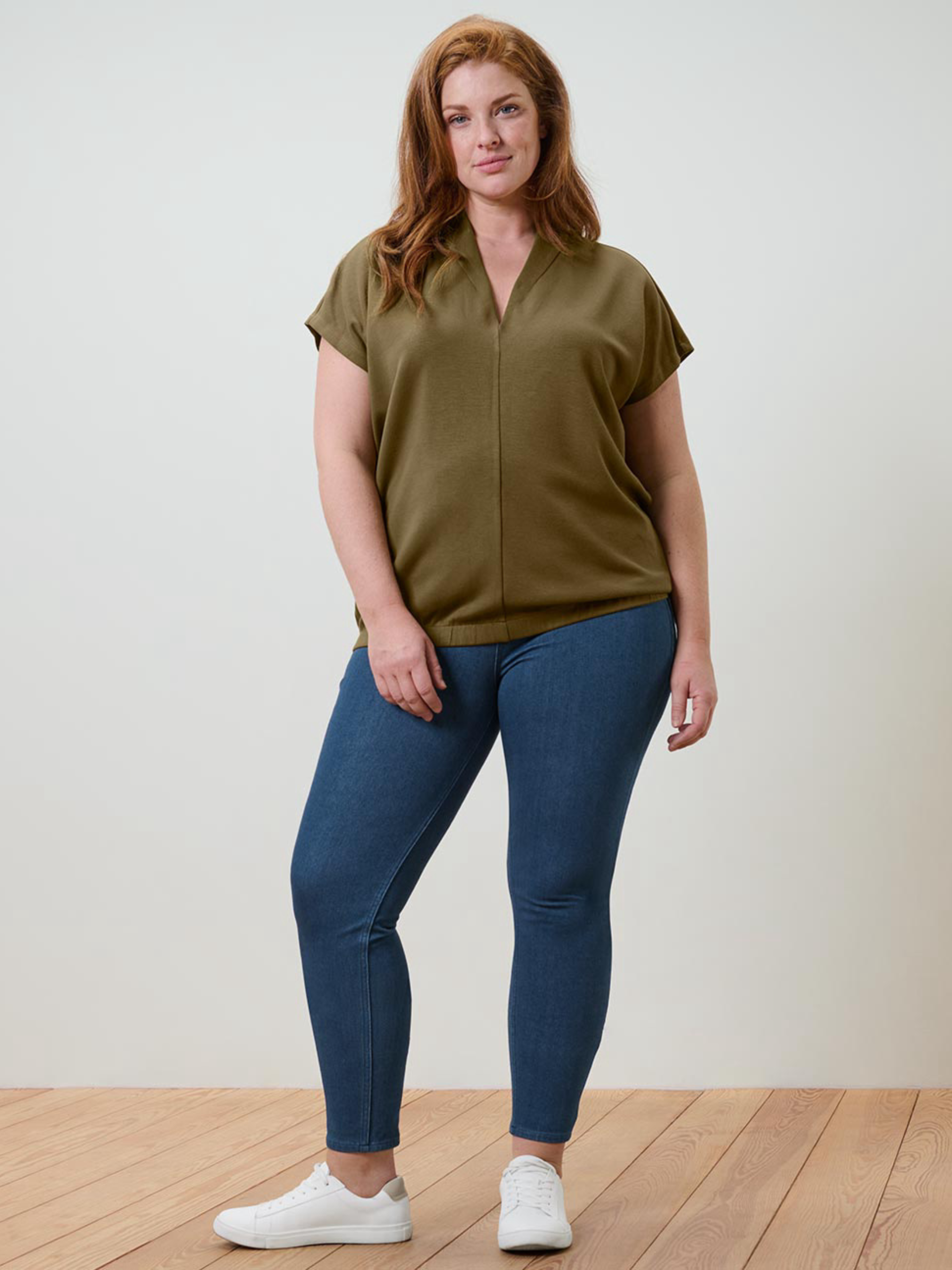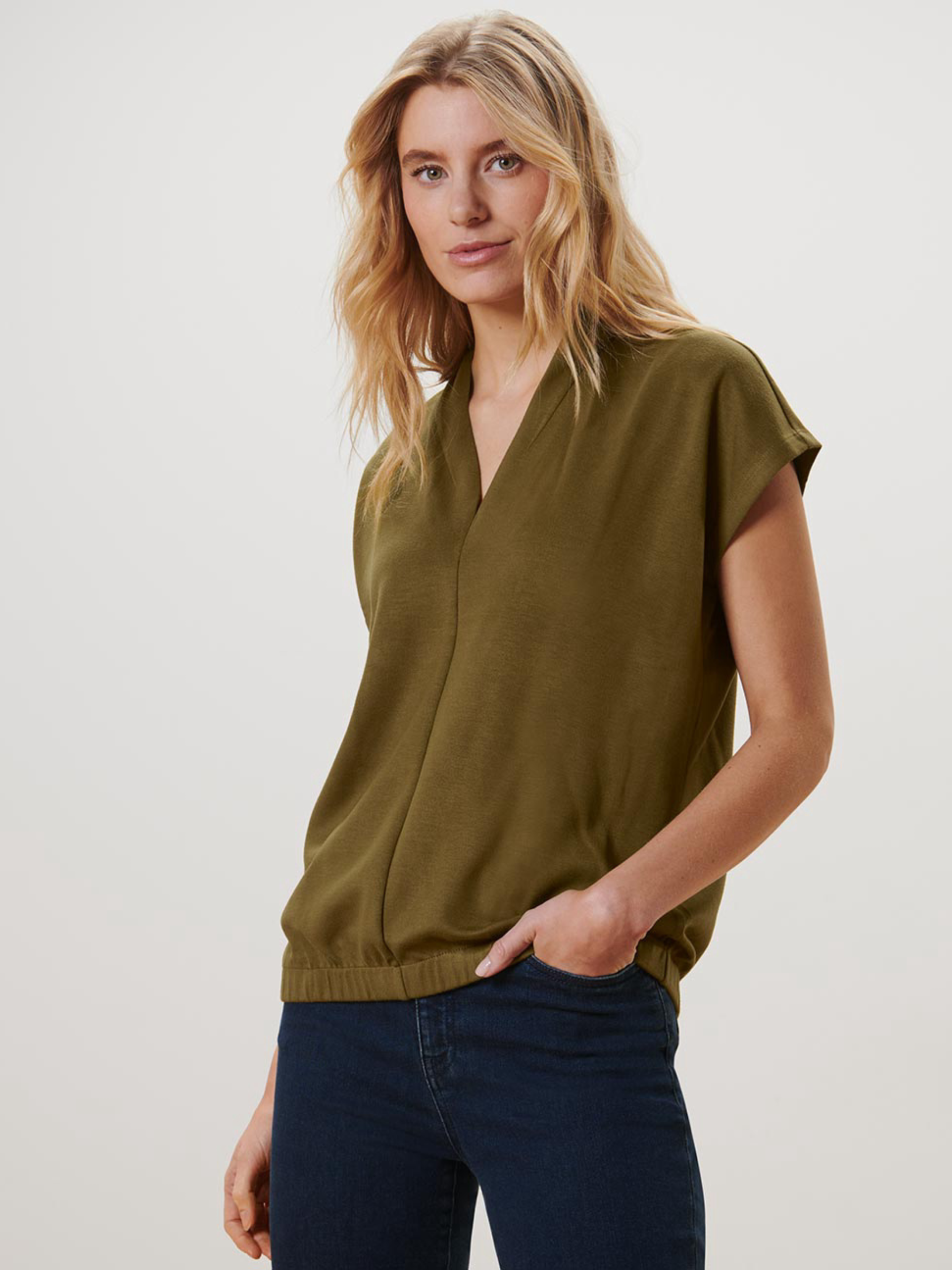 Стильная и комфортная блуза из мягкой ткани с вискозой. Имеет широкий эластичный раздел, обеспечивающий удобство и хорошую посадку. V-образный вырез с небольшим воротником-стойкой придает изделию элегантность, а перекрывающие короткие рукава придают легкости. Разделительный шов спереди создает утонченный акцент. Особенности: мягкое качество с вискозой широкое, эластичное деление V-образный вырез с небольшим воротником-стойкой перекрывающие короткие рукава разделительный шов спереди проверено на наличие вредных веществ внешними аккредитованными институтами Цвет: оливково-зеленый Материал: 59% полиэстер, 41% вискоза Размер 44–46 (L/XL или 50–52 украинский): ПОГ: 63 см Длина: 70 см Дополнительная информация: Одежда бренда Tchibo обычно не имеет бумажных этикеток. В большинстве случаев внутренние бирки с составом ткани, названием бренда или размером могут отсутствовать или частично срезать.