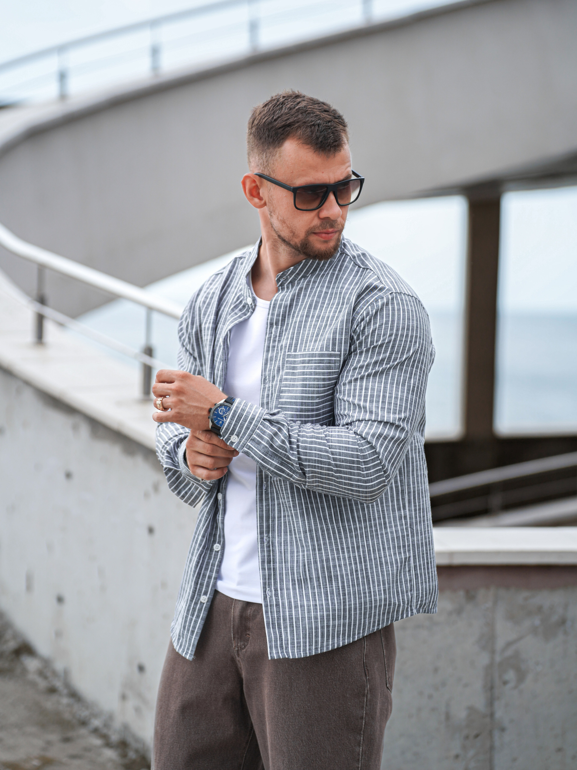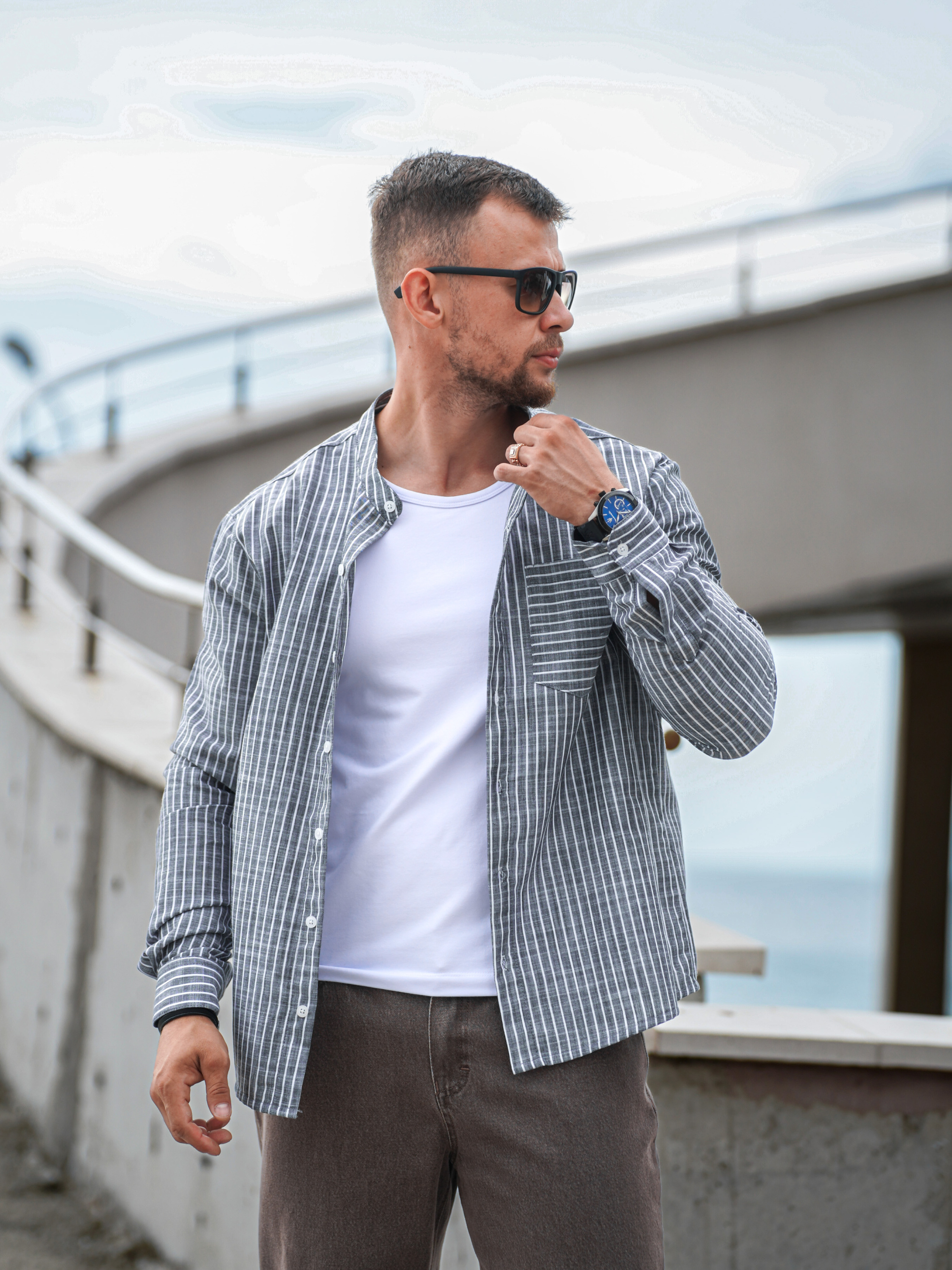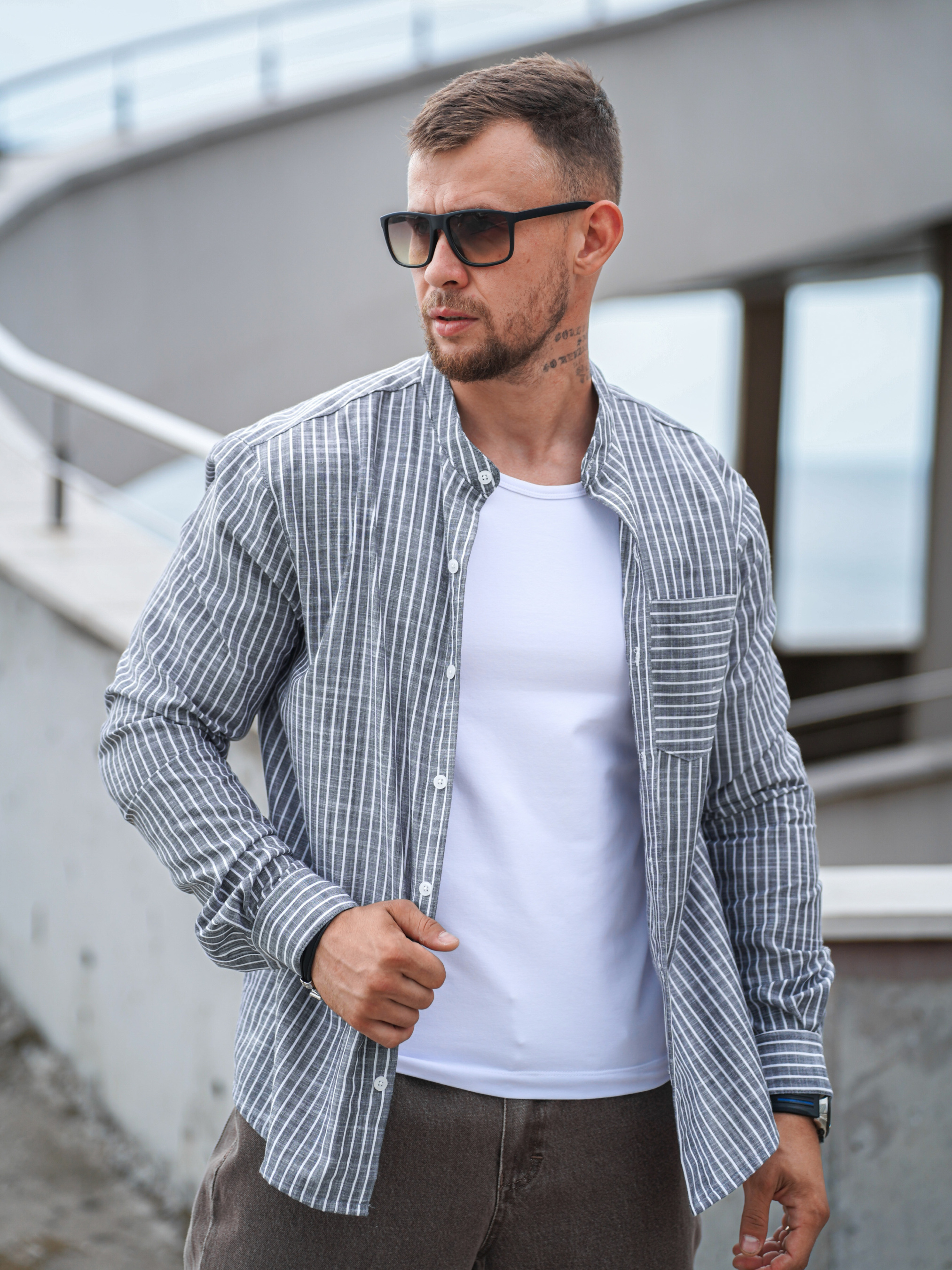 Стильная рубашка в полоску мужская от Teamv — сочетание повседневного комфорта и сдержанной классики. Модель выполнена из натурального хлопка, что делает её особенно приятной для весенне-летнего сезона. Такой материал хорошо дышит и сохраняет форму, оставаясь комфортным в течение всего дня. Сорочка мужская в полоску подойдёт как для офиса, так и для неформальных встреч. Идеально смотрится как с джинсами, так и с брюками — будь то рубашка мужская на отпуск или рубашка мужская классическая для делового образа. - Выполнена из текстильной хлопка Бингалин. - Состав: 50% Хлопок, 50% Полиэстр. - Параметры Фотомодели: Вес - 85кг, Рост - 180см (На фото размер L)