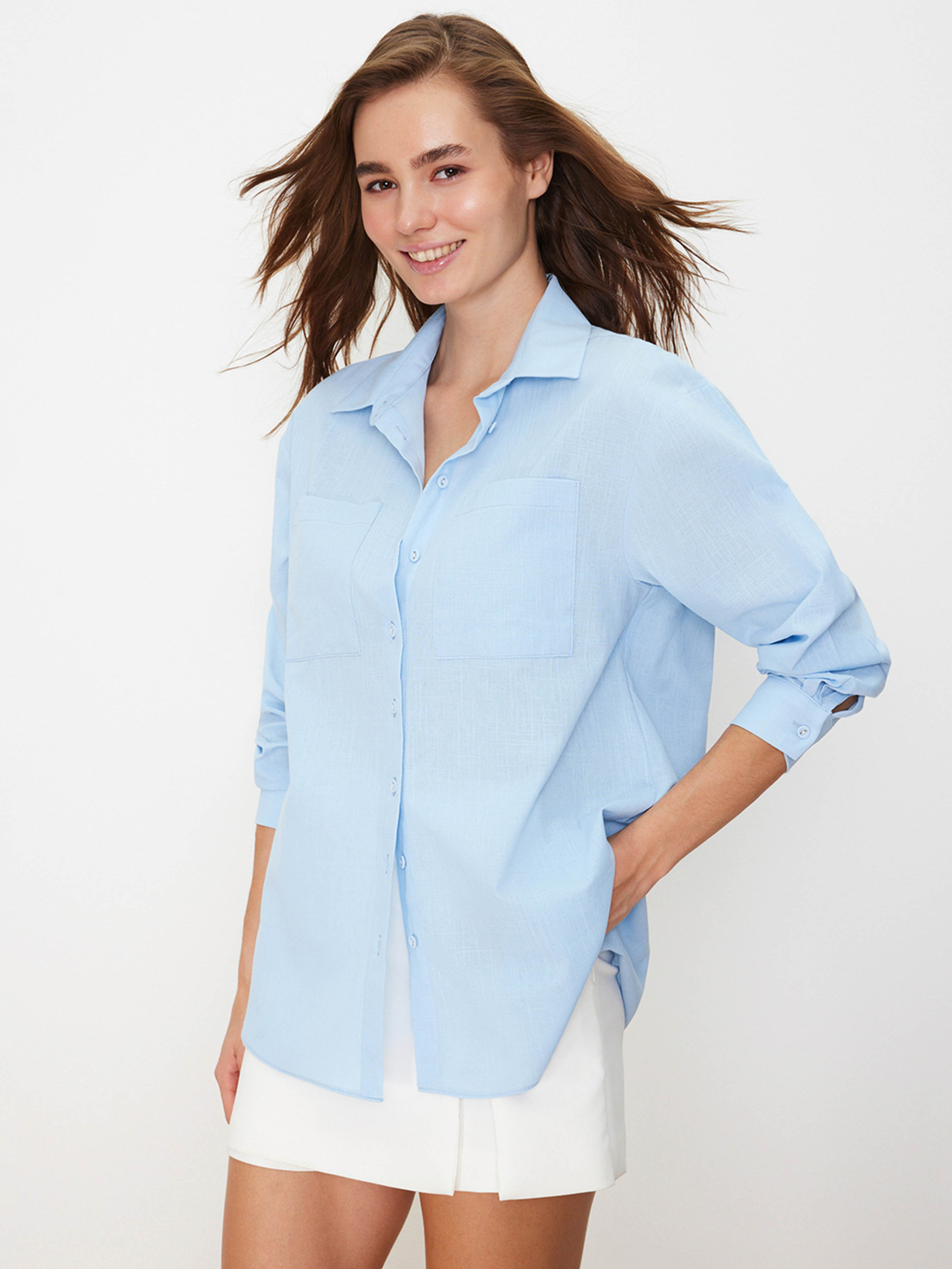Рубашка повседневная Trendyol модель TWOSS24GO00072/Acik Mavi