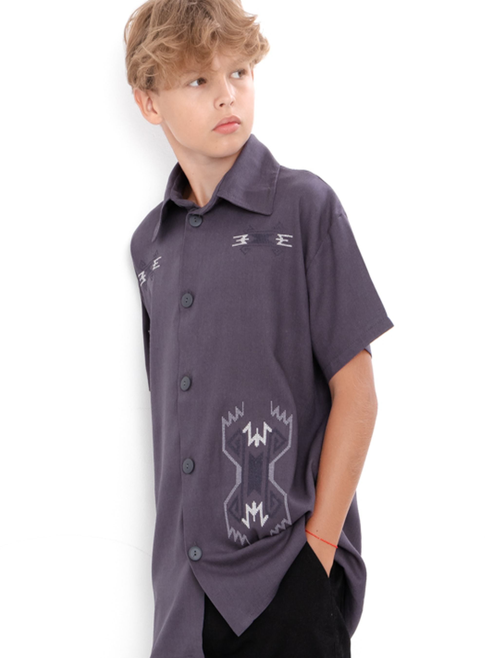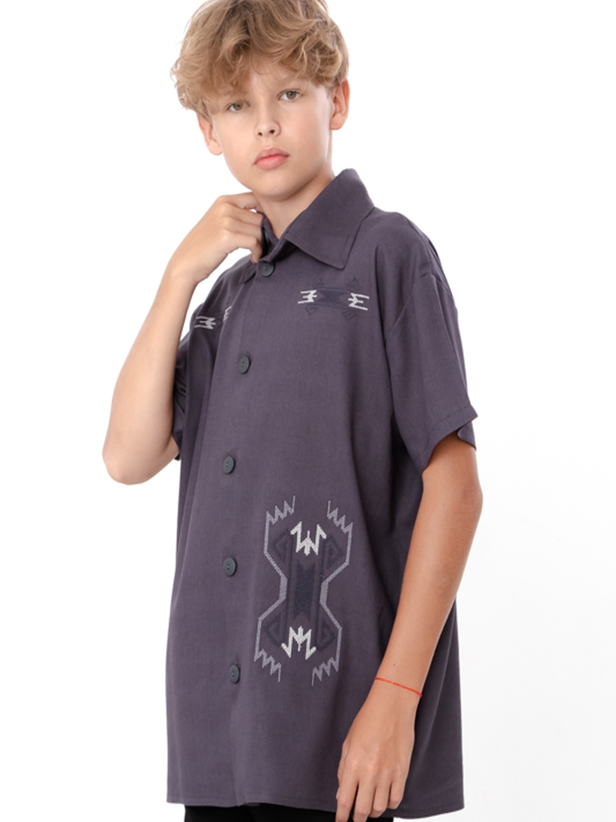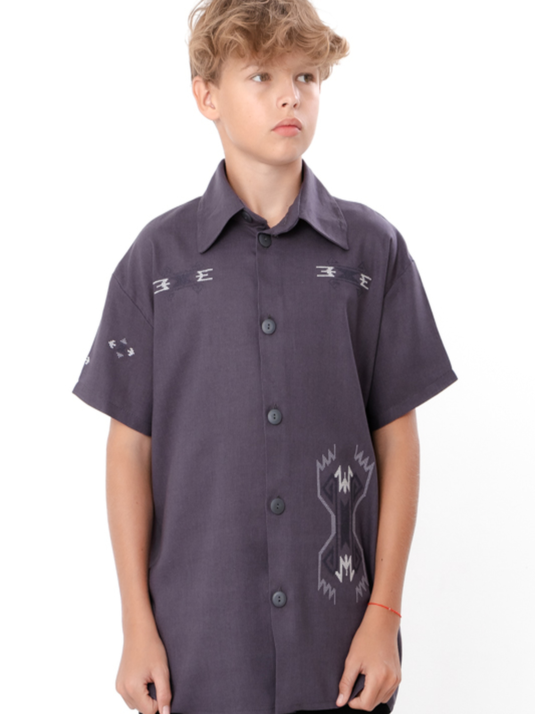 Полотно: льон-віскоза Склад полотна: 70% льон, 30% віскоза Зріст: 140-170 Підліткова сорочка для хлопчика з коротким рукавом — це комфортний і стильний варіант для літа. Полотно льон-віскоза (70% льон, 30% віскоза) забезпечує легкість, повітропроникність і приємні відчуття навіть у спеку. Вільний крій та короткий рукав гарантують свободу рухів і невимушений вигляд. Сорочка чудово поєднується з джинсами, шортами або брюками, підходить як для школи, так і для прогулянок, подорожей чи святкових подій. Її можна носити застібнутою для охайного образу або розстібнутою поверх футболки для більш розслабленого стилю. Практична, універсальна та сучасна — ця модель легко впишеться у будь-який літній гардероб.