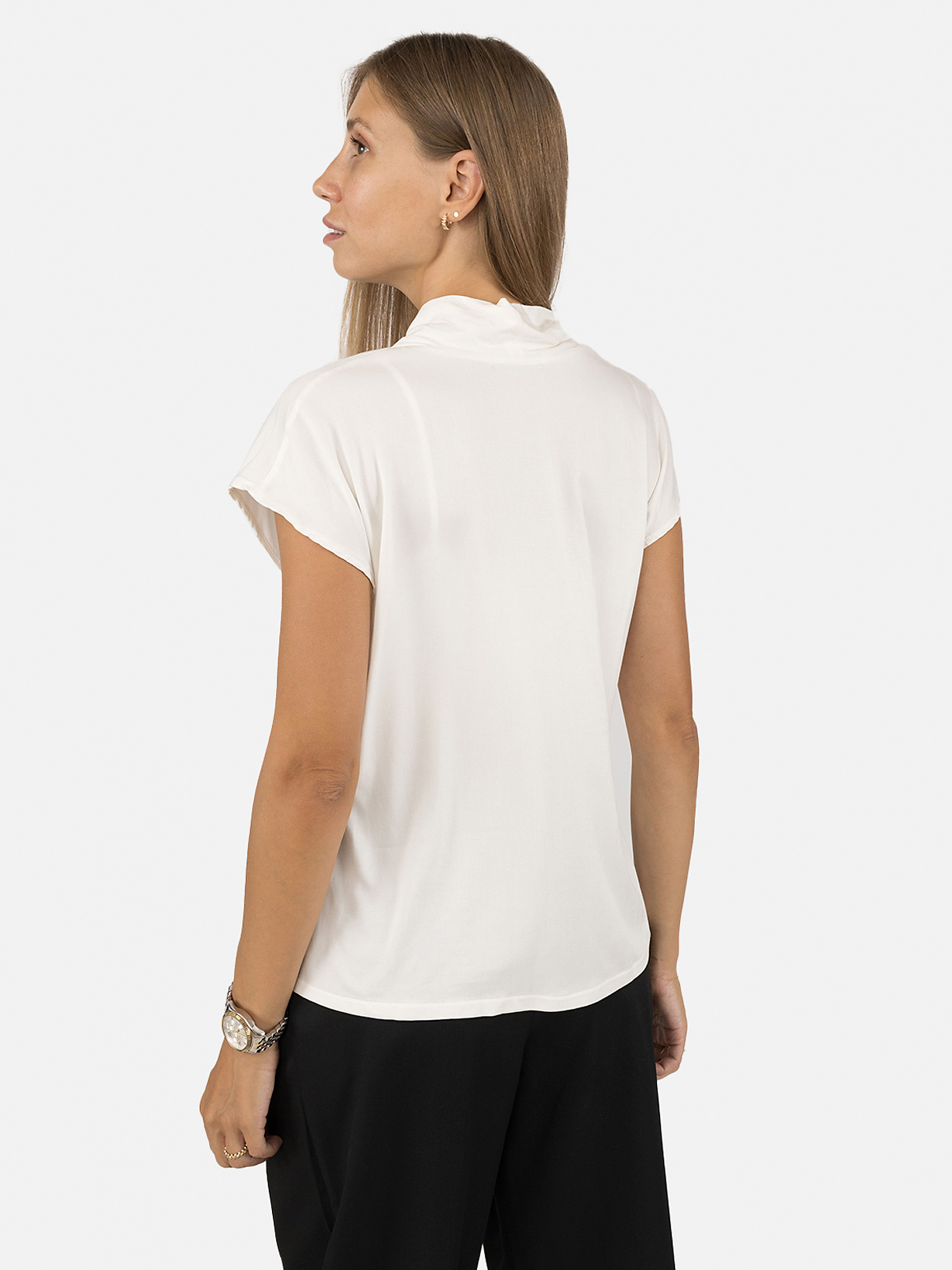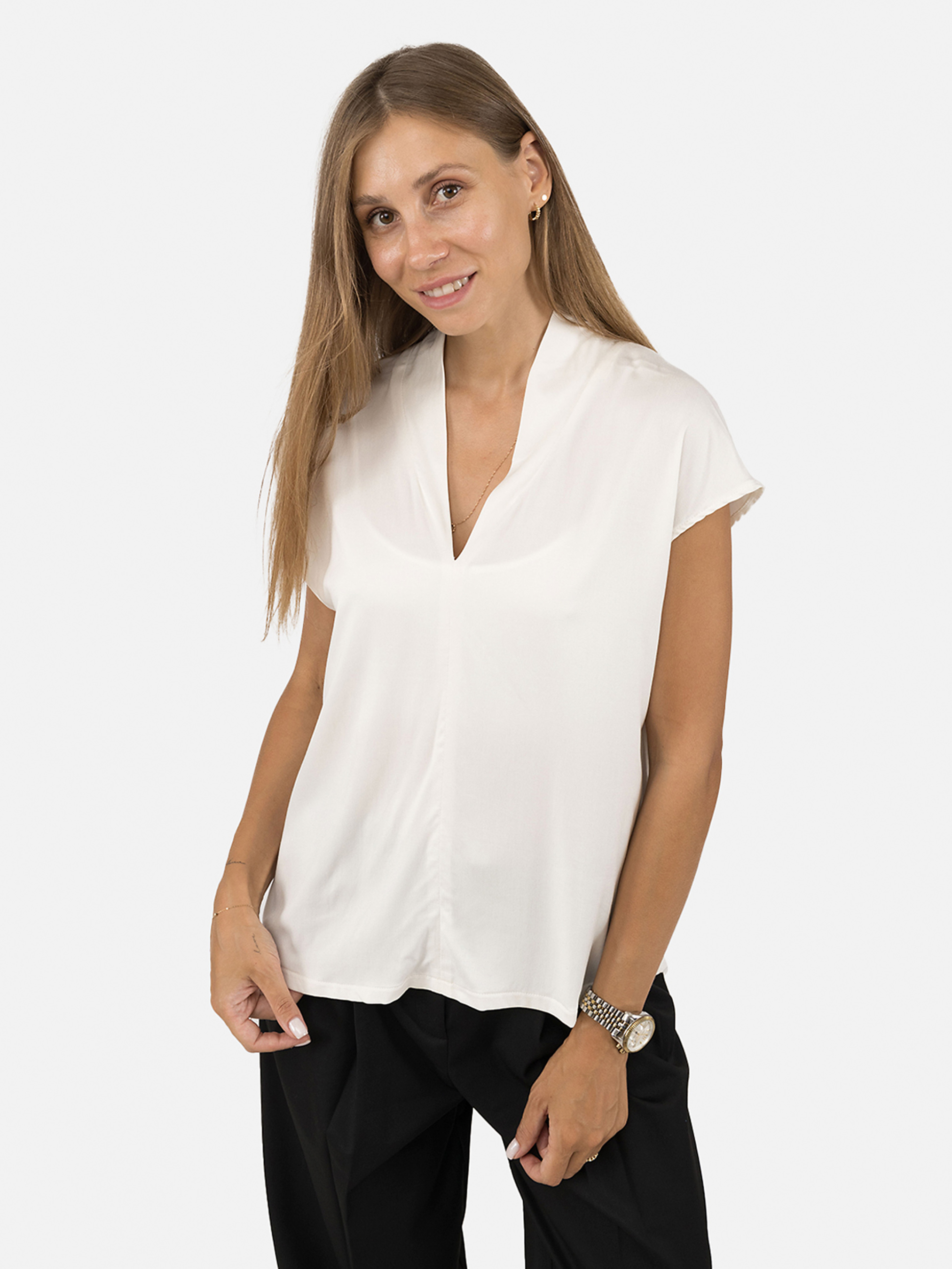Женская блуза с коротким рукавом – стильный и практичный элемент гардероба, который сочетает в себе элегантность и комфорт. Изготовленная из качественных материалов, эта блуза обеспечивает приятные ощущения на коже и комфорт на протяжении всего дня. Легкая и дышащая ткань идеально подходит для теплых дней, а универсальный дизайн позволяет легко комбинировать блузу с разными стилями одежды. Блуза имеет классический крой, подчеркивающий женственность и утонченность. Она подходит как для офисных образов, так и для повседневной носки или выходов в свет. Особенность изделия: Цвет: молочный, однотонный. Крой: приталенный. Длина: средняя. Блузка имеет короткий рукав. Материал изготовления: штапель. Состав: 95% вискоза, 5% лайкра. Сезон: лето. Параметры модели: Рост: 170 сантиметров. Размер на модели: М/украинский размер – 46. Страна изготовитель: Украина.