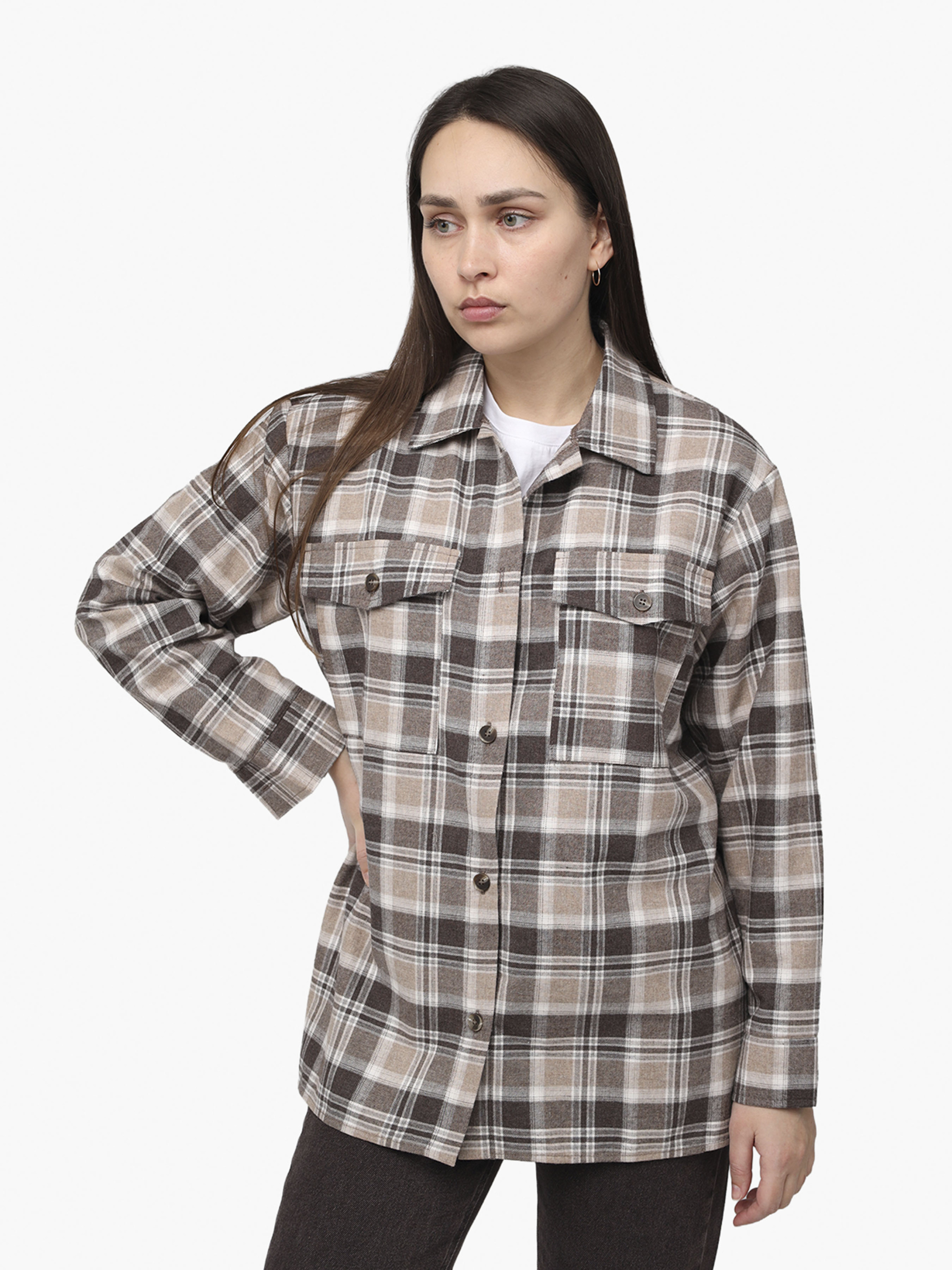 Рубашка с длинным рукавом женская цвет коричневый ЦБ-00286263 модель ЦБ-00286263
