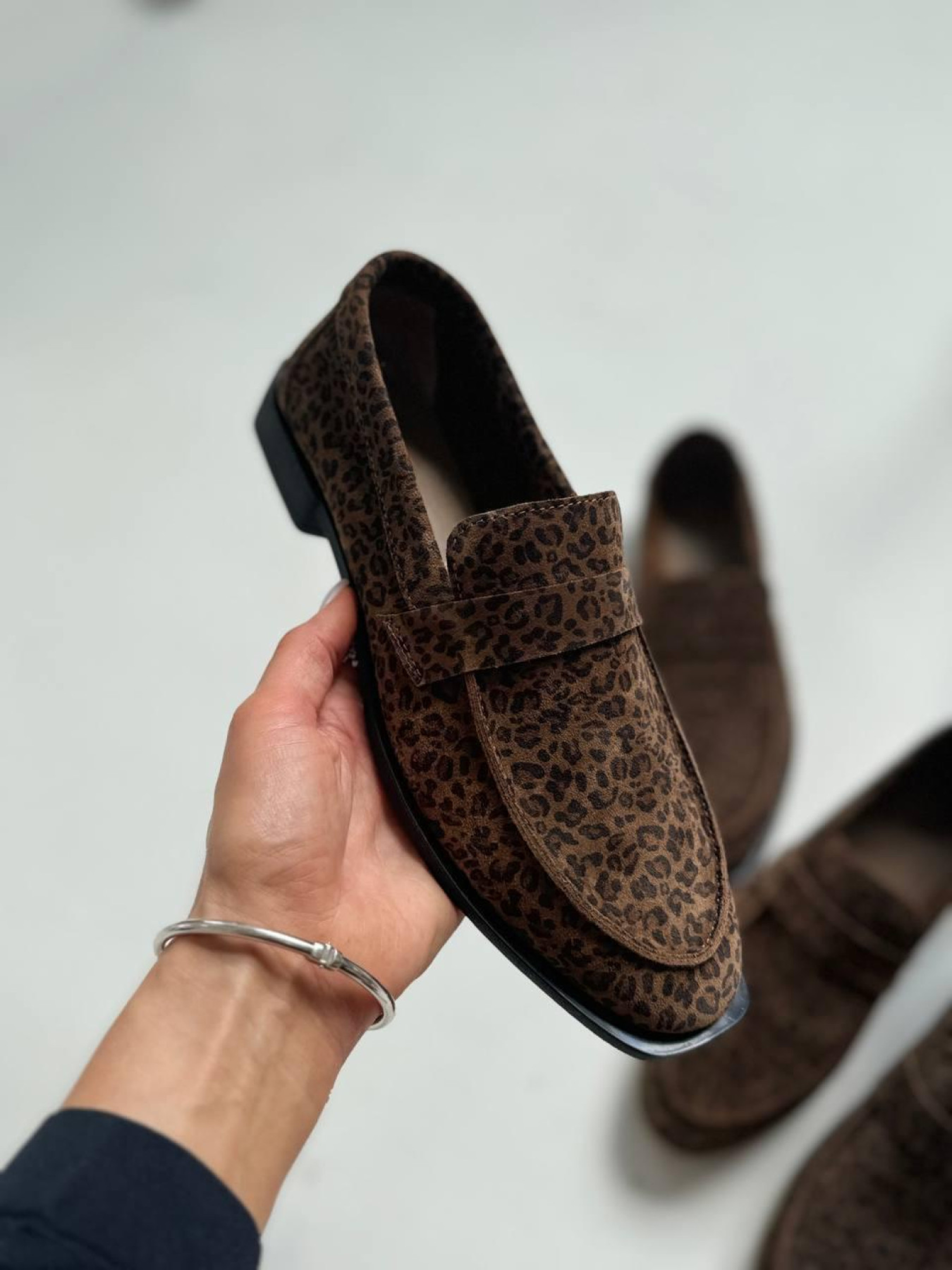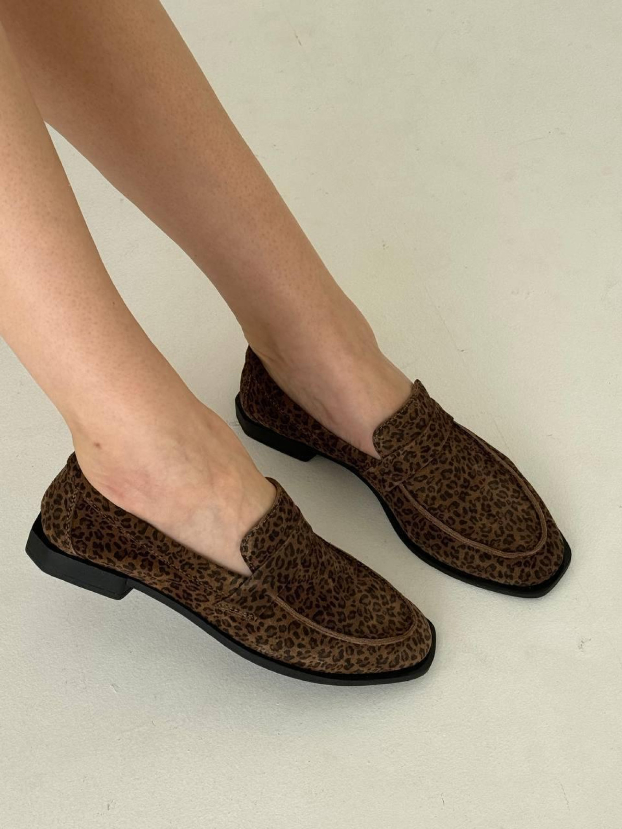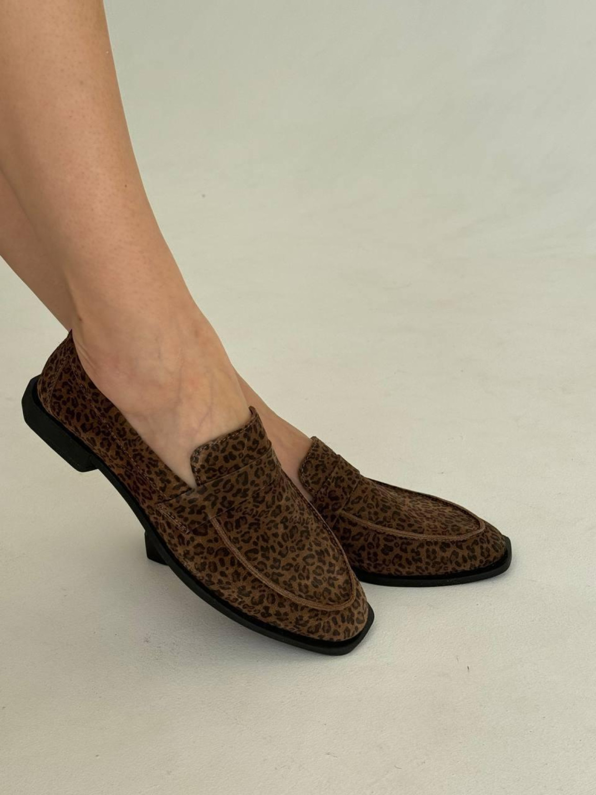 Лоферы из натуральной замши на кожаной стельке прямая перемычка Леопард (154/Хиллари4) модель P_183121-S36_183145
