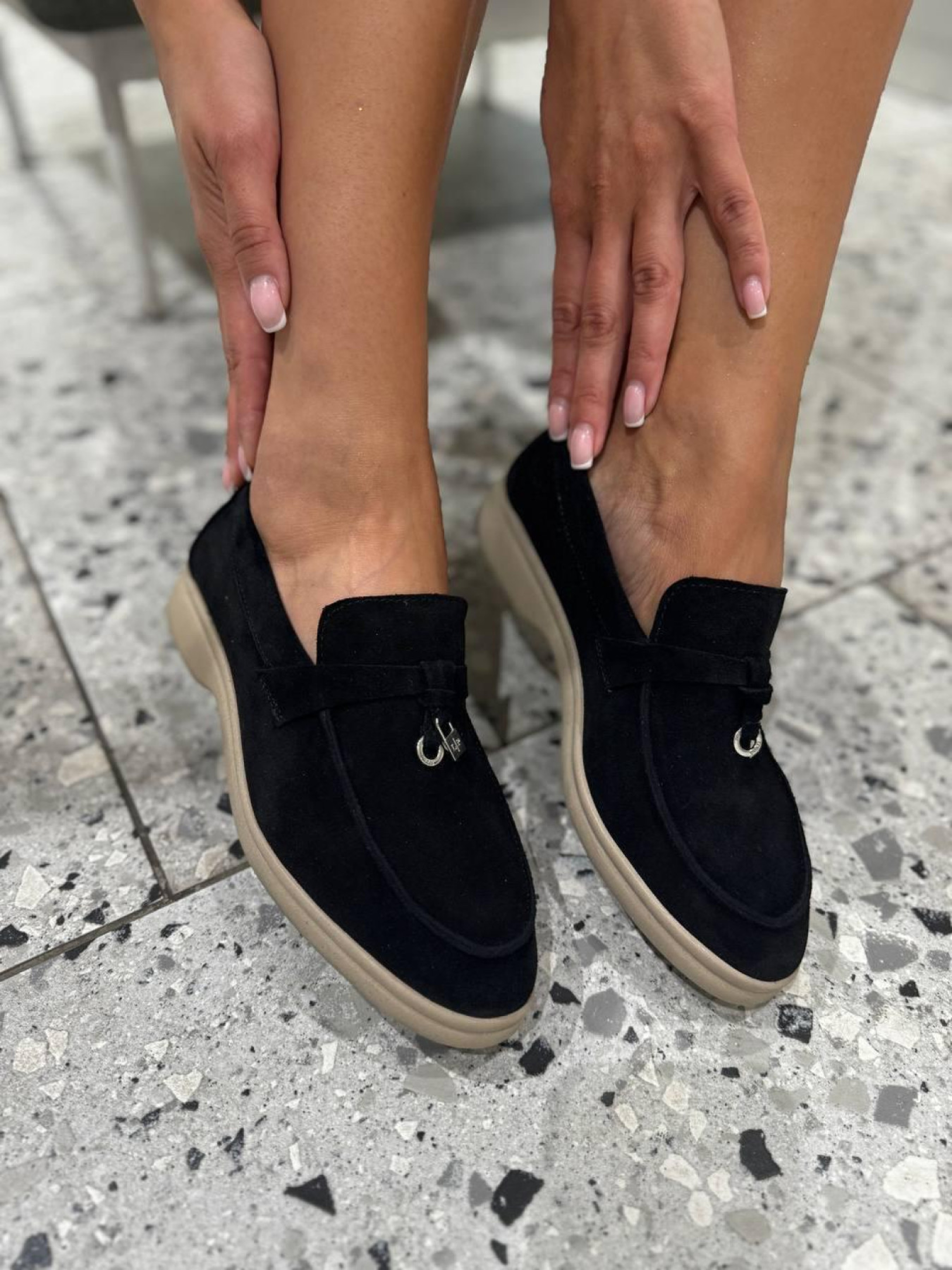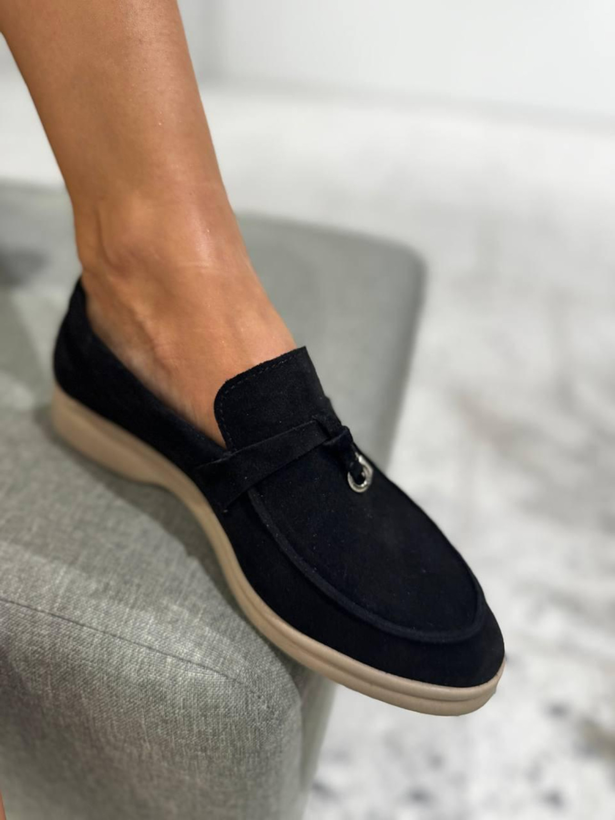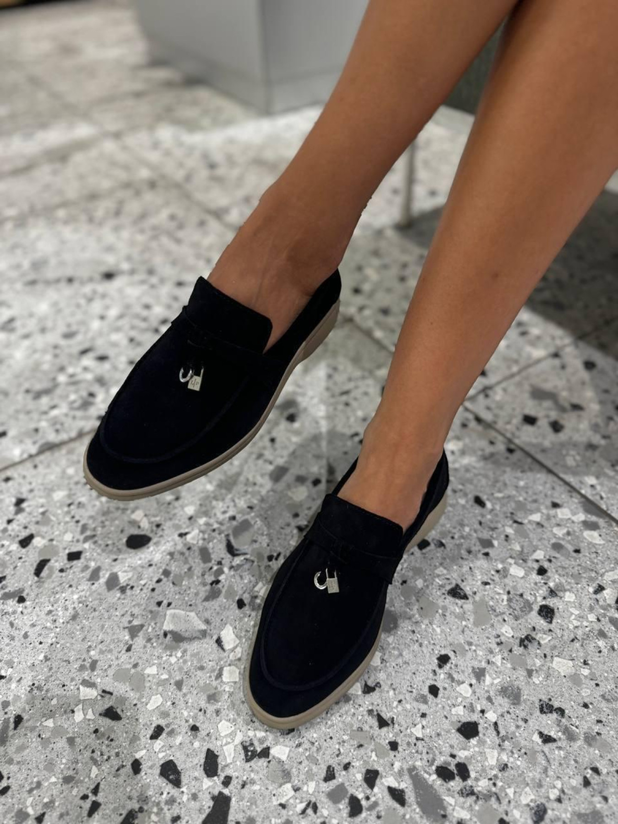 Замшевые лоферы узкая перемычка/замок и кольцо Черный (154/хилари2/фурнитура) модель P_190198-S37_190204