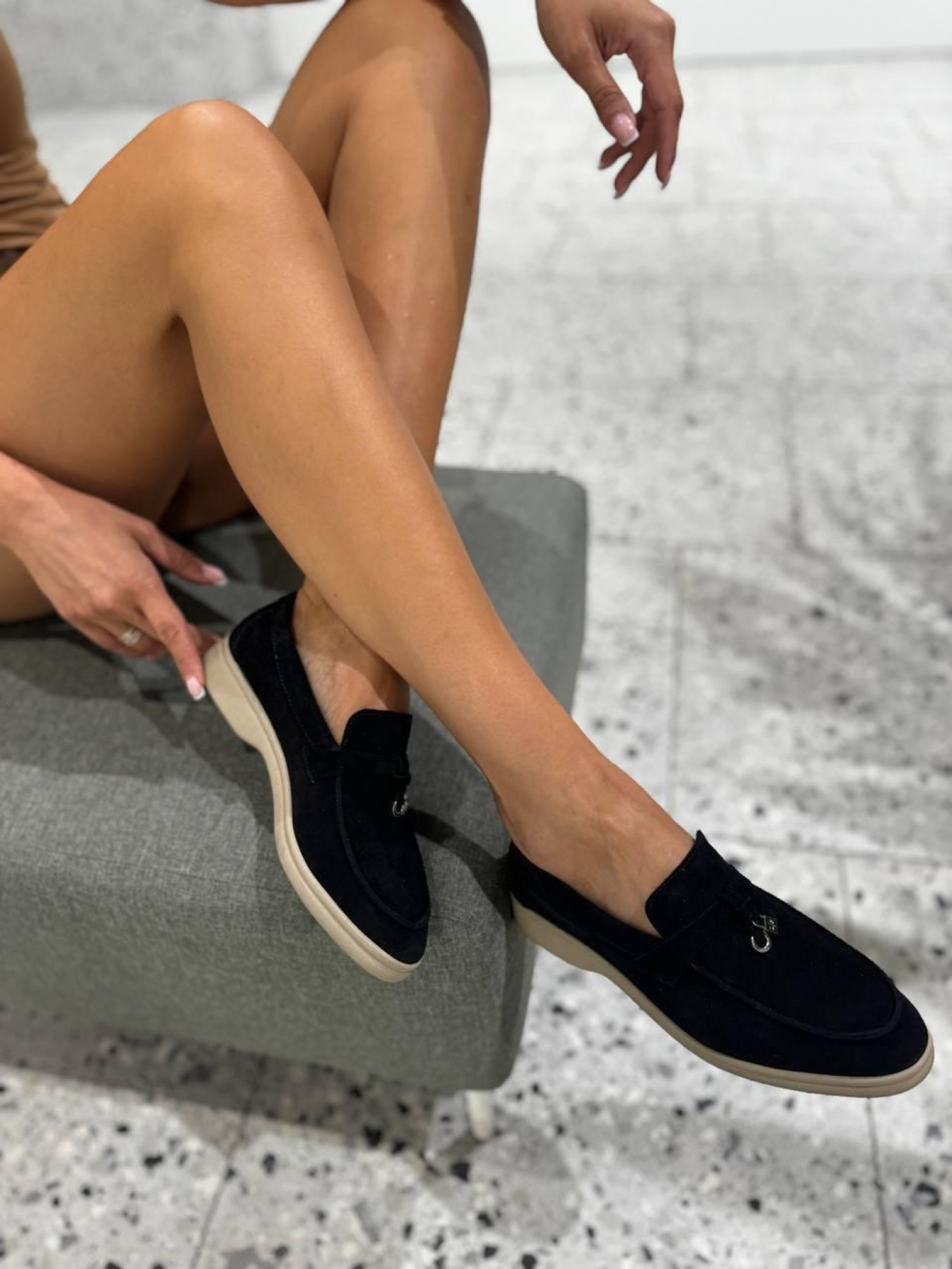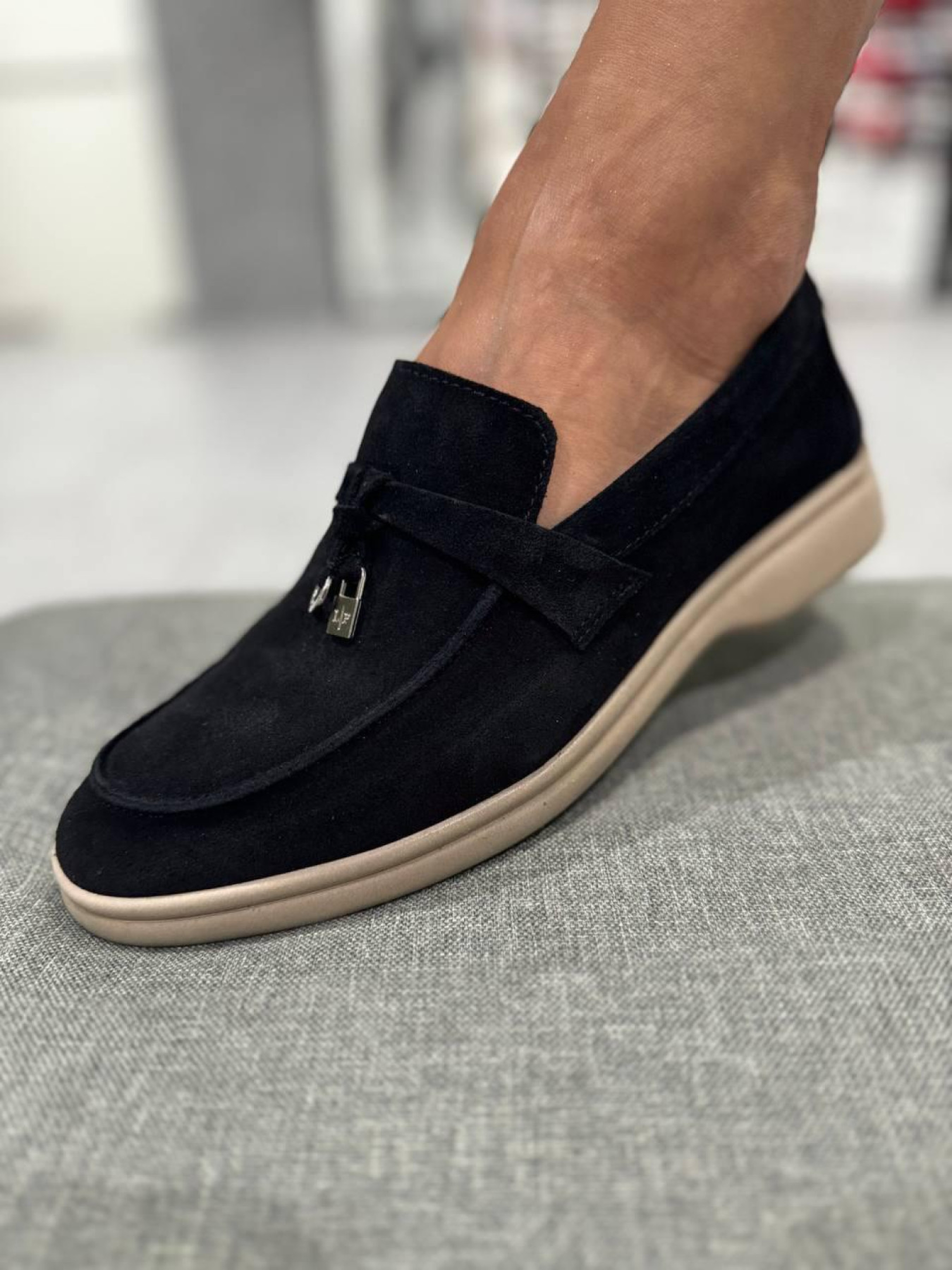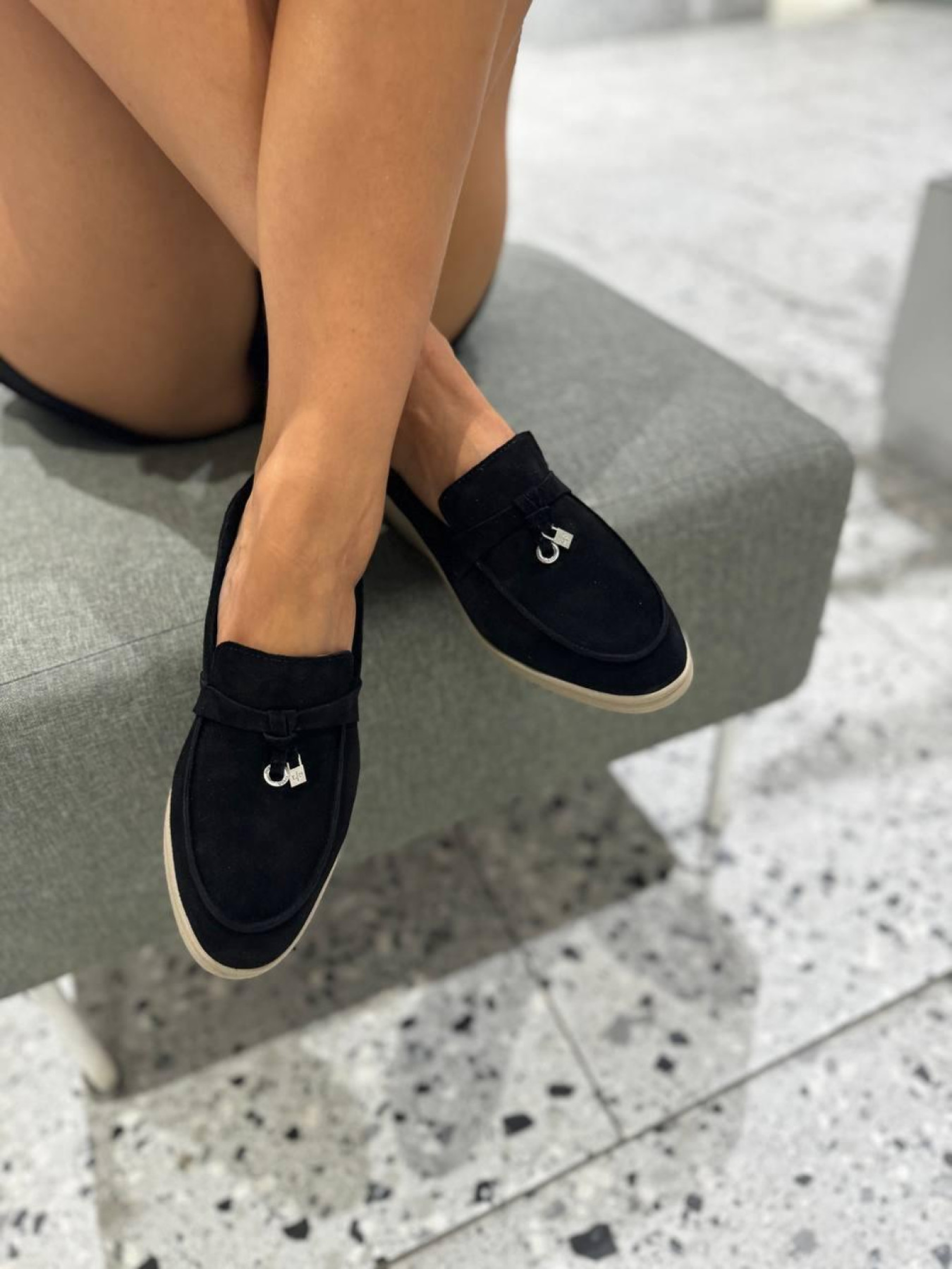 Замшевые лоферы узкая перемычка/замок и кольцо Черный (154/хилари2/фурнитура) модель P_190198-S37_190204
