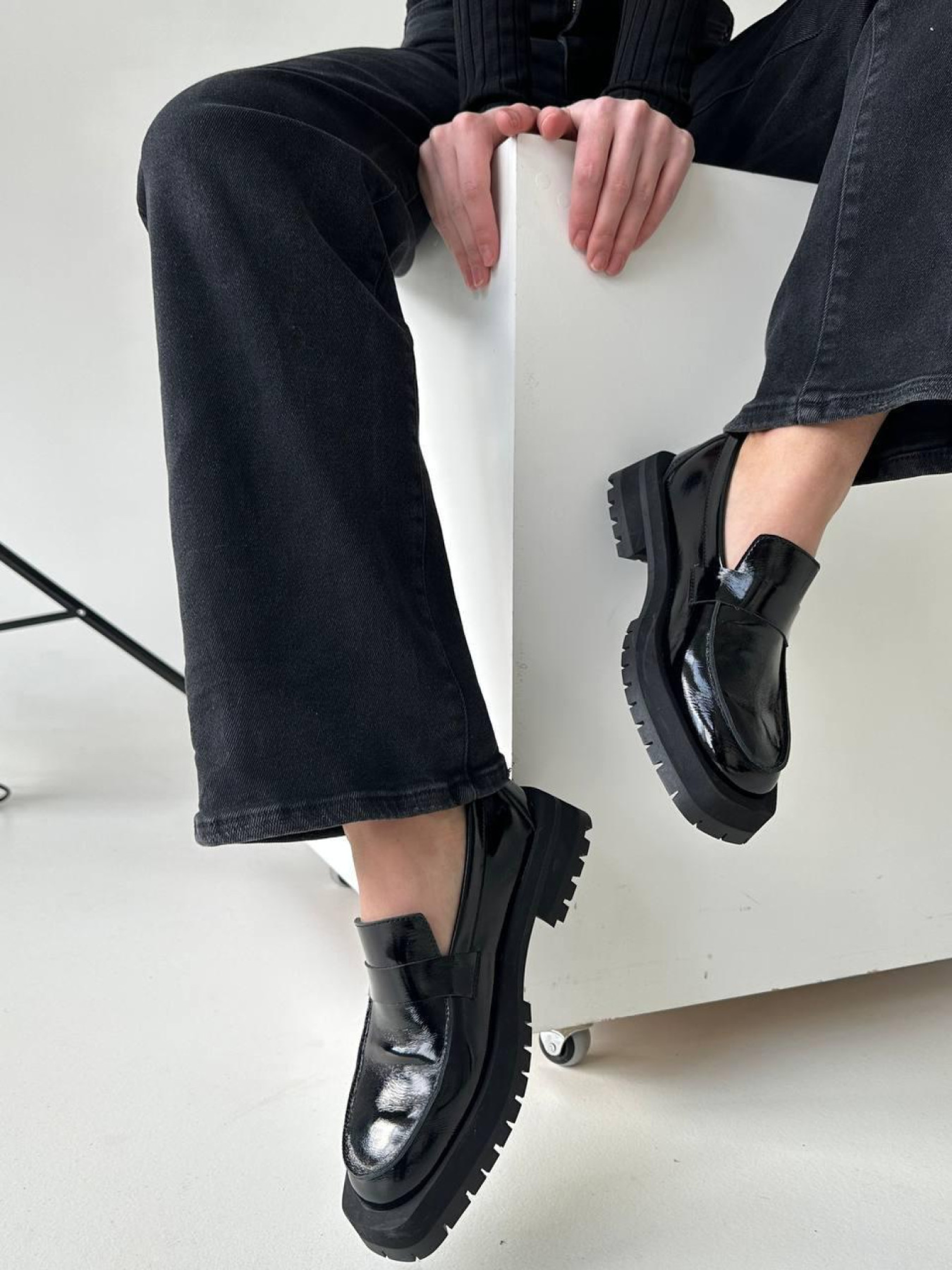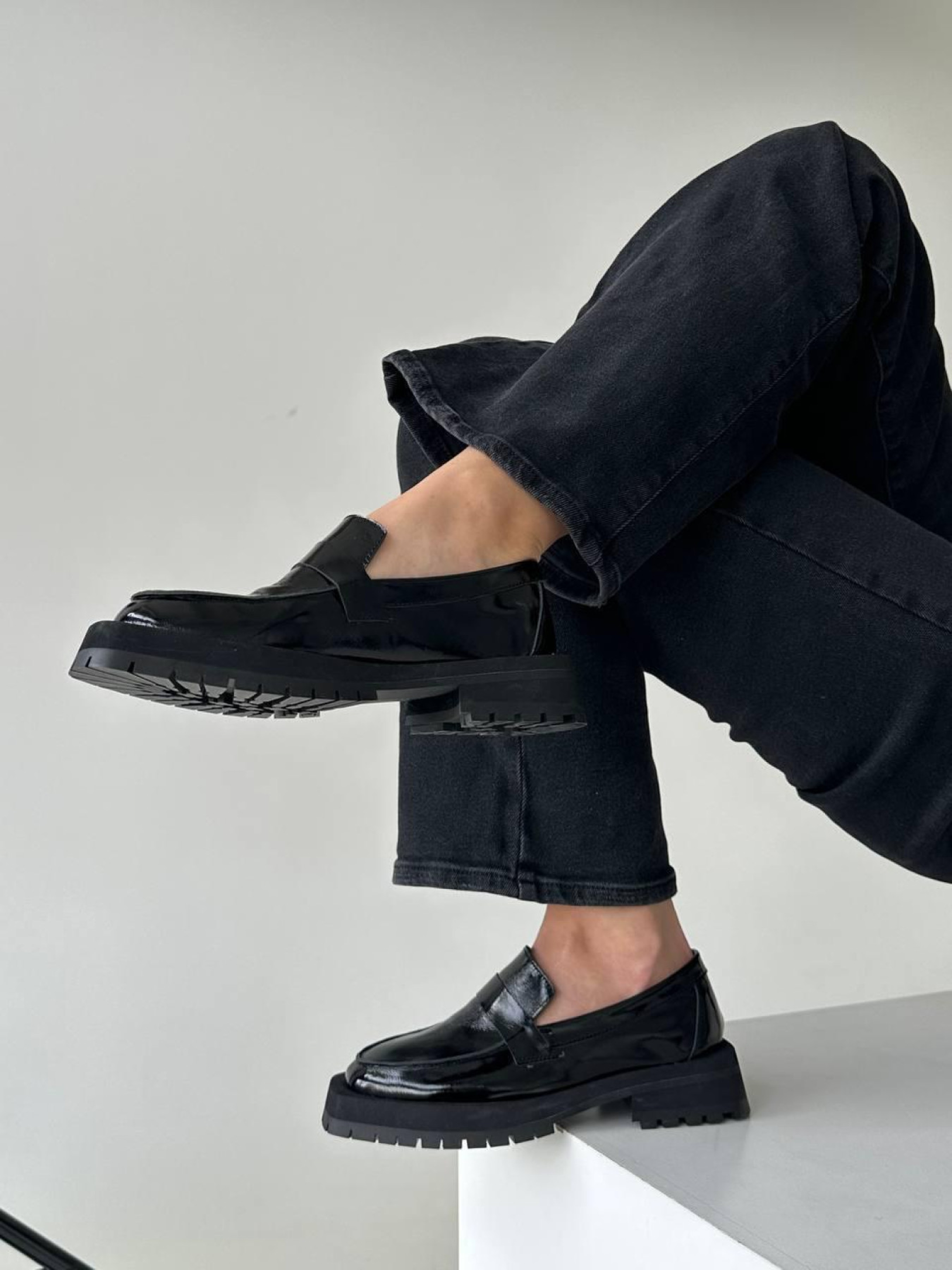 Лоферы из натуральной лаковой кожи с прямой перемычкой Черные (154/11620) модель P_31385-S37_31385