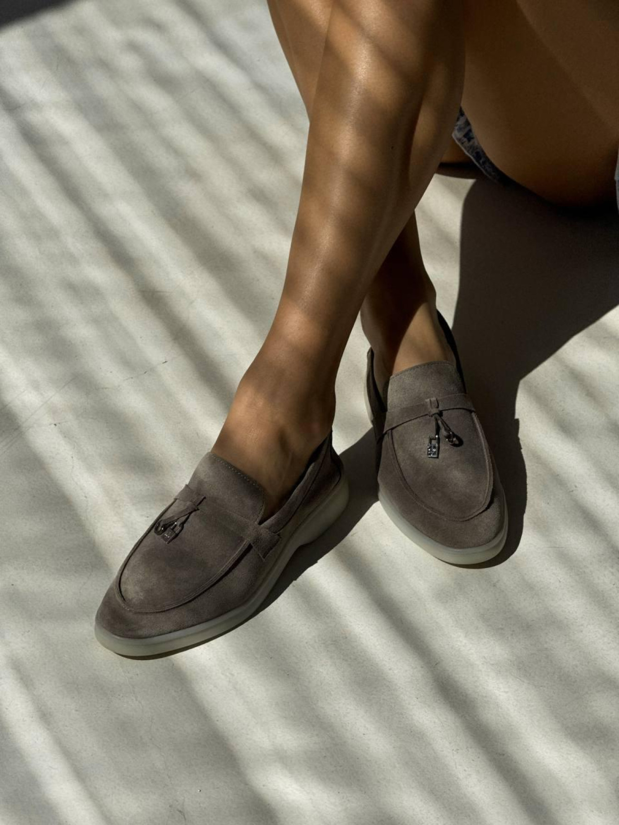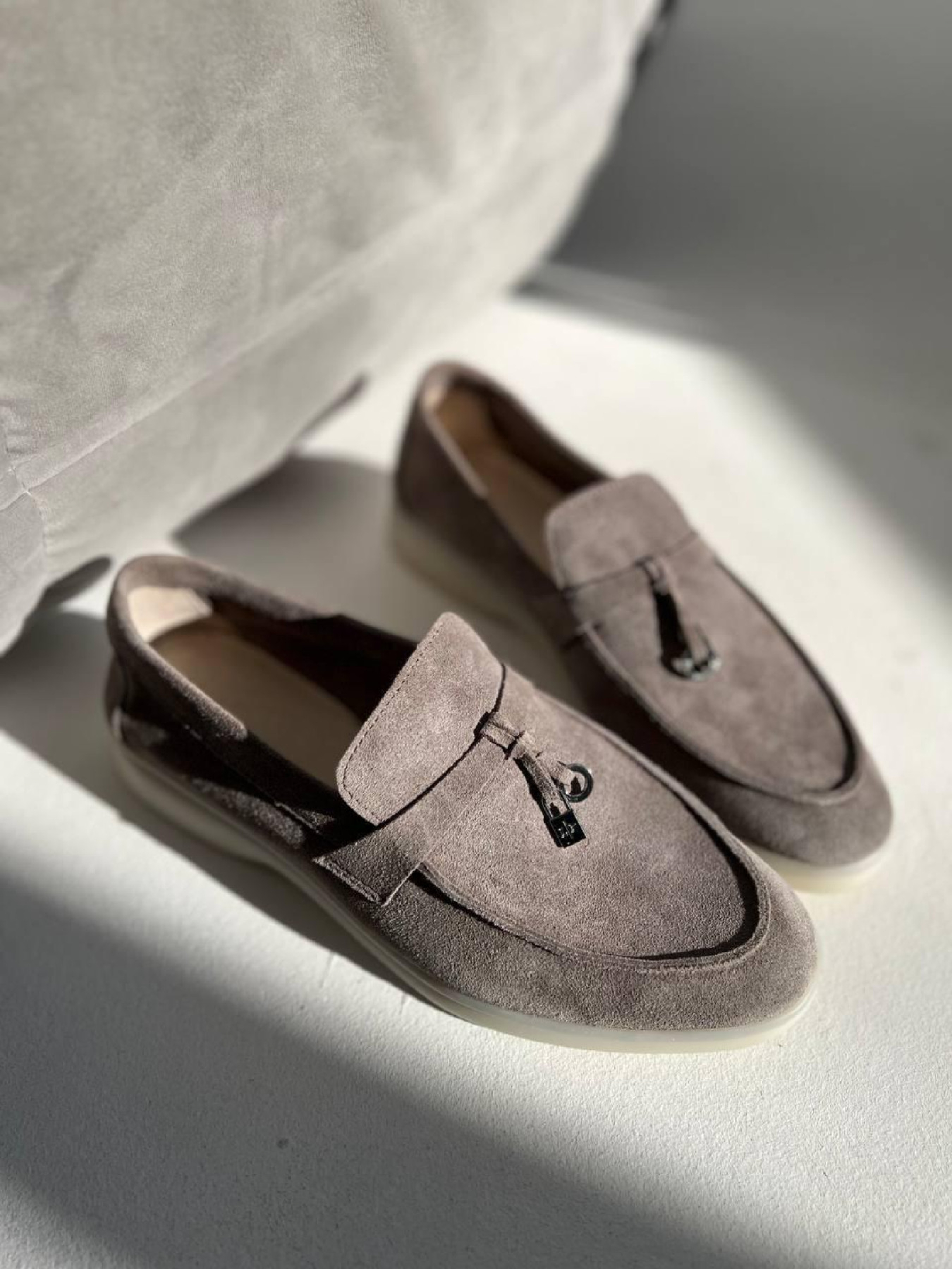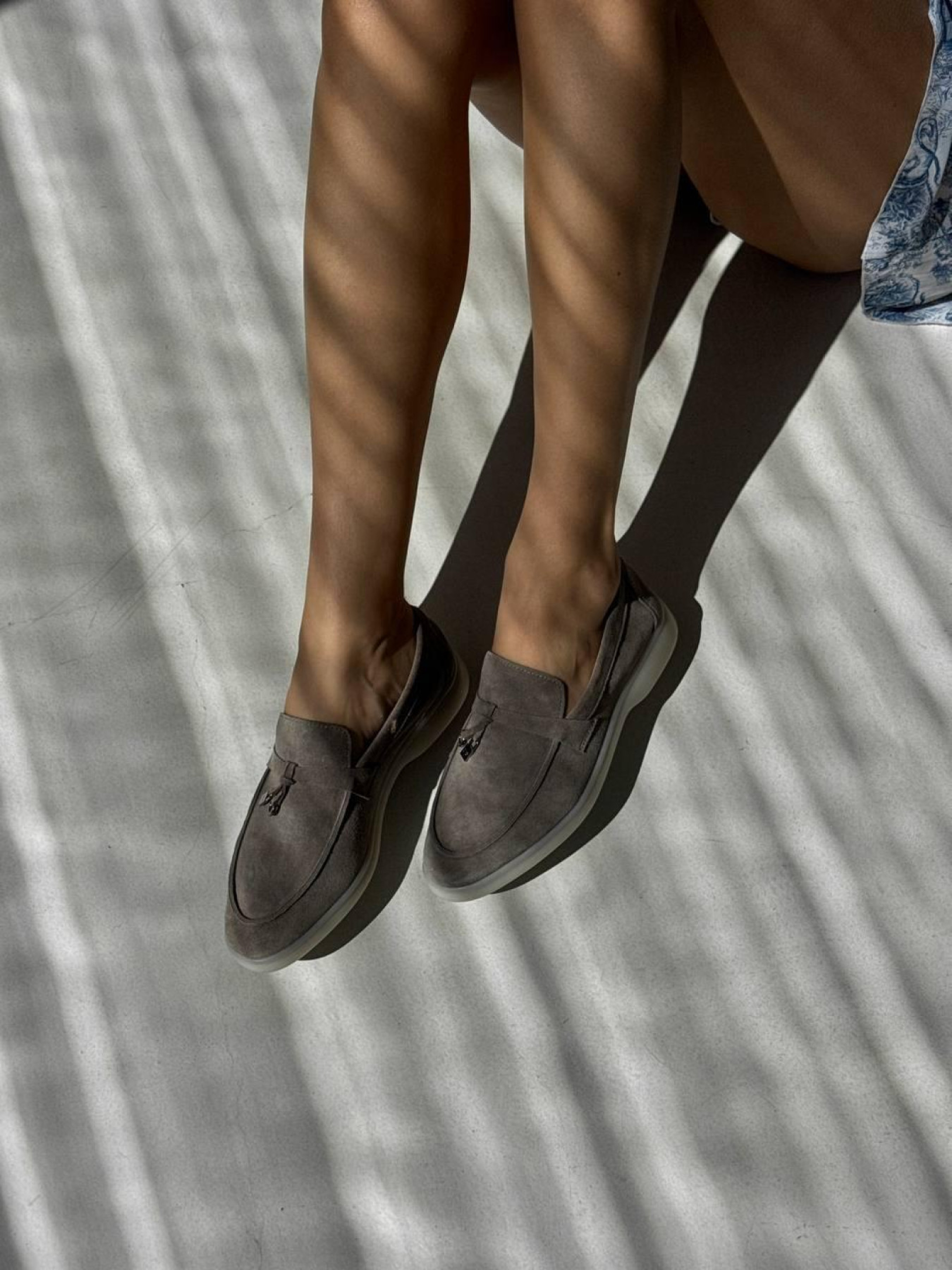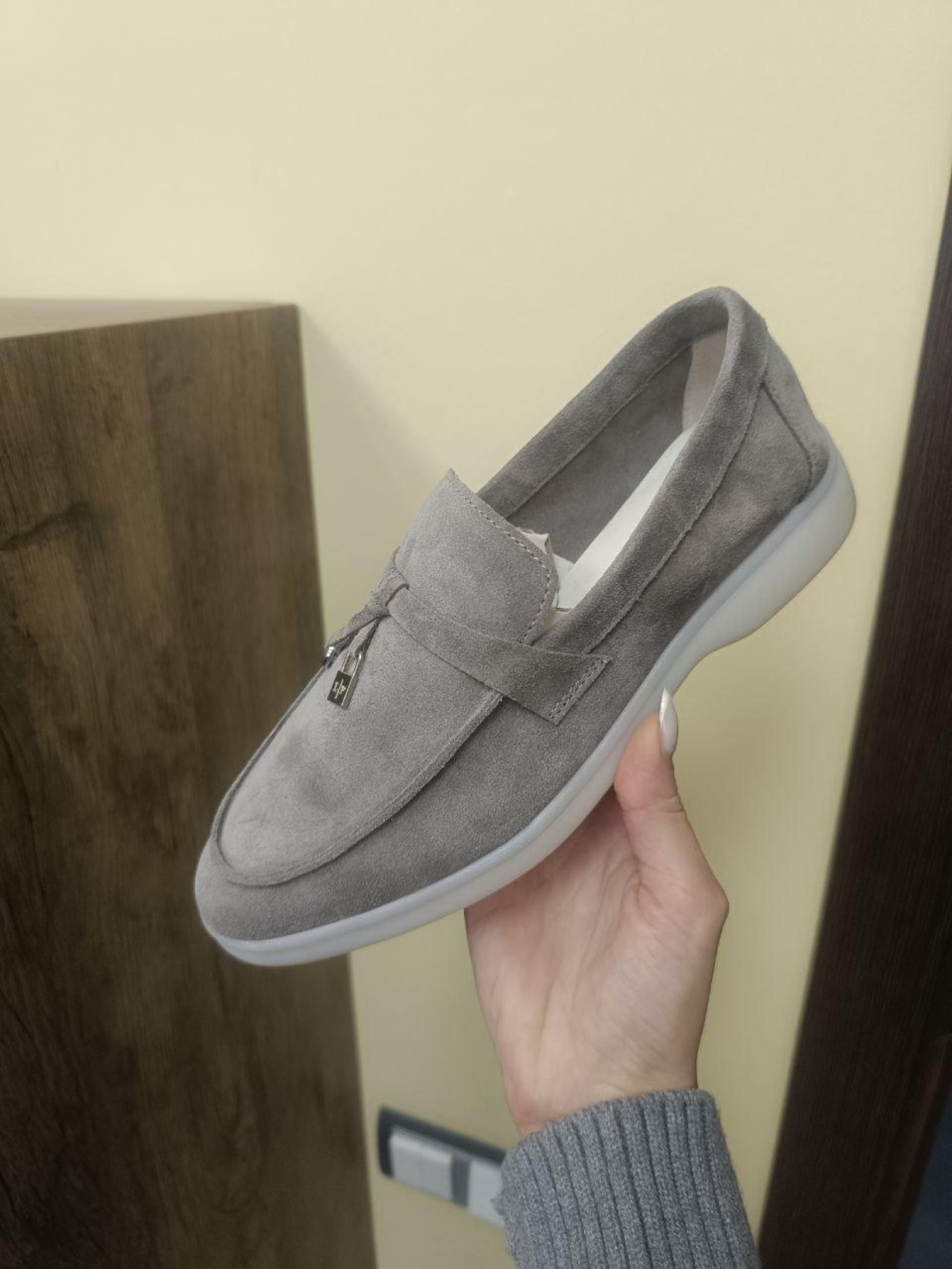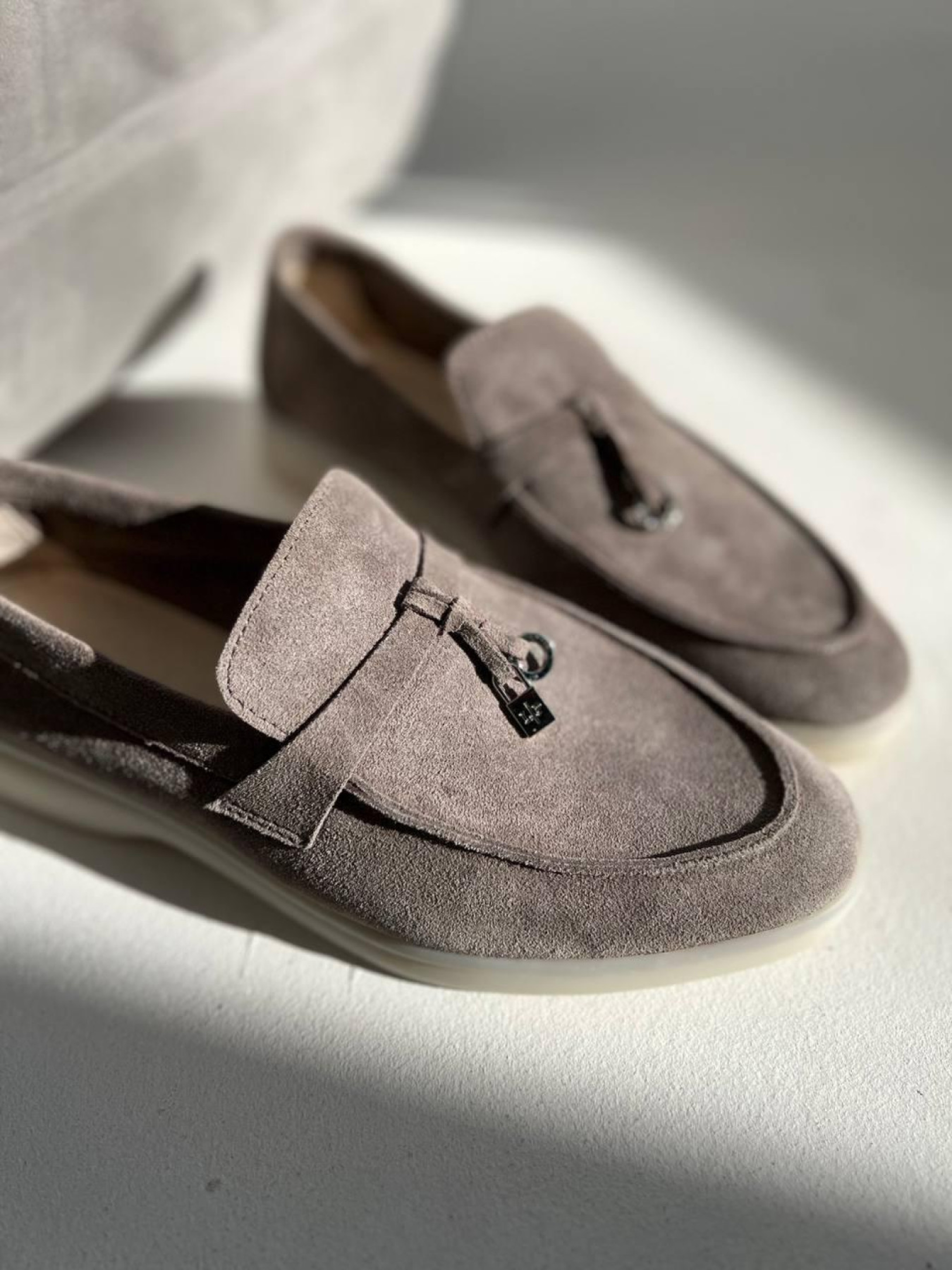Лоферы из натуральной замши на кожаной стельке узкая перемычка/замок и кольцо Моко серый (154/хилари2) модель P_207780-S39_207810