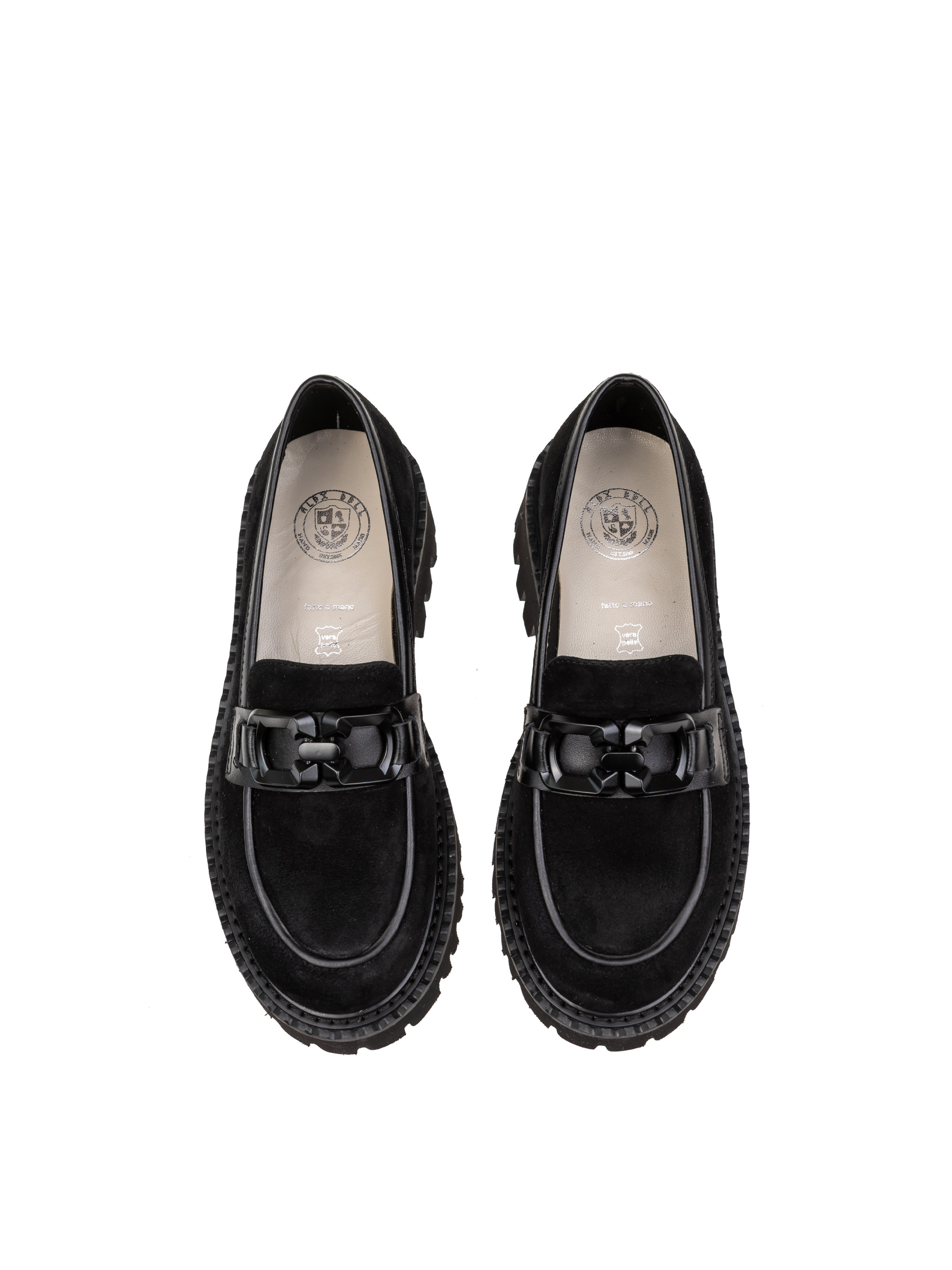 Стильные лоферы из натуральной замши с высокой подошвой на массивном каблуке – идеальное сочетание женственности и грубости, что очень модно сегодня и точно не выйдет из моды завтра. Обувь ALEX BELL прослужит вам немало сезонов, ведь изготовлена из материалов премиум класса с использованием современных разработок по подошве, внутренней части туфель, стелек. Колодка анатомическая, очень удобная. Каждый шов тщательно проработан. Благодаря массивной подошве эти туфли будут подходить к любому стилю одежды и гарантированно станут основой вашего гардероба. Трендовая не только подошва модели, но и аксессуары – массивные цепи увлекательной формы.
