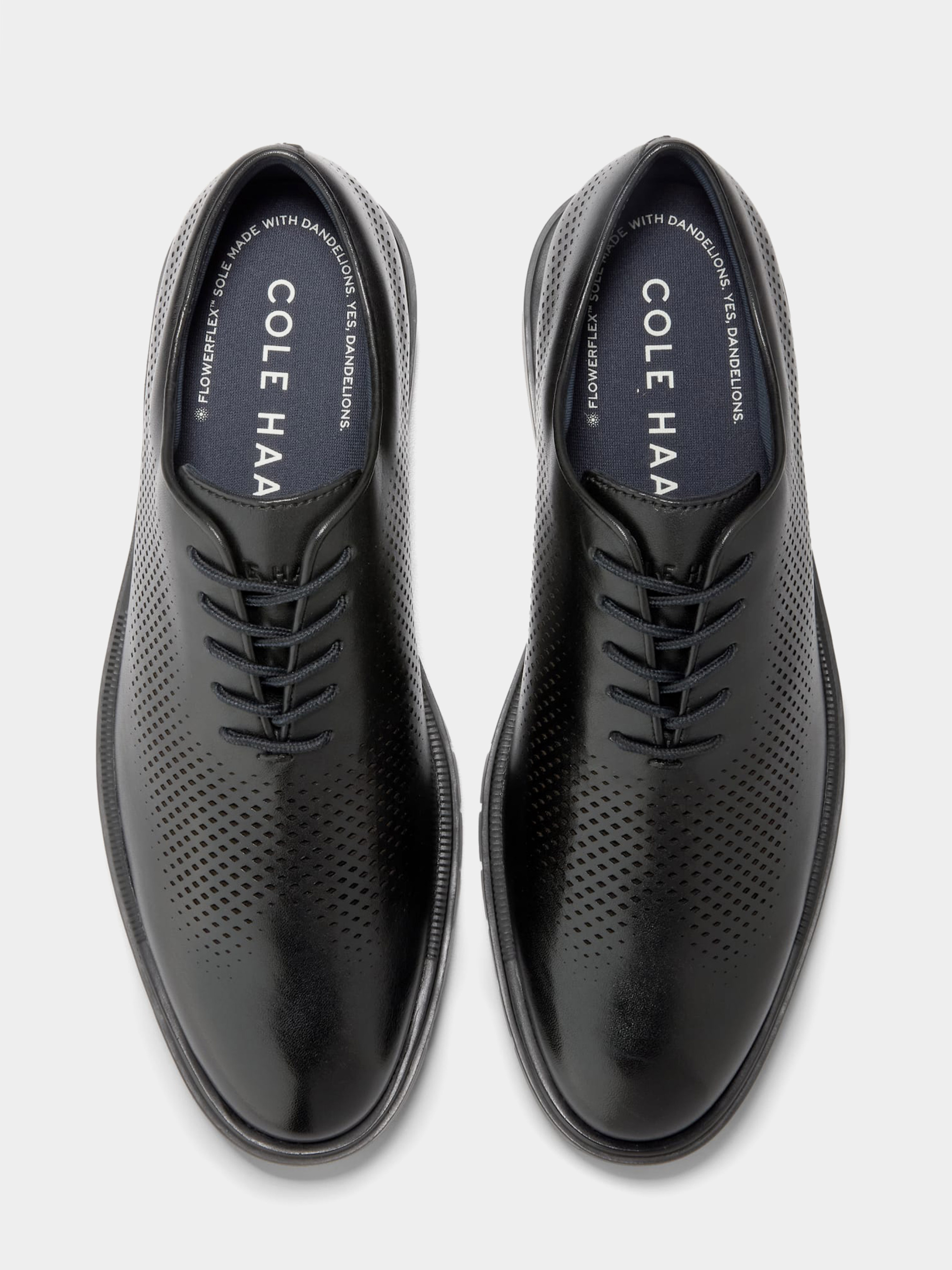Перфорированный лазером кожаный верх в цвете Black; система шнуровки с пятью "глазками". Резиновая наружная подошва с гибкими канавками на передней части стопы; наборный каблук. Промежуточная подошва FlowerFoam™ минимум на 25% сделана из натуральной одуванчиковой резины.