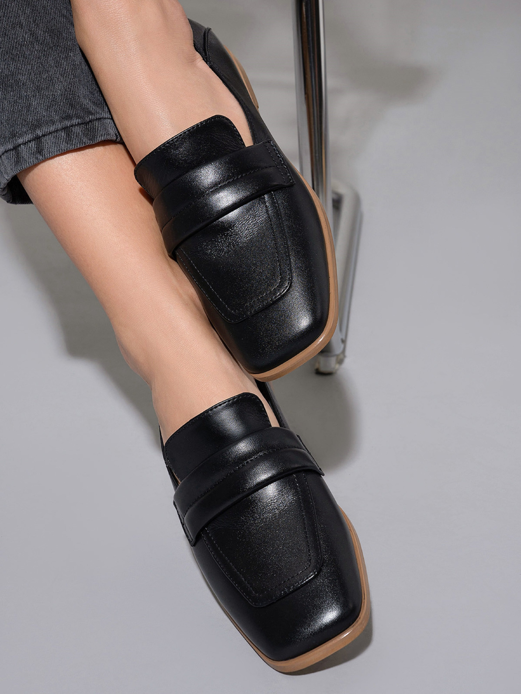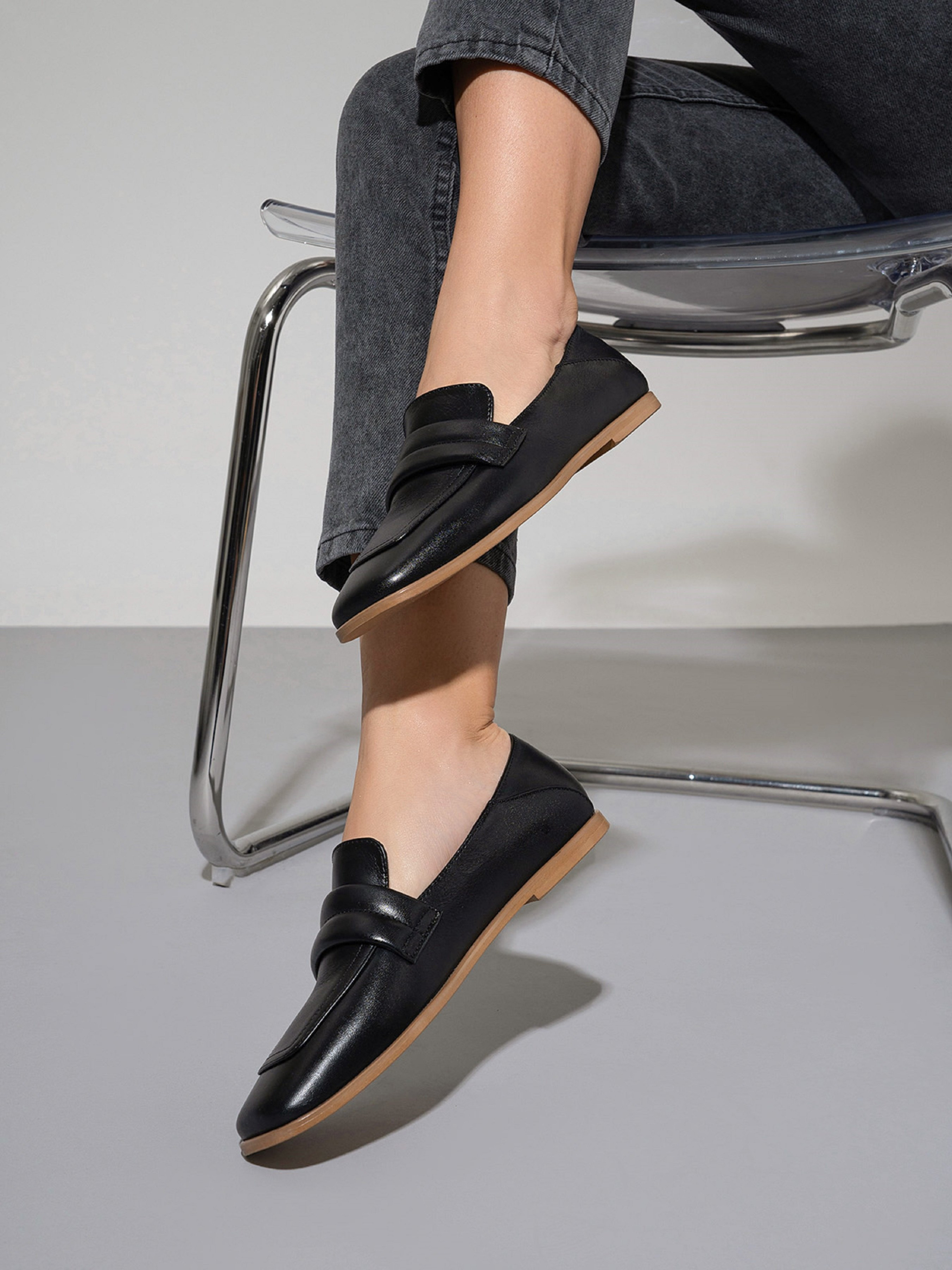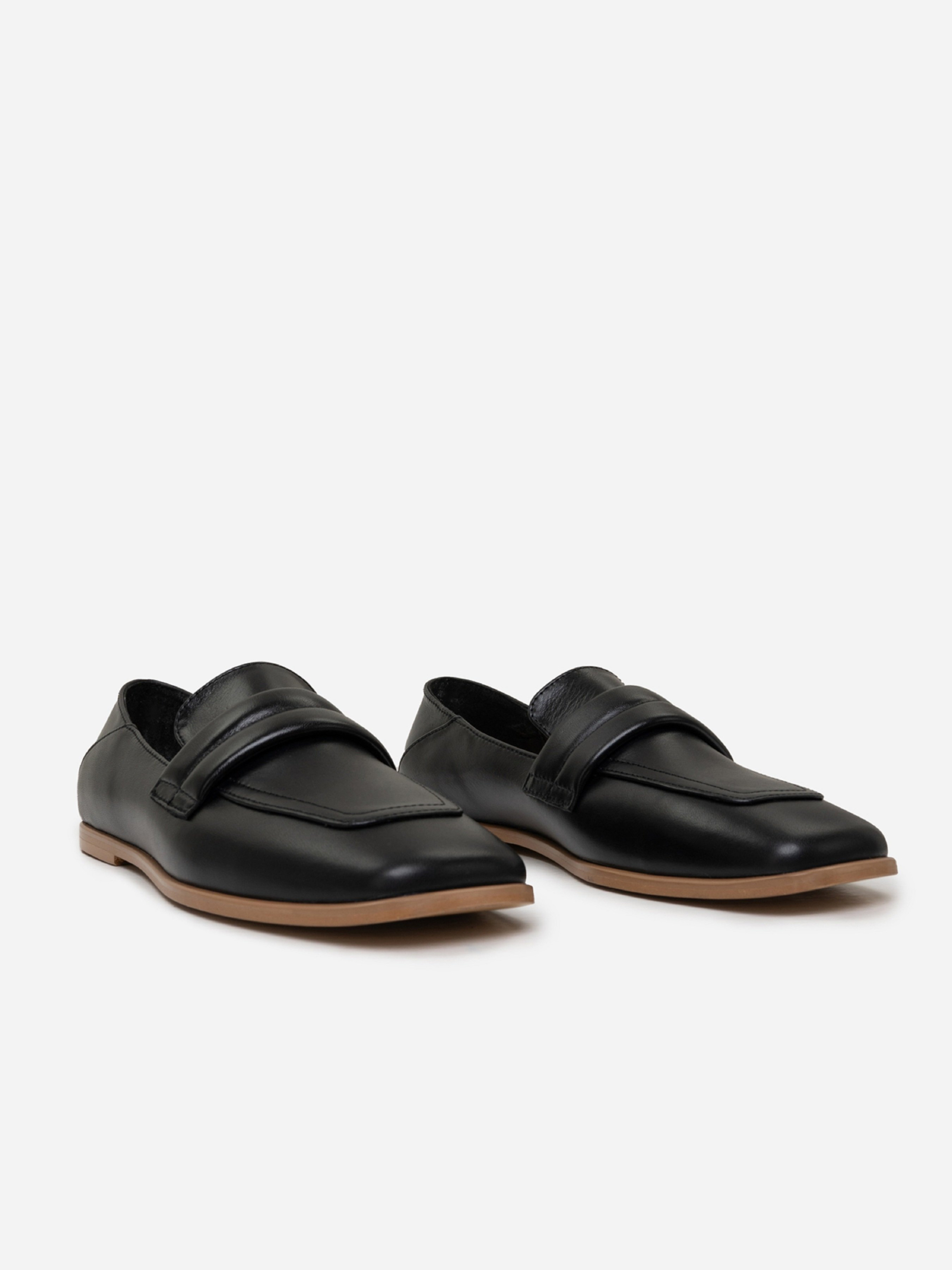 Черные классические туфли лоферы из натуральной кожи. Модель с прямоугольными носками и плоской подошвой. Материал верха: натуральная кожа. Подклад: натуральная кожа. Подошва: кожволон. Высота подошвы: 1 см и 0,5 см. Замеры: 36 (23), 37 (23,5), 38 (24), 39 (24,5), 40 (25), 41 (25,5)