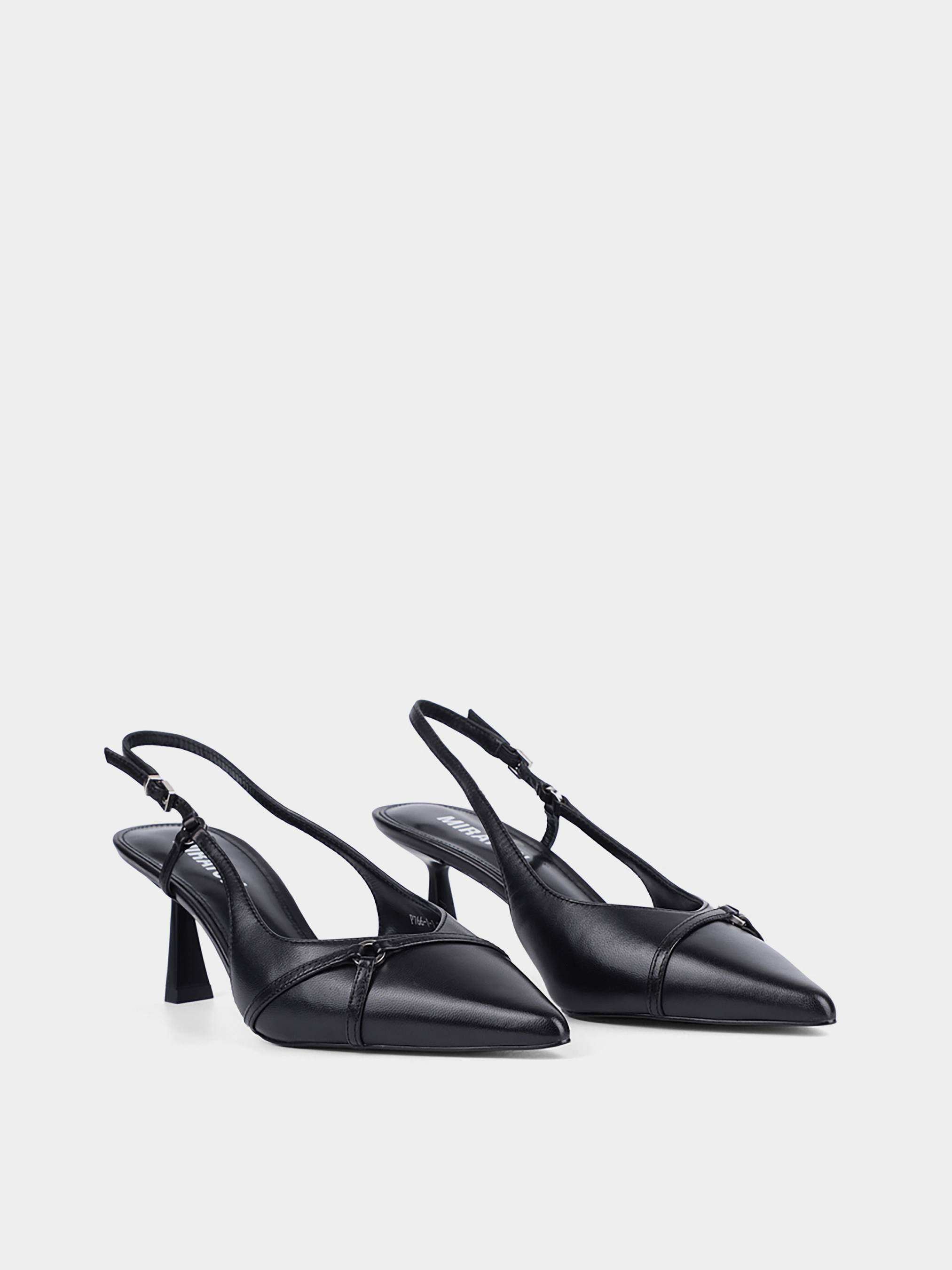 Женские туфли слингбеки MIRATON кожаные черные Материал: кожа. Подкладка: кожа. Бренд: MIRATON. Цвет: чёрный. Подошва: тонкая. Вид каблука: расклешенный. Высота каблука: 7. Стиль: мода. Cезон: весна-лето.