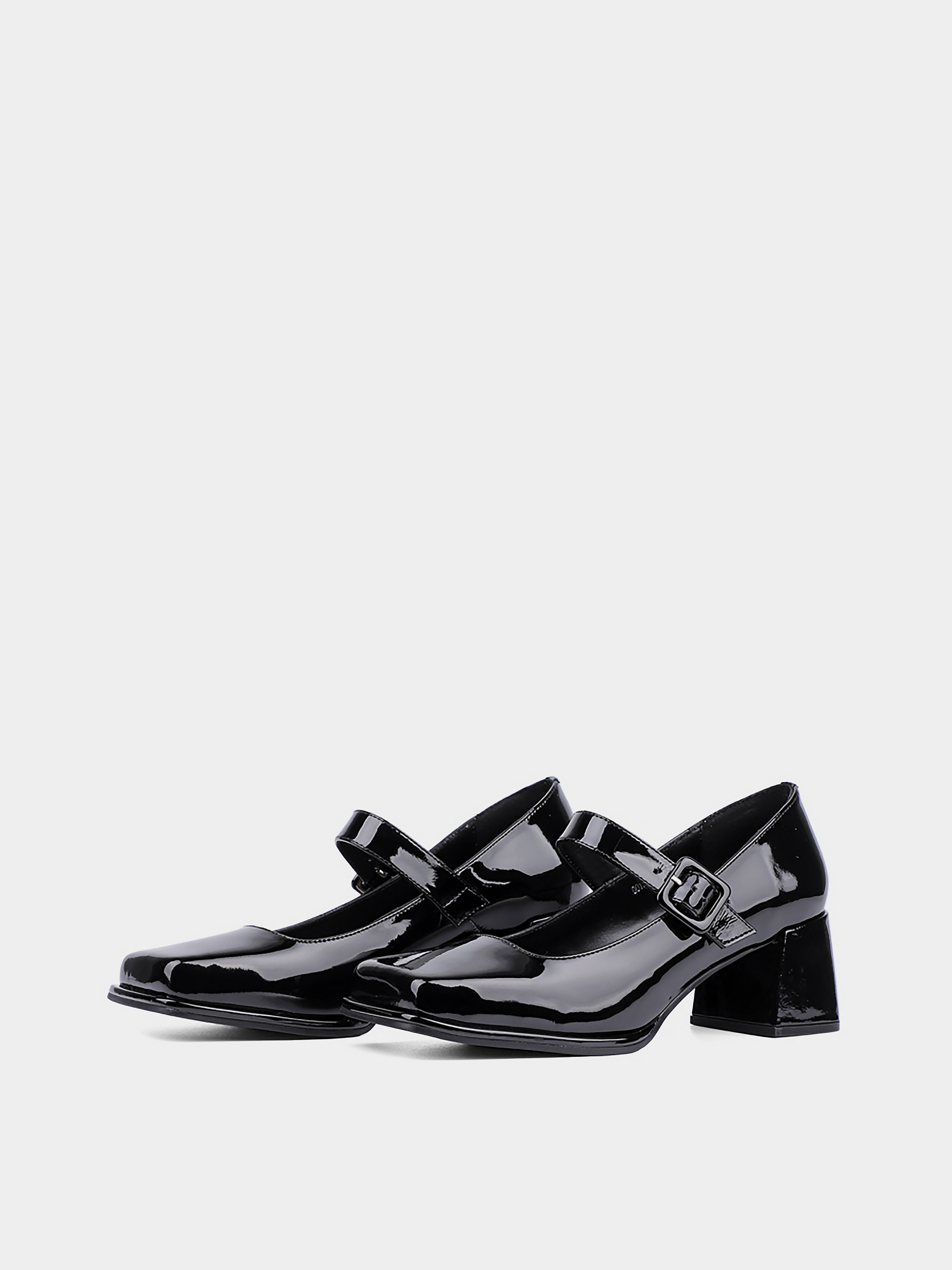 Женские туфли Мери Джейн с квадратным мысом и устойчивым каблуком. Материал верха: натуральная лаковая кожа. Материал подкладки: натуральная кожа. Цвет: черный.