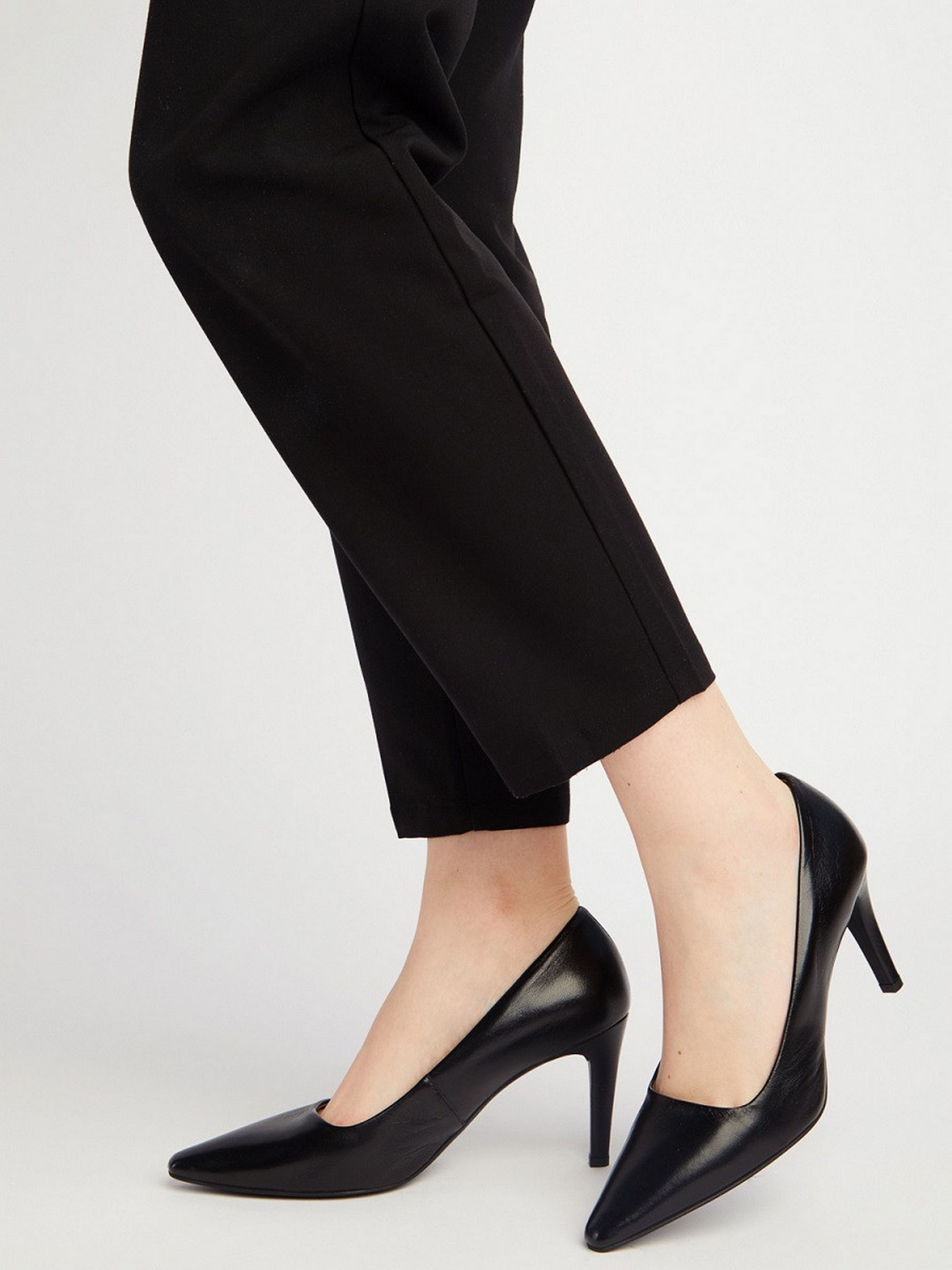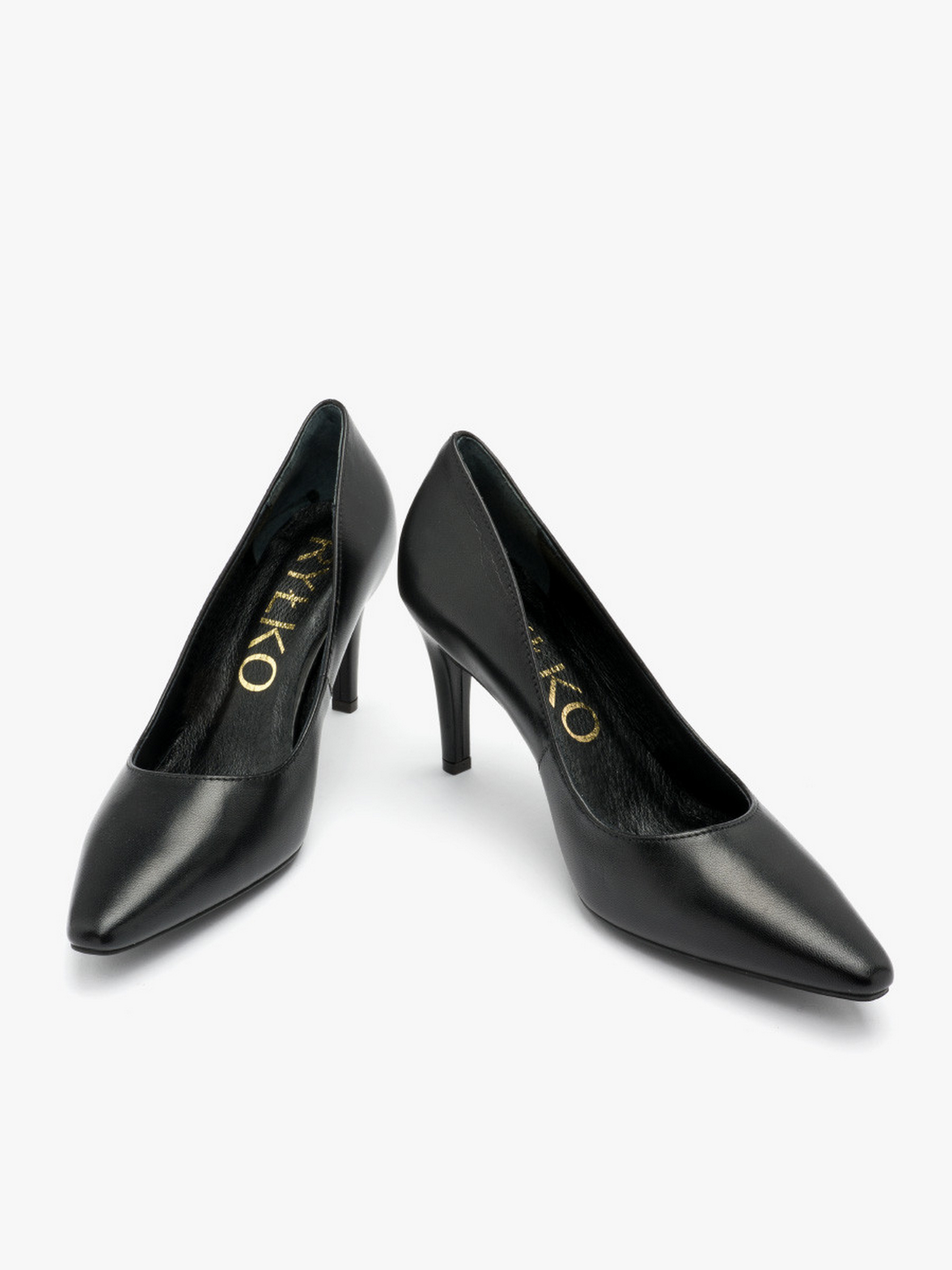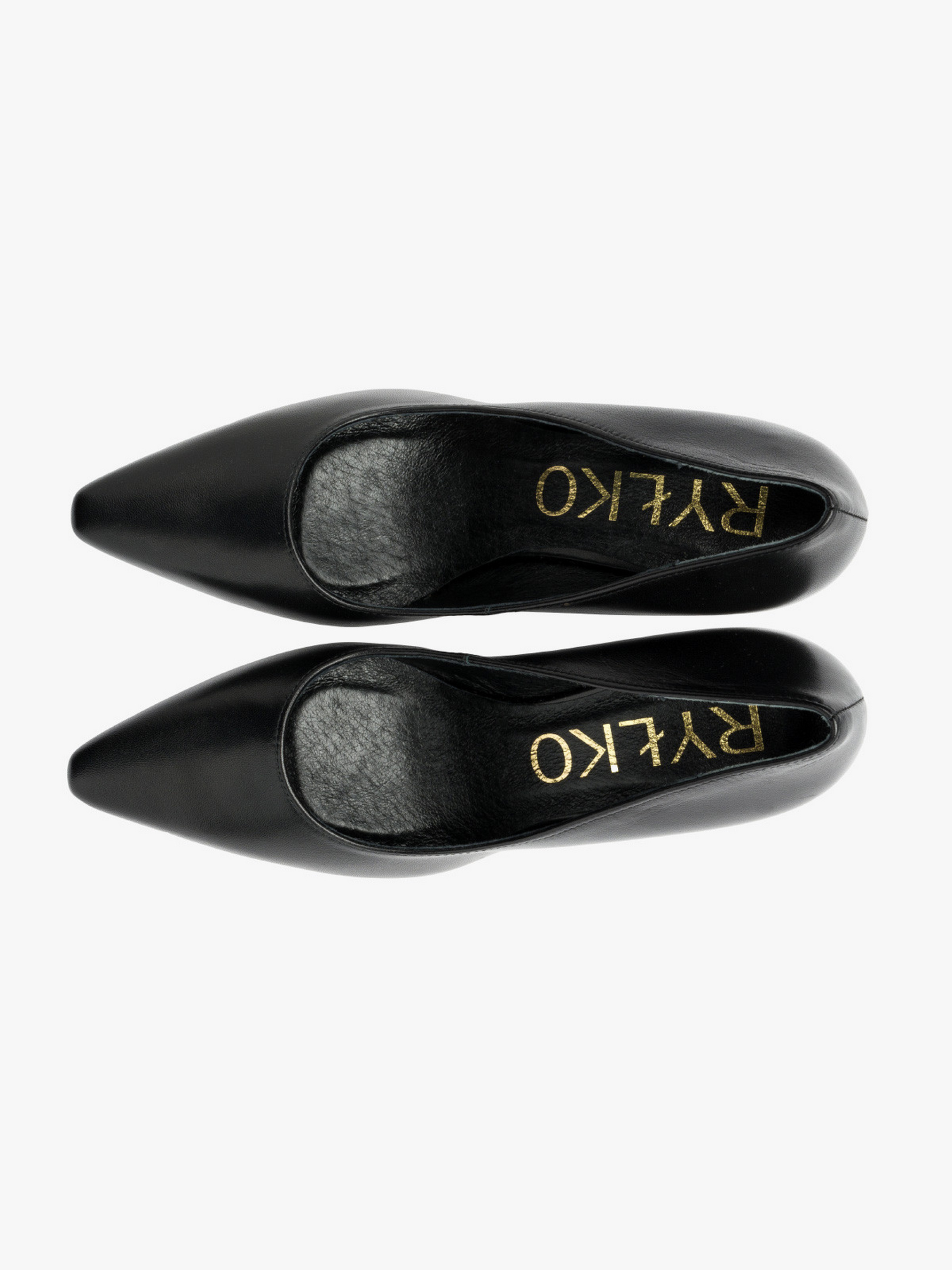 Классические туфли-лодочки RYLKO черного цвета. Модель изготовлена из лицевой кожи высокого качества. Каблук обтянут кожей - высотой 8,5 см. Подходят на стандартную (среднюю) полноту стопы.