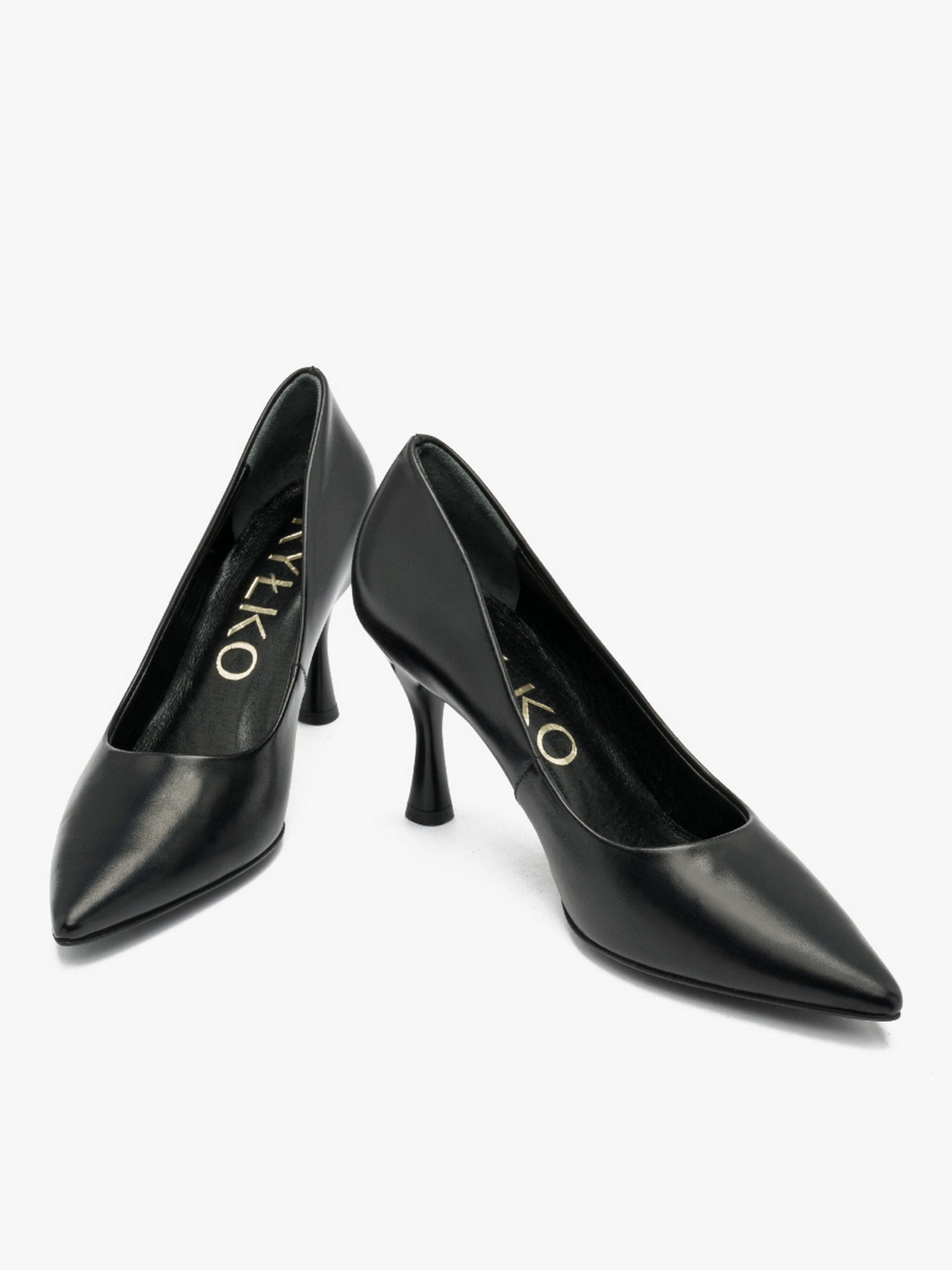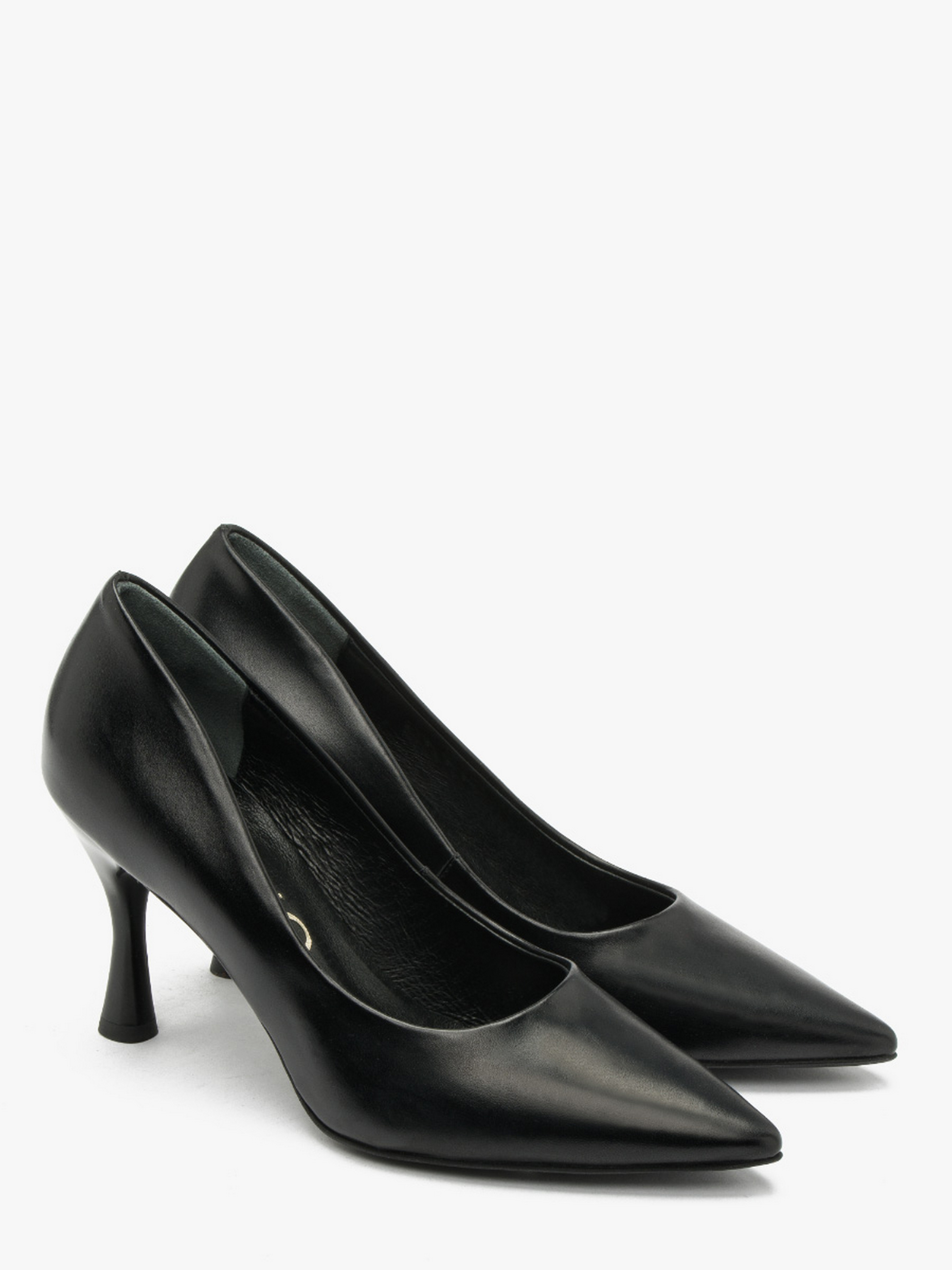 Кожаные туфли-лодочки черного цвета польского производителя RYŁKO. Модель выполнена из лицевой кожи высокого качества. Подходят на стандартную (среднюю) полноту стопы. Имеют удобный и устойчивый каблук, обтянутый кожей, в форме рюмочки высотой 7,5 см. Внутри кожа. Носок - шпиль. Чтобы правильно выбрать свой размер, обязательно обратите внимание на размерную сетку RYŁKO EU: 35-23,3 см; 36-24 см; 36,5-24,3 см; 37-24,7 см; 37,5-25 см; 38-25,3 см; 38,5-25,7 см; 39-26 см; 39,5-26,3 см; 40-26,7 см; 40,5-27 см; 41-27,3 см; 42-28 см.