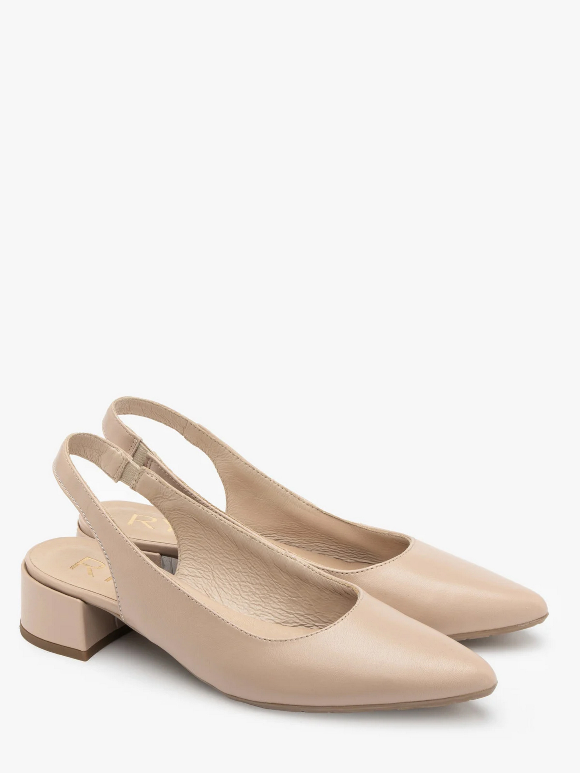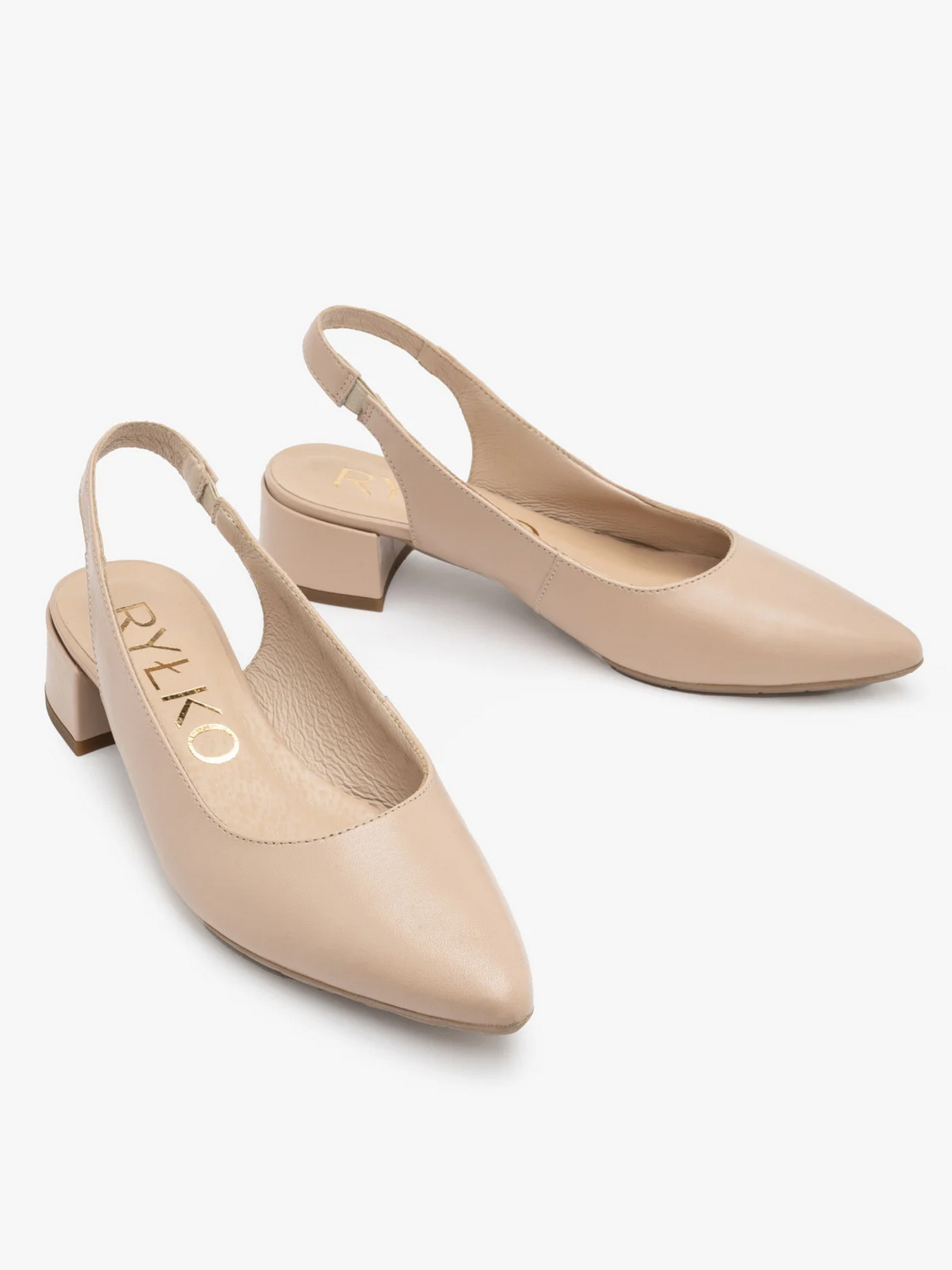 Кожаные туфли с открытой пяткой польского производителя RYLKO бежевого цвета. Изготовлены из натуральной лицевой кожи высокого качества. Подходят на стандартную (среднюю) полноту стопы. Внутри – натуральная кожа. Каблук высотой 3,5 см. Носок – шпиль, задник на резинке. В модели использована технология R.SILENCE – это приглушение ударов каблука, достигнутое благодаря применению технологически новой забойки, гасящей вибрации при ходьбе.