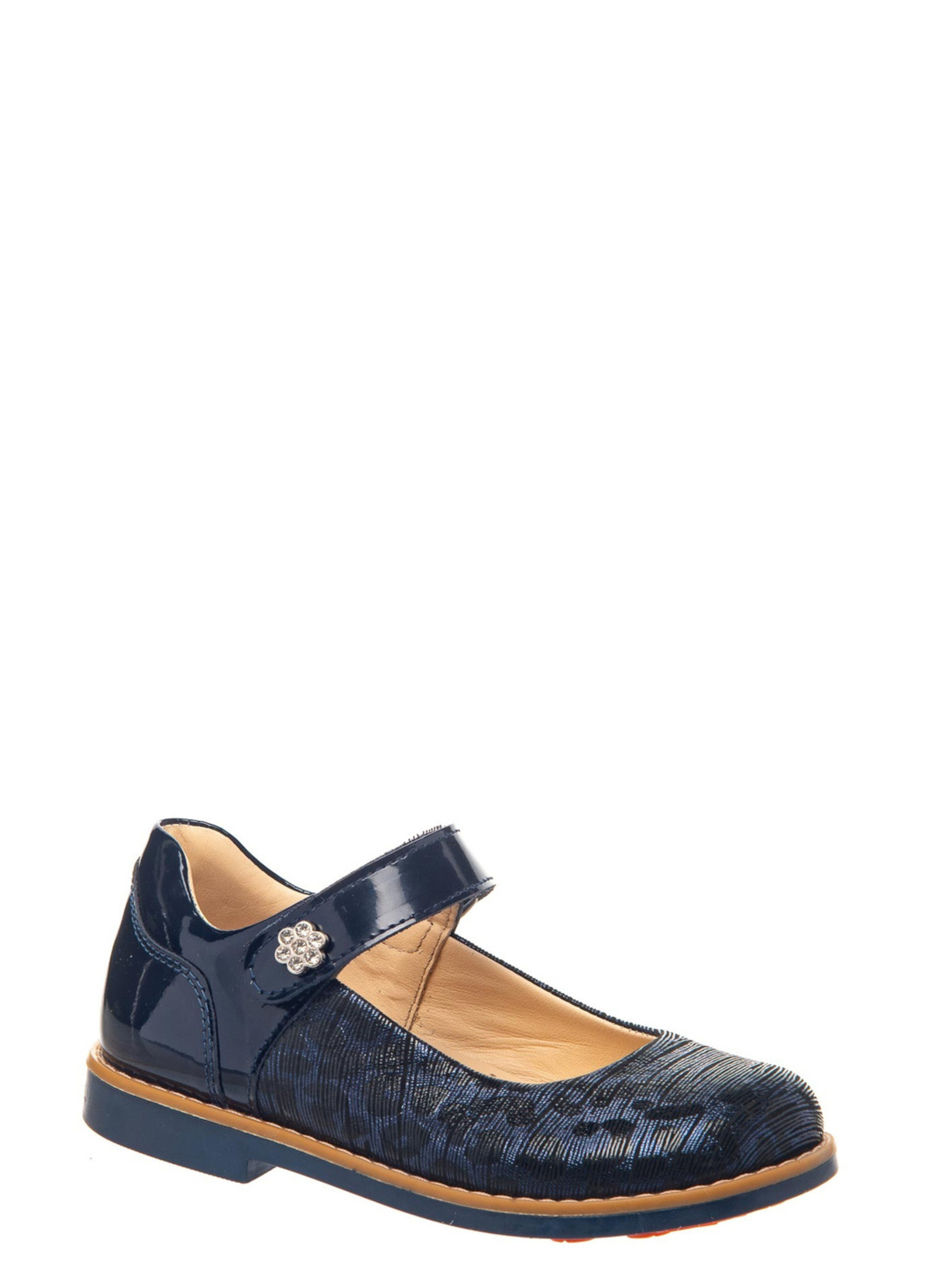 Школьные туфли для девочки из натуральной лаковой кожи синего цвета. Фиксируются с помощью липучки. Подкладка и стелька с анатомическим супинатором – натуральная кожа. Каблук Томаса на подошве предотвратит завал стопы. Материал, из которого изготовлена подошва – термопластичная резина, не скользит и хорошо амортизируется. 28 р. - 19 см. 29 р. - 19,5 см. 30 р. - 20,5 см. 31 р. - 21 см. 32 р. - 21,5 см. 33 р. - 22 см. 34 р. - 22,8 см.