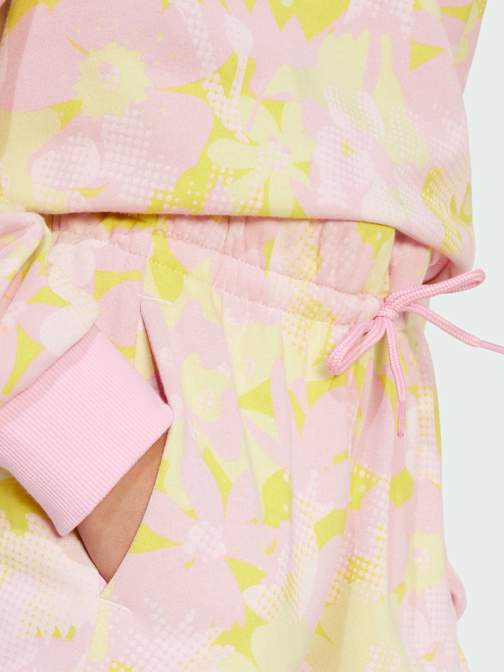 Характеристики 70% хлопок, 30% переработанный полиэстер Передние карманы Сплошной принт Стандартный крой, средняя посадка Эластичный пояс на завязках-шнурках Содержит не менее 70% переработанного и возобновляемого сырья Описание Эти шорты для подростков от adidas - идеальный выбор для летних приключений. Мягкая ткань френч-терри обеспечит комфорт в течение всего дня. Яркий цветочный принт придает образу игривости и свежести. Выбирая вторичную переработку, мы можем повторно использовать уже созданные материалы, что помогает сократить количество отходов. Выбор в пользу возобновляемых материалов поможет нам избавиться от зависимости от ограниченных ресурсов. Наши изделия, изготовленные из смеси переработанных и возобновляемых материалов, содержат не менее 70% этих материалов.
