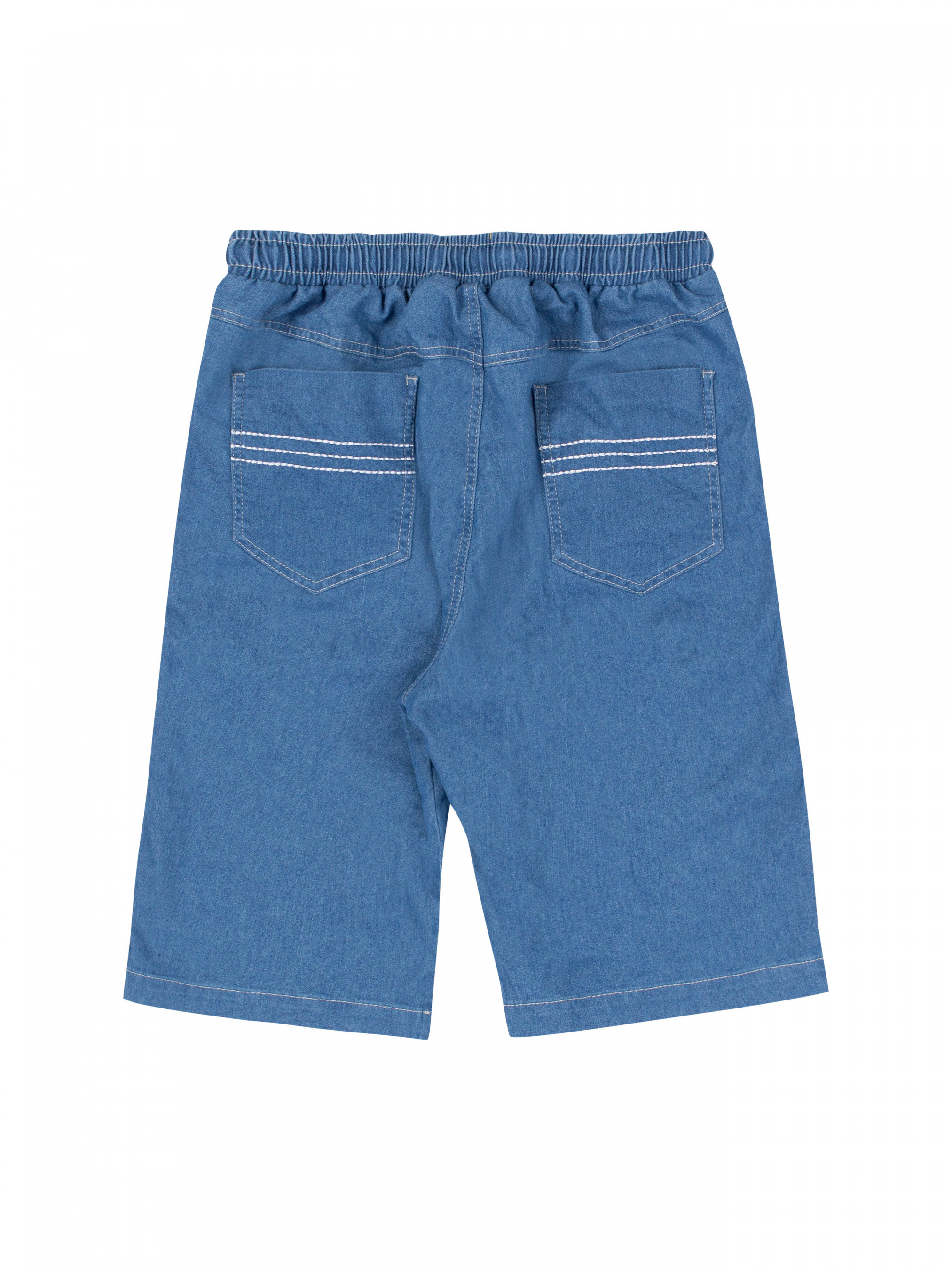 Шорты с эластичной резинкой на завязках. По бокам карманы. Прямой крой. Ткань джинс.