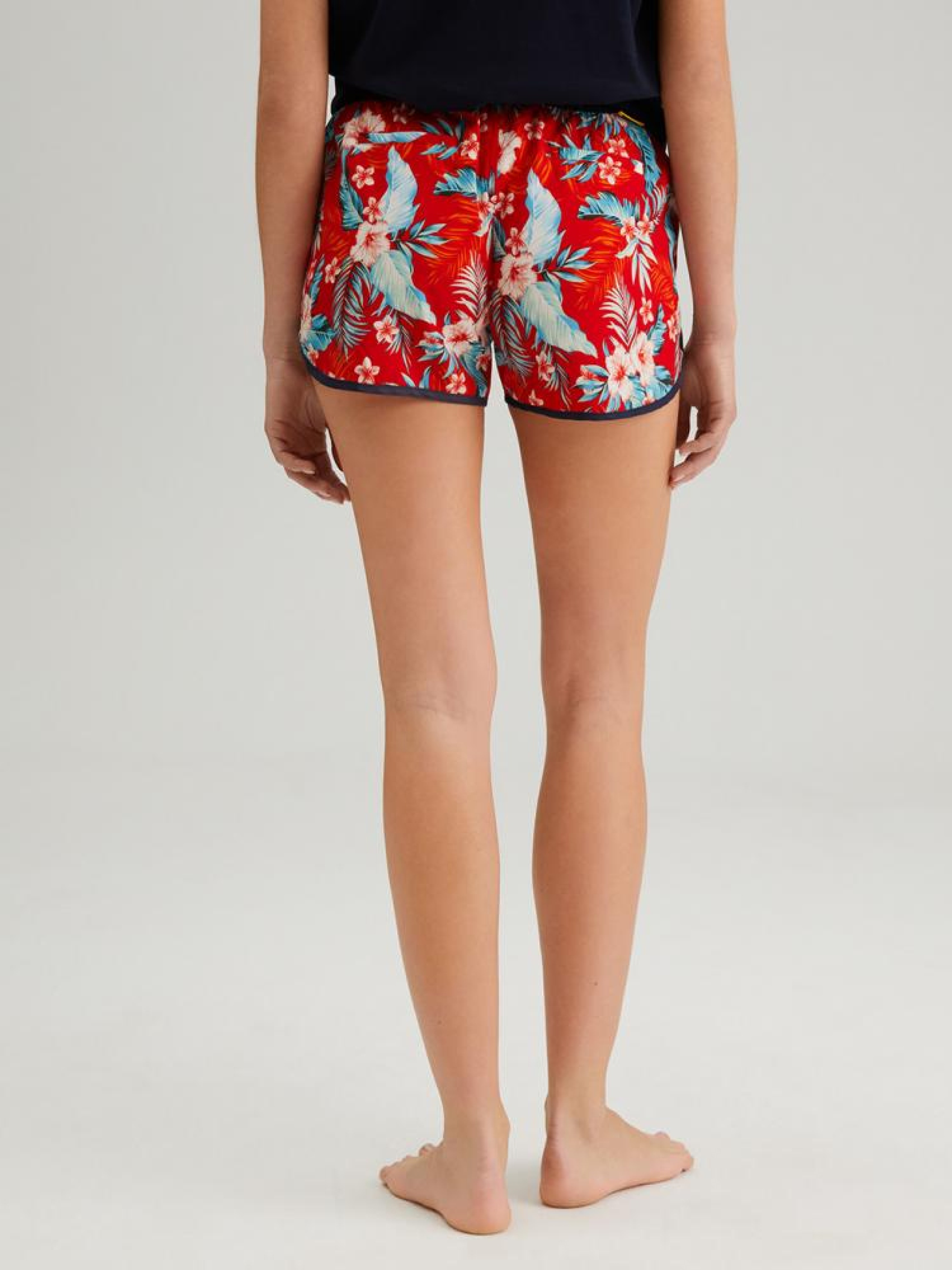 Шорты CLTN 557 10042217 Женские шорты с контрастной отделкой: - удобного кроя, - из полиэстеровой ткани, - с контрастной обработкой, - с карманами, - завязываются шнурком на талии, - доступны в разноцветном принте. Сезон: Весна/Лето Состав: 97% полиэстер 3% эластан Уход: - стирка при максимум 30 °С - не отбеливать - не сушить в сушильной машине - гладить максимум при темп. 110 °С - не химчистка Размер на модели - S Рост модели - 176 см