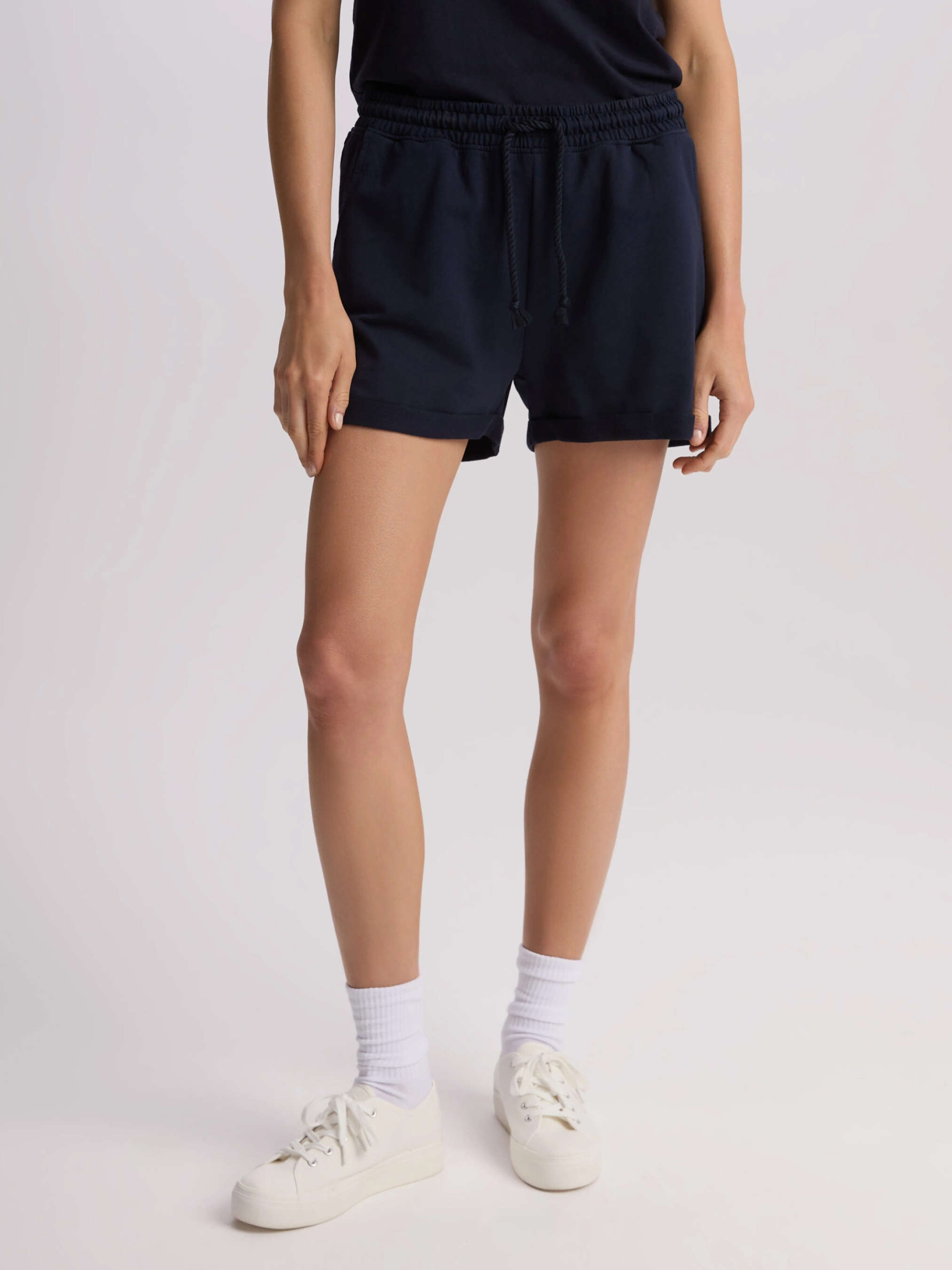 MAFFEN Шорты с высокой талией и эластичным поясом: - обычного кроя, - изготовлены из хлопкового трикотажа, - со шнурками на талии, - с аппликацией на штанине. Состав: 100% хлопок Сезон: Весна/Лето Уход: - стирка при максимуме 30 °С - деликатные вещи - не отбеливать - не сушить в сушильной машине - гладить максимум при темпе. 110 °С - не химчистка