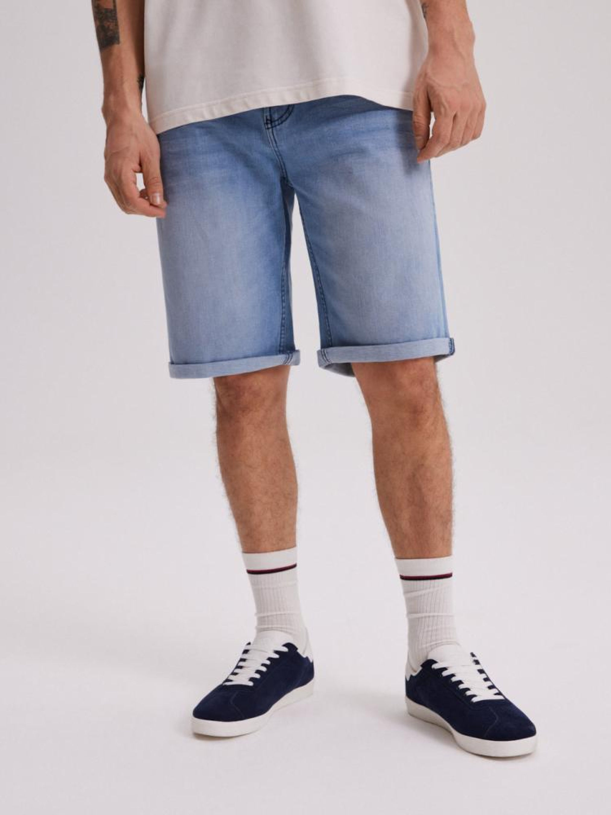 Шорты SHELDON SH 242 10043900 Классические прямые джинсовые шорты: - сделаны из хлопка с эластаном, что делает их удобными в ношении, - имеют 5 карманов и декоративные потертости спереди и сзади, - застегиваются на кнопку и молнию. Сезон: Весна/Лето 2024 Состав: 99% хлопок 1% эластан Уход: - стирка при максимум 40 °С - не отбеливать - сушить при низкой температуре - гладить максимум при темп. 150°С - не химчистка Размер на модели - 34 Рост модели - 187 см