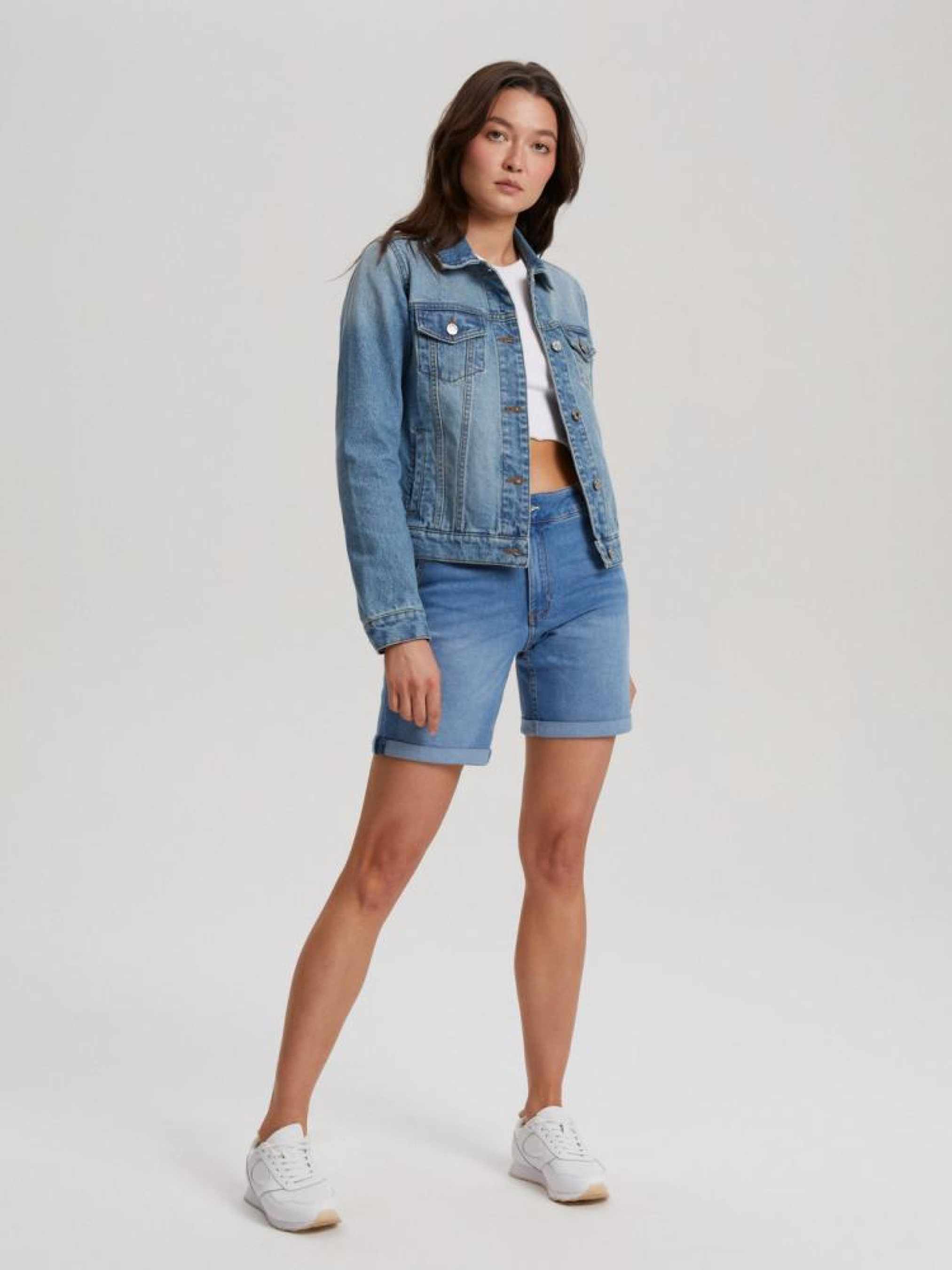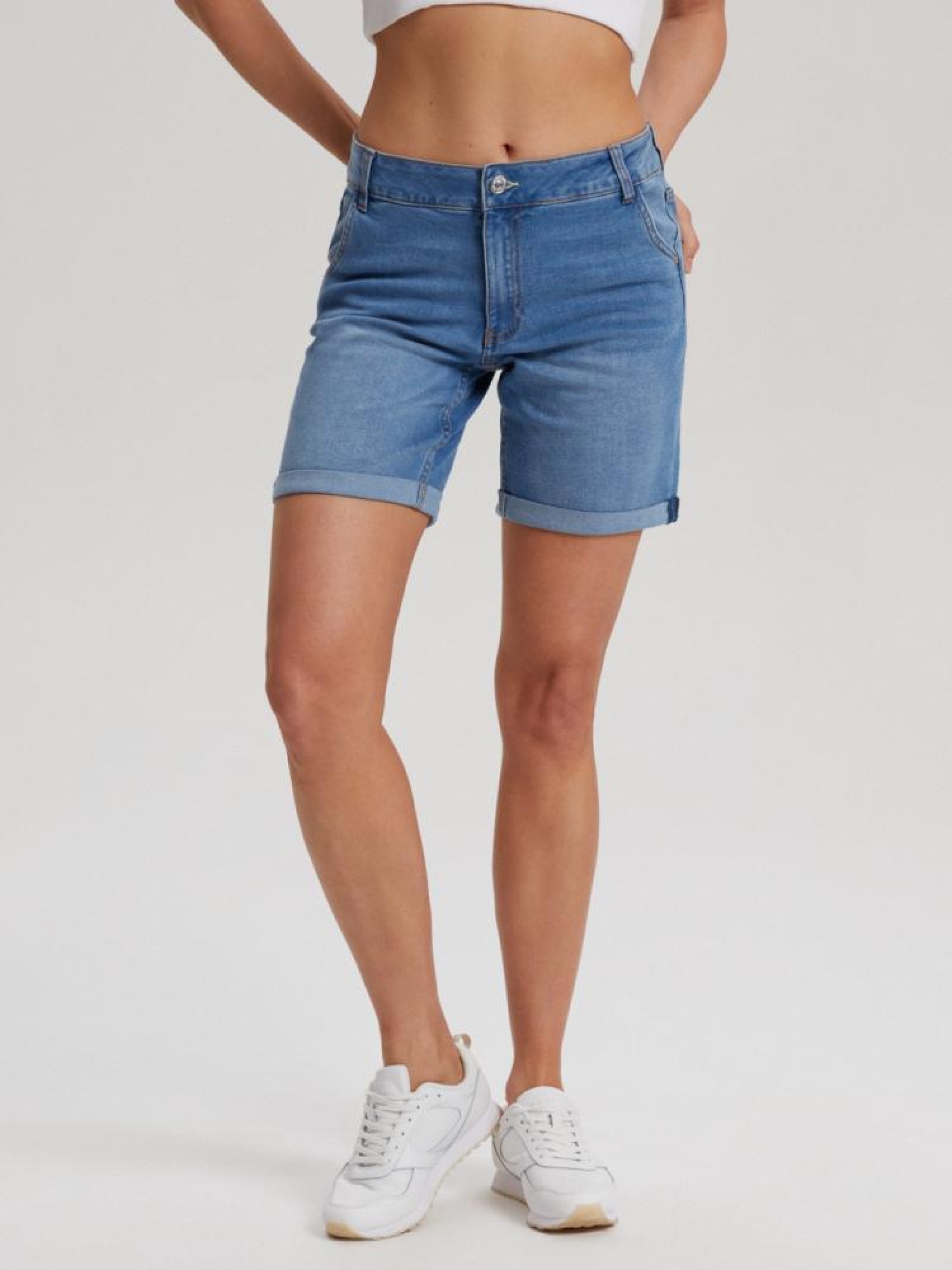 Шорты BOMIA 10041490 Шорты средней посадки с подвернутыми штанинами: - приталенного кроя, - из джинсовой ткани с хлопком, - с подвернутыми штанинами, - с эффектом стирки. Сезон: Весна/Лето Состав: 83% хлопок 15% полиэстер 2% эластан Уход: - стирка при максимум 40 °С - не отбеливать - сушите при низкой температуре - гладить максимум при темп. 150°С - не химчистка Размер на модели - S Рост модели - 173 см