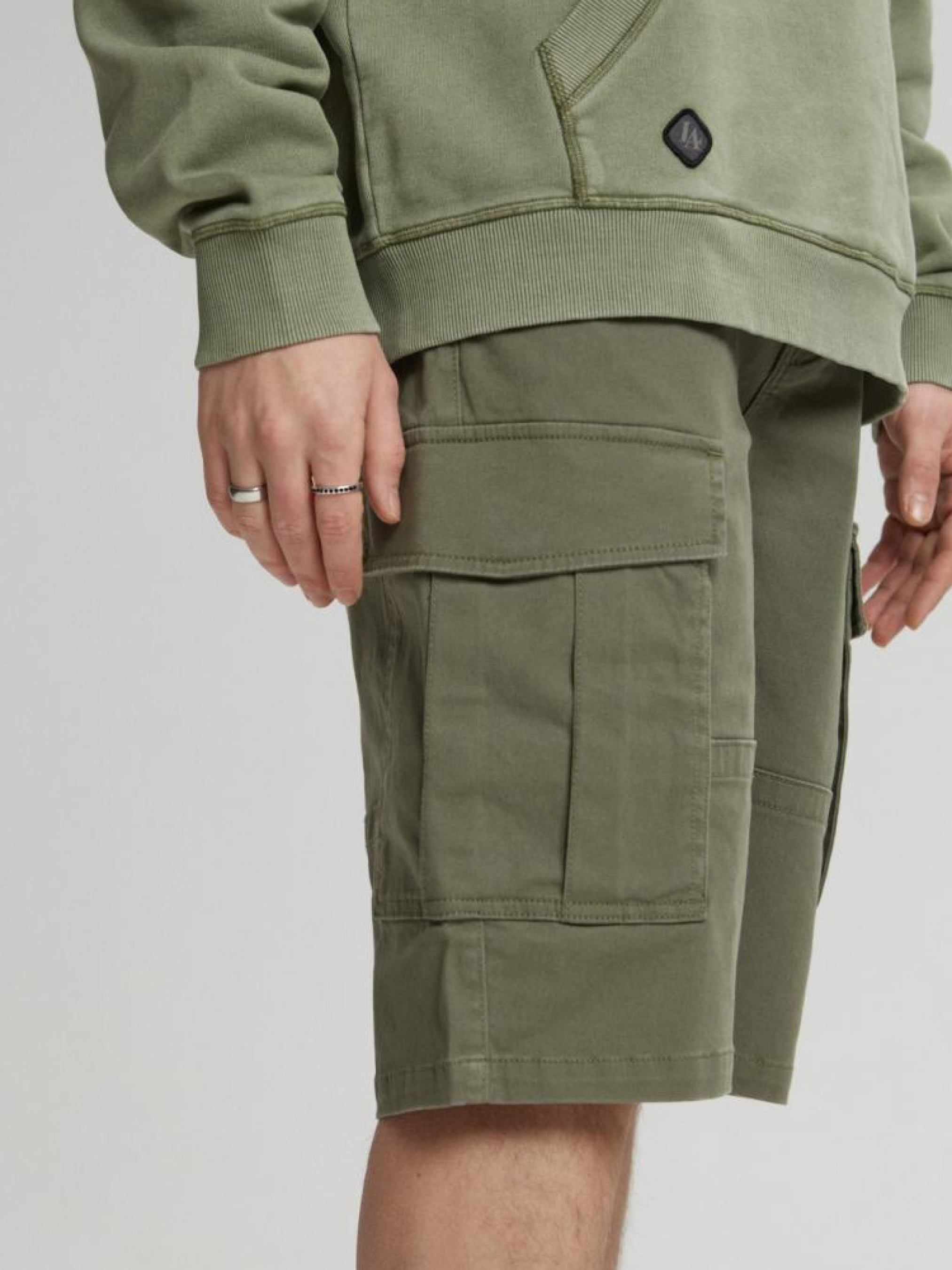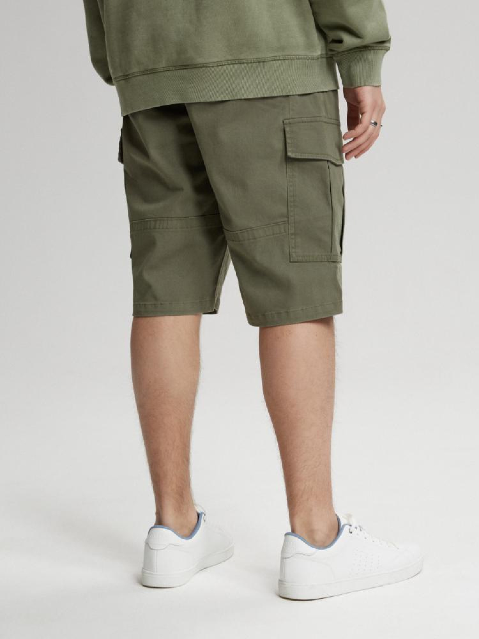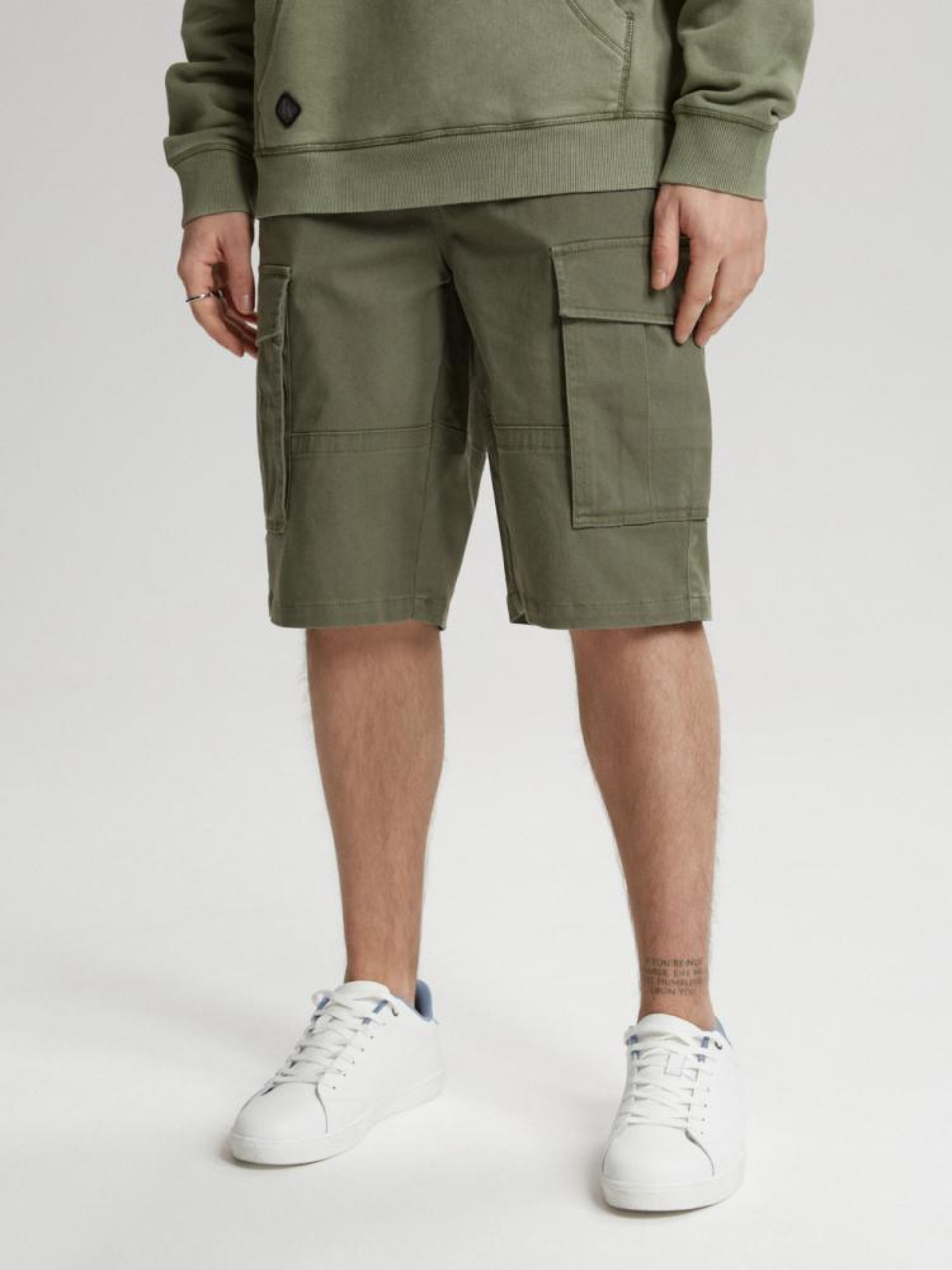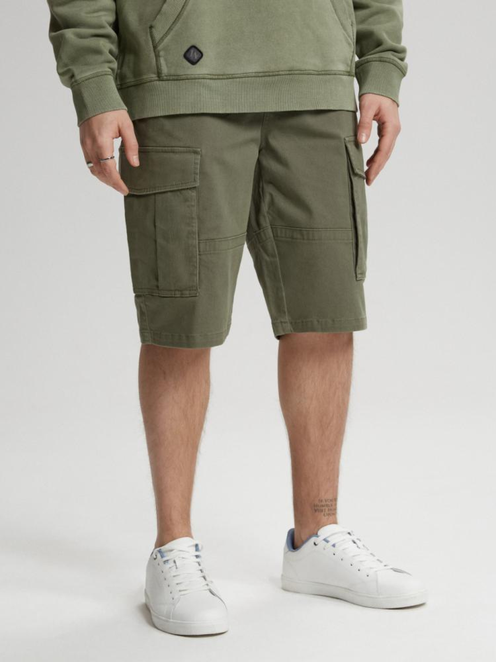 Шорты THORAN SH 232 10041325 Укороченные шорты карго - свободные удобные хлопковые штаны, - застегиваются на молнию и пуговицу, - два передних кармана, - два больших закрытых кармана карго по бокам на штанинах, - два задних кармана. Сезон: Весна/Лето Состав: 98% хлопок 2% эластан. Уход: - стирка при максимум 30 °С - не отбеливать - не сушить в сушильной машине - гладить максимум при темп. 150 °С - не химчистка Размер на модели - 32 Рост модели - 188 см