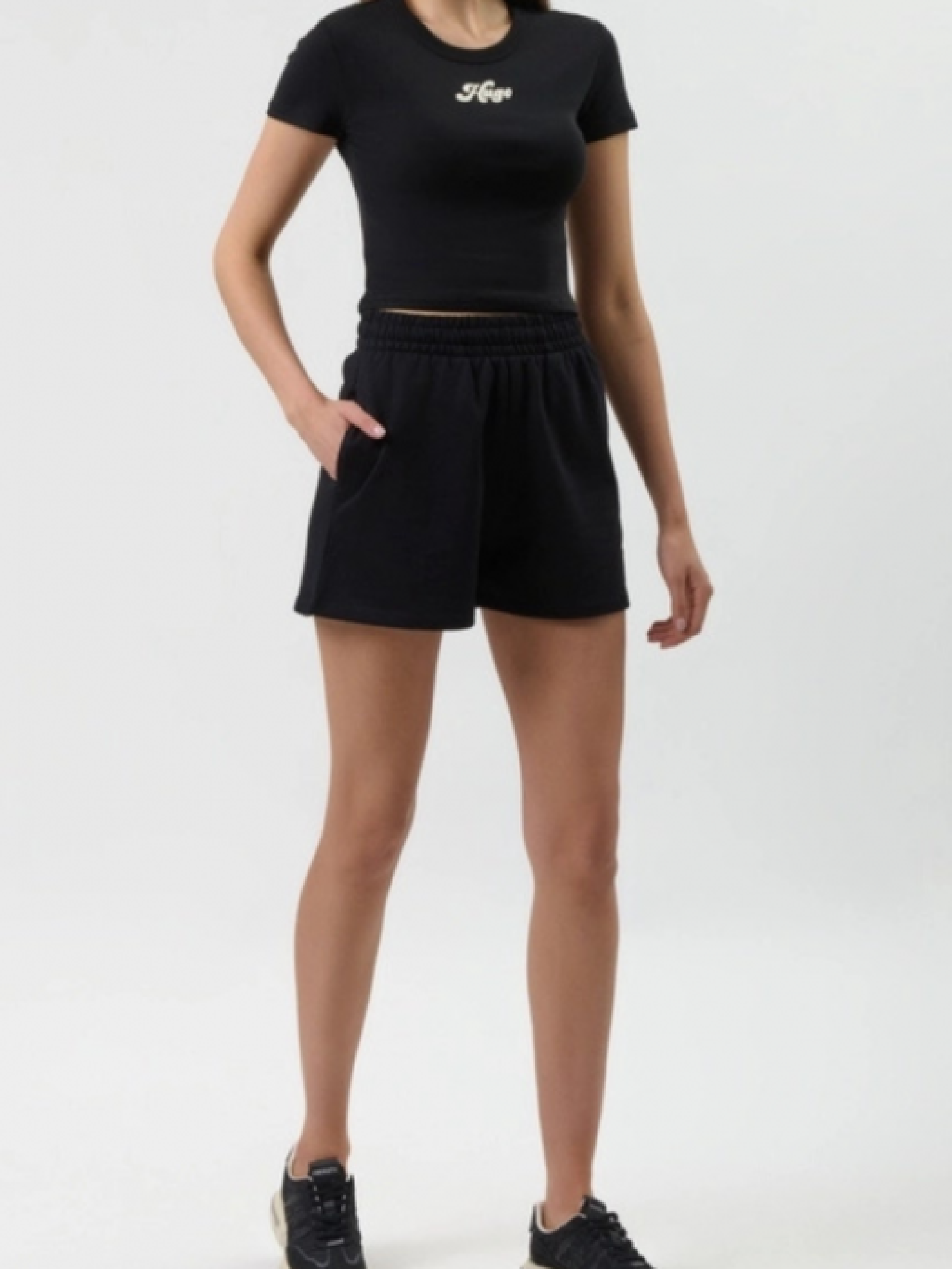 Женские шорты черного цвета — базовый элемент гардероба, который сочетает в себе стиль и комфорт. Модель выполнена из качественного материала и имеет универсальный дизайн. Отлично комбинируются с футболками, топами или рубашками, создавая как повседневные, так и элегантные образы. Подойдут для лета и теплых вечеров.
