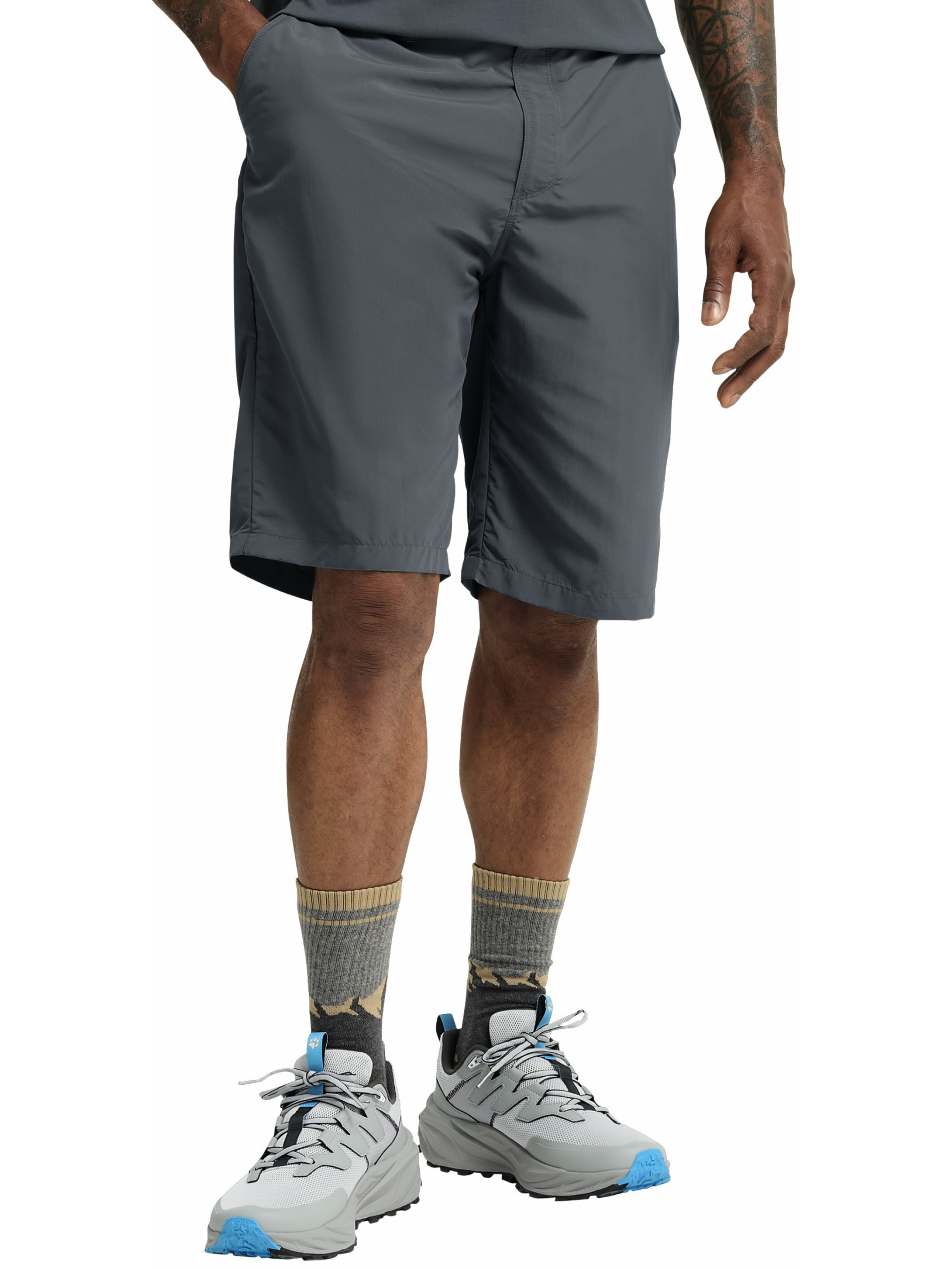 Шорты DUNELAND SHORTS M предназначены для активного отдыха и путешествий, когда важны удобство и практичность. Модель имеет комфортную стандартную посадку и среднюю линию талии, что обеспечивает естественную свободу движения в динамичном ритме дня. Лаконичный дизайн легко сочетается с разной одеждой, делая шорты универсальным вариантом для прогулок и путешествий. Синтетический материал работает вместе с технологией TEXADRI, эффективно отводящей влагу от кожи и быстро высыхающей. Это помогает поддерживать приятные ощущения даже при интенсивной активности. Ткань также способствует регулированию влажности и быстрому высыханию, что особенно уместно в пути. Функциональность дополняют два передних кармана для необходимых мелочей. Изделие сертифицировано по стандарту bluesign PRODUCT и изготовлено в соответствии с принципами Fair Wear Foundation, что подчеркивает ответственный подход бренда к производству.