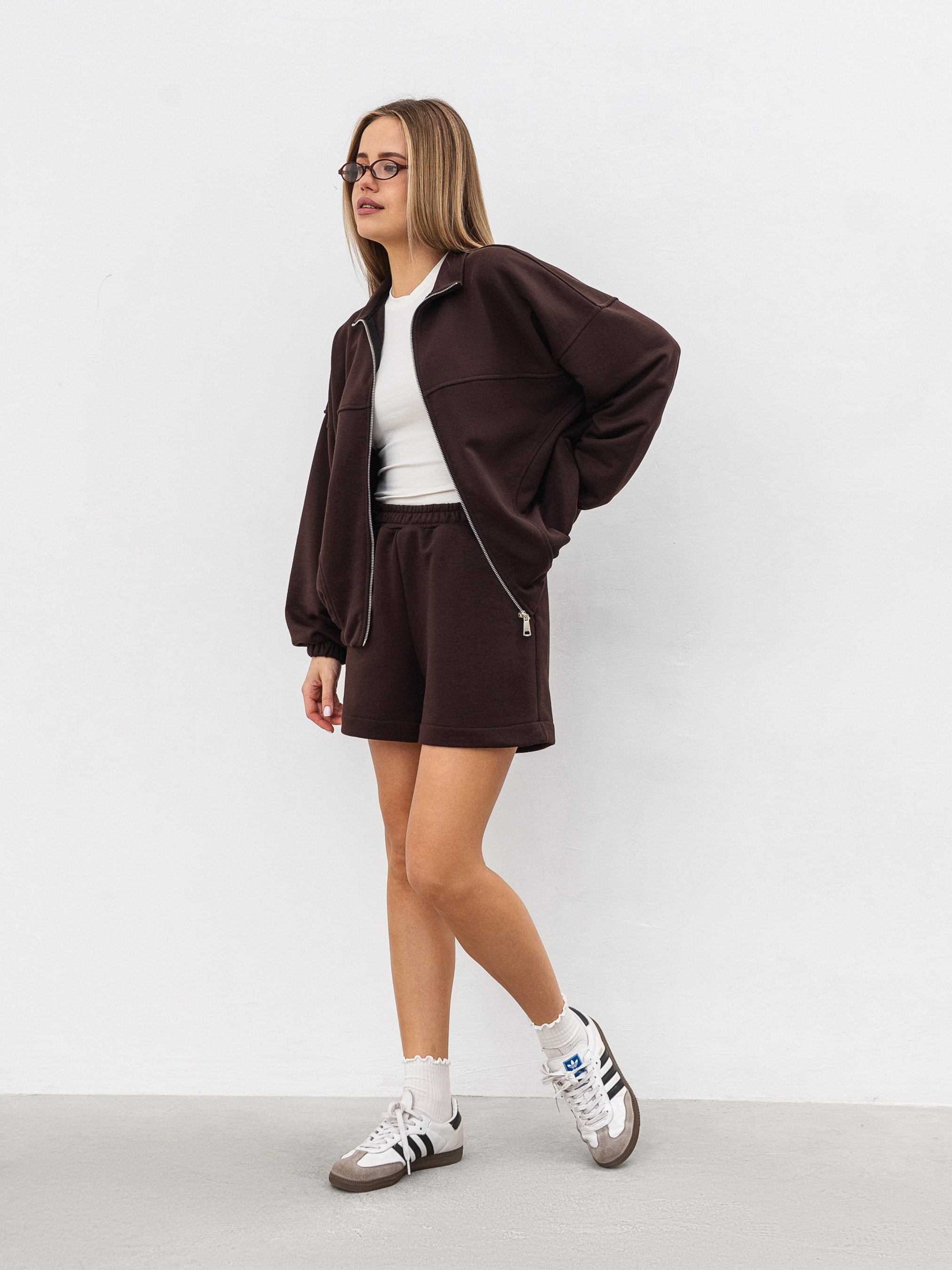 Шорты Фреш - это микс практичности и современного дизайна. Они имеют прямой силуэт, не сковывает фигуру, а высокая посадка обеспечивает комфорт и подчеркивает линию талии. Пояс на эластичной резинке обеспечивает удобную фиксацию без лишнего давления, что делает модель идеальной для активного дня. Два функциональных кармана добавляют практичности - в них легко помещаются мелкие вещи. Материал - трикотаж трехнитка (70% хлопок, 30% полиэстер). Он мягкий, приятный к телу, хорошо пропускает воздух и сохраняет форму даже после частых стирок. Благодаря натуральным волокнам шорты комфортные в жару, а благодаря полиэстру - износостойкие. Эта модель идеально подходит для создания повседневных и спортивных образов. Она прекрасно сочетаются с футболками, кроп-топами, свитшотами или худи, создавая стильный и непринужденный лук для отдыха, прогулок или путешествий. Xs Длина по внешнему шву: 39 см. Полуобхват бедер: 54 см Посадка: 30 см Полуобхват талии: 31 см (+резинка) S Длина по внешнему шву: 39 см. Полуобхват бедер: 55 см Посадка: 30 см Полуобхват талии: 32 см (+резинка) M Длина по внешнему шву: 39 см. Полуобхват бедер: 57 см Посадка: 31 см Полуобхват талии: 33 см (+резинка) L Длина по внешнему шву: 40 см. Полуобхват бедер: 60 см Посадка: 31 см Полуобхват талии: 35 см (+резинка)