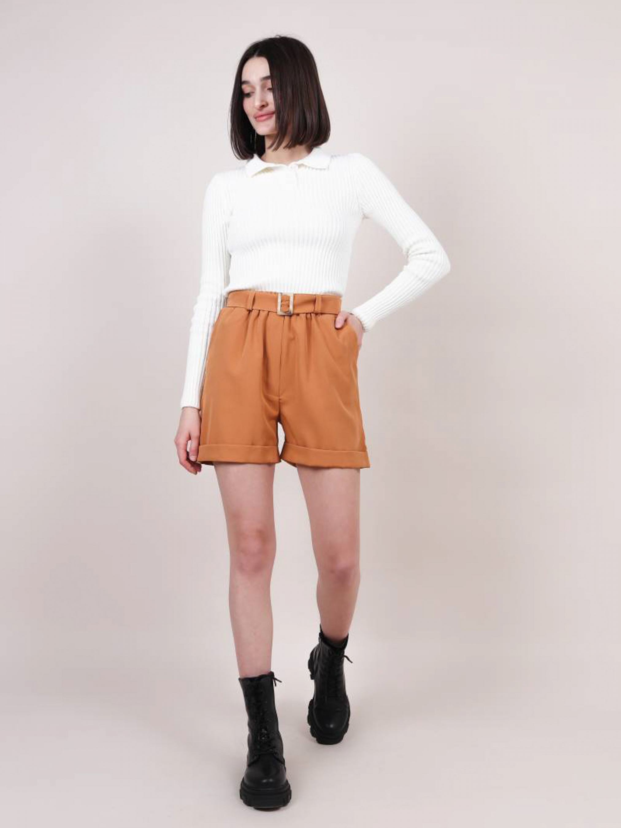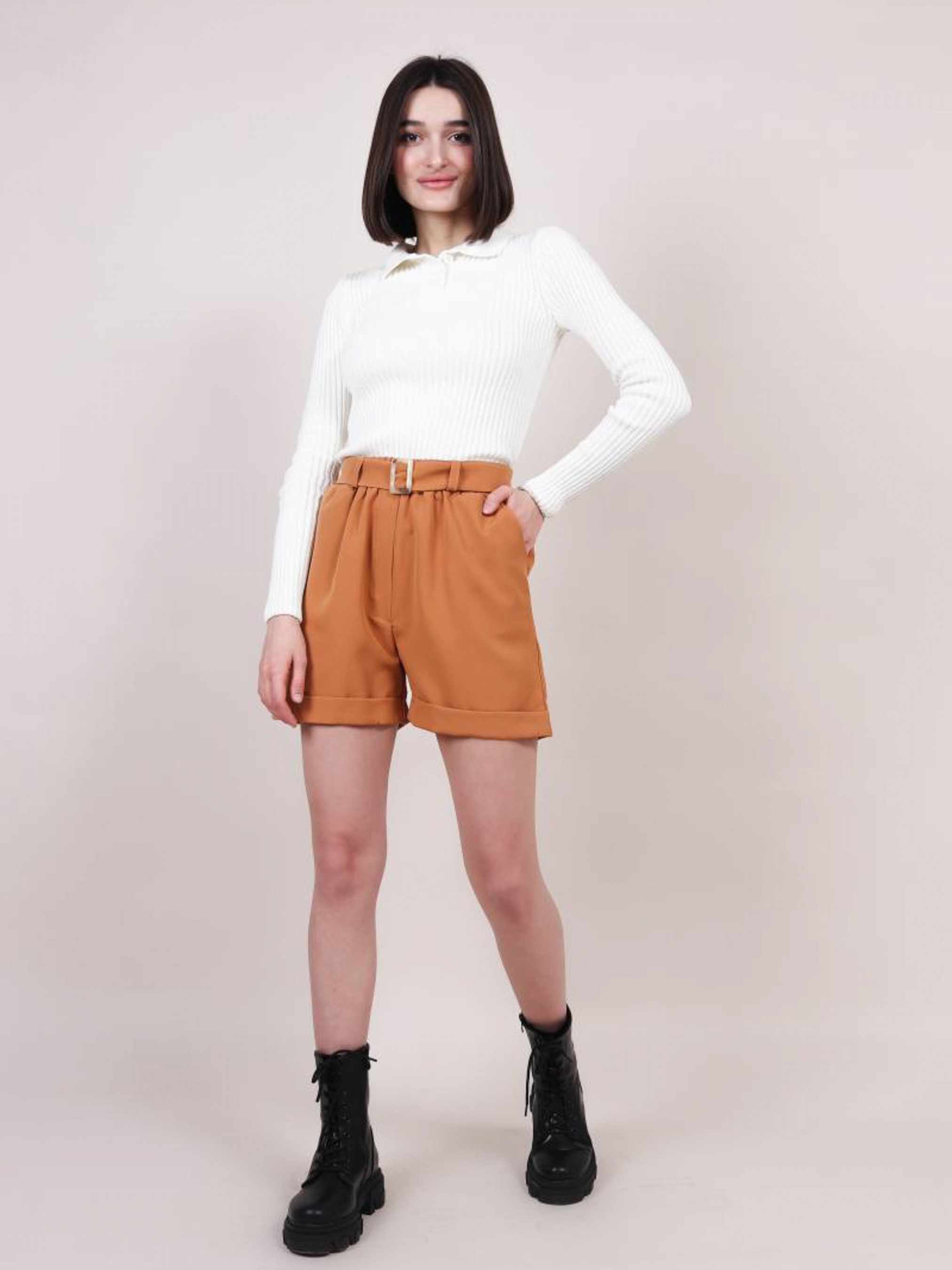 Шорты с подворотом на пояске "Техас" ROMASHKA Повседневные шорты на высокой посадке. Состав: 50%/50% полиэстер, вискоза. Модель на резинке, есть подвороты и кармашки. Посадка высокая. S Длина по спине: 38 см Полуобхват бедер: 84-92 см Ширина по низу: 84-92 см Полуобхват талии : 60-68 см M Длина по спине : 38 см Полуобхват бедер: 90-96 см Ширина по низу: 90-96 см Полуобхват талии: 65-72 см L Длина по спине : 38 см Полуобхват бедер: 95-100 см Ширина по низу: 95-100 см Полуобхват талии: 70-78 см
