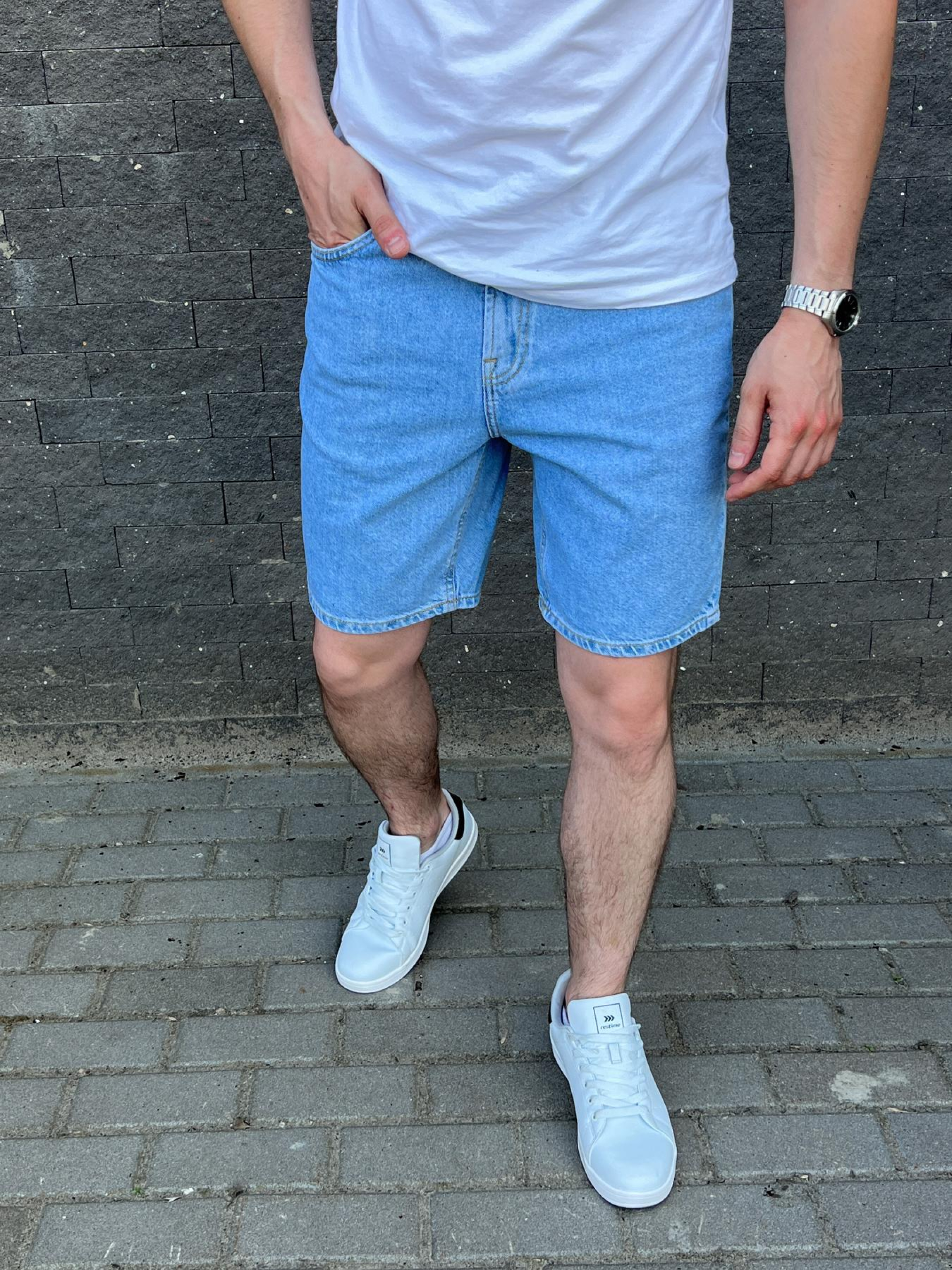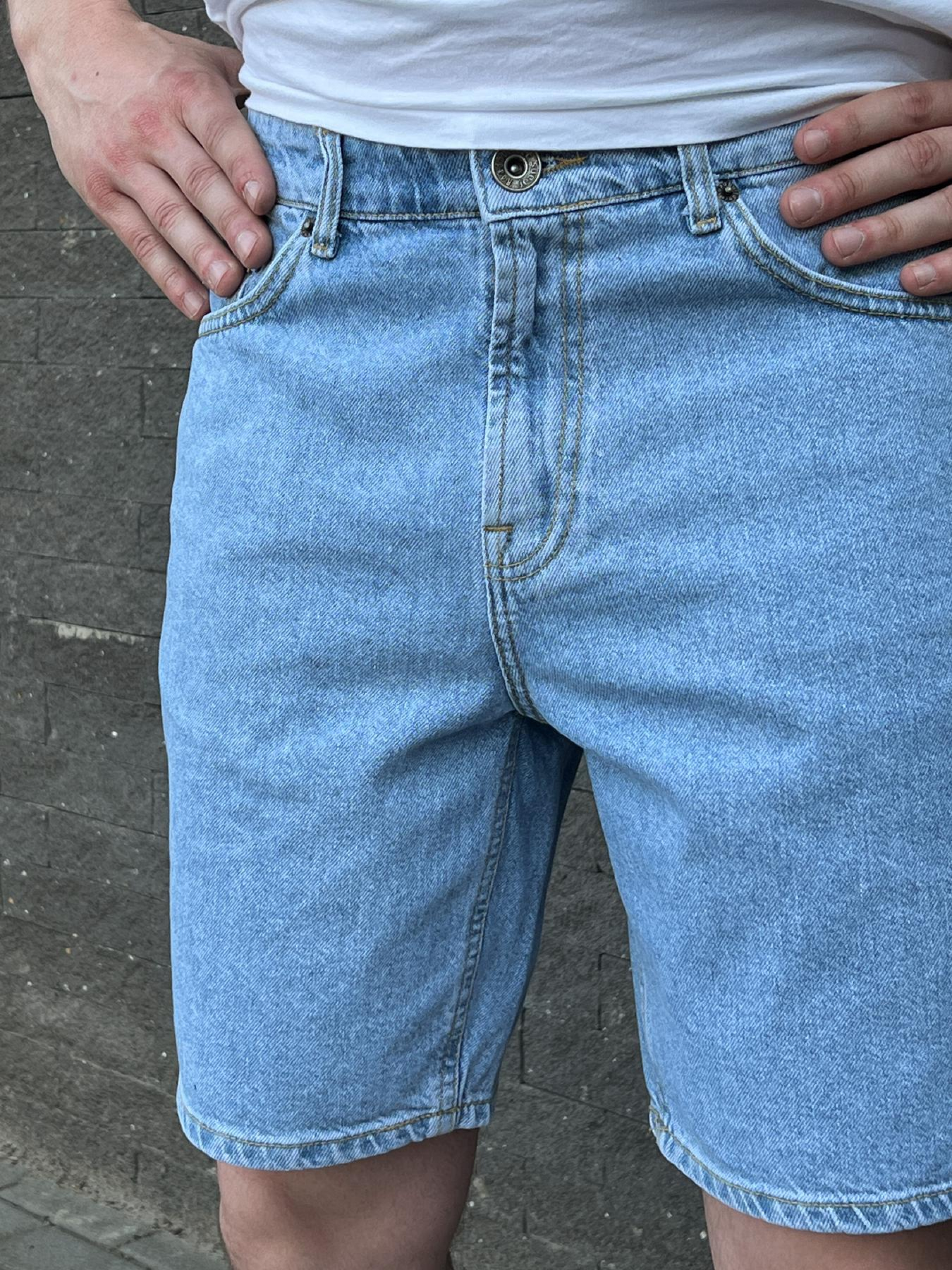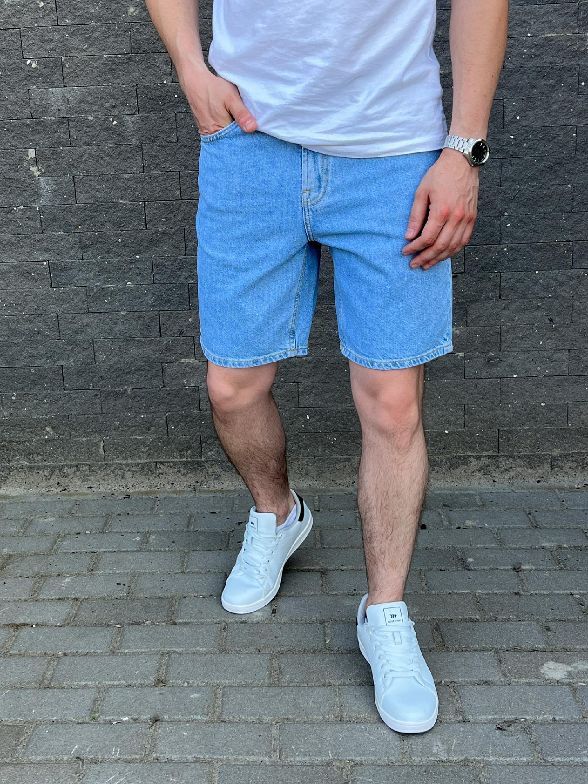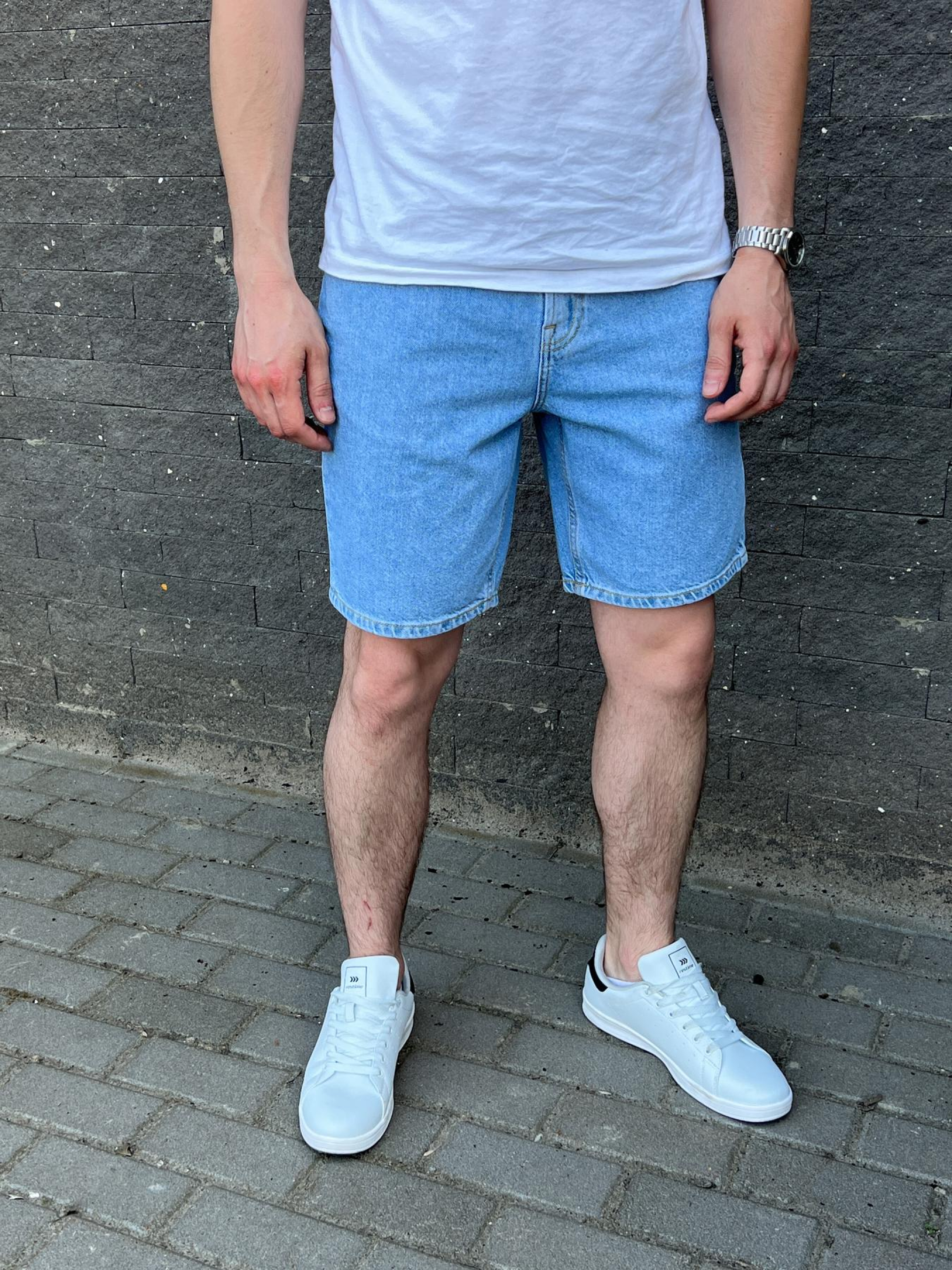 Шорты джинсовые мужские голубые Деним от бренда ТУР Характеристика: - Цвет: синий, голубой - Материал: 98% хлопок, 2% эластан.- премиум качество. - металлическая фурнитура. - Пошиты по стандартам Евро компаний