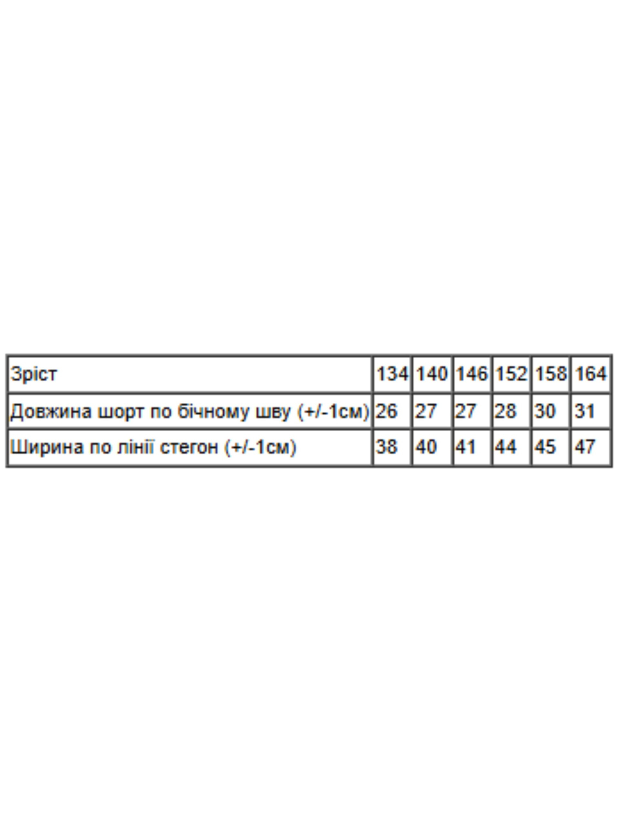 Полотно: двонитка принтована Склад полотна: 80% бавовна, 20% поліестер Зріст: 116,134-164 Літні шорти для дівчинки - незамінний елемент літнього гардеробу. Вони виготовлені з високоякісних матеріалів, що забезпечують комфорт та свіжість під час спекотних днів. Шорти мають стильний дизайн і різноманітні кольори, які доповнять образ вашої маленької модниці. Цей одяг підходить для активних ігор, прогулянок або відпочинку на морі. Замовте літні шорти для дівчинки на сайті та додайте свіжих кольорів у її літній гардероб. Доставка по всій Україні!