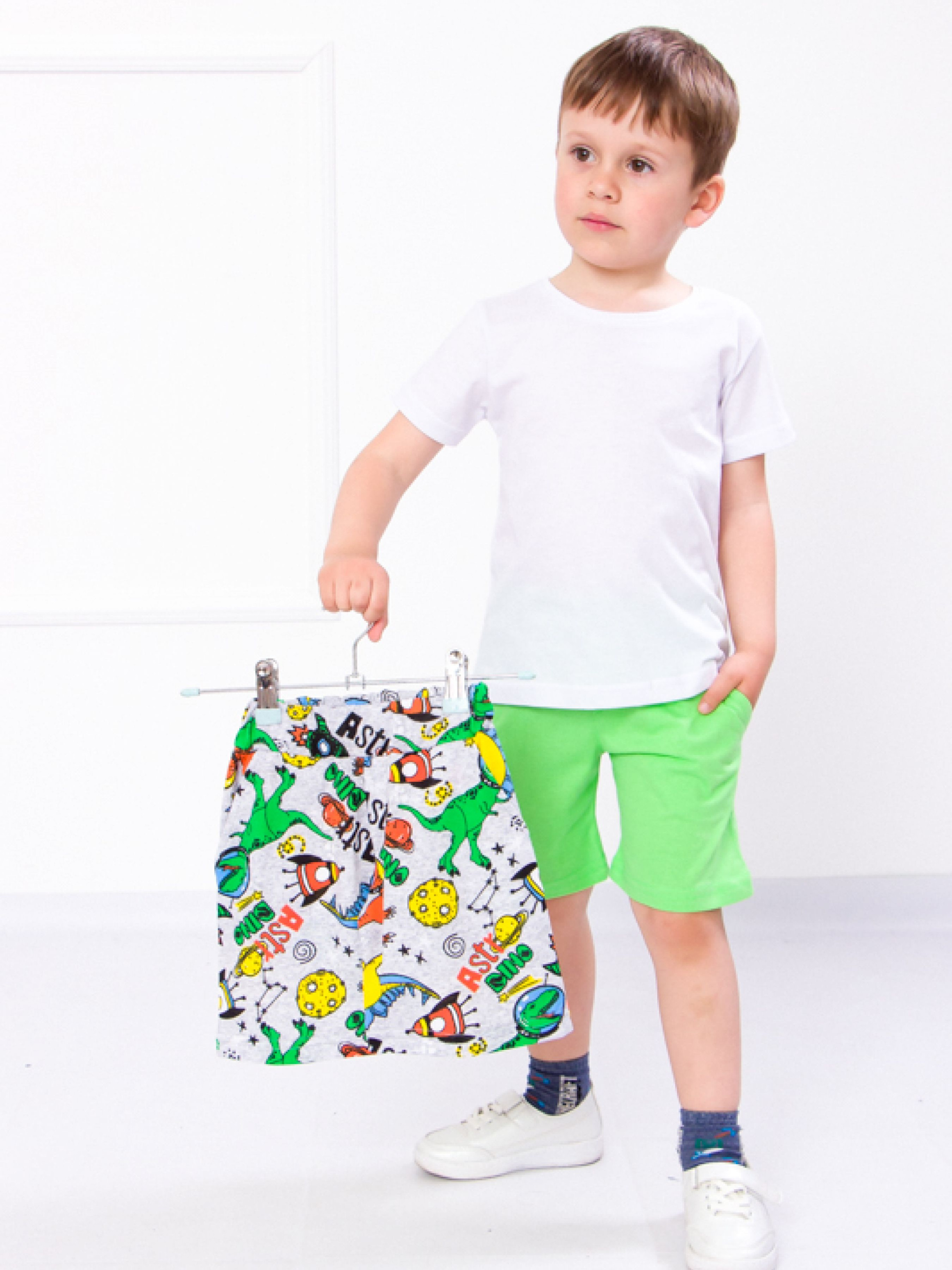 Комплект з двох шорт для хлопчика "Стиль" .Полотно: кулір однотонний + кулір набивний Склад полотна: 100% бавовна Зріст: 98-128 Шорти - це незамінний літній елемент одягу який дуже подобається дітям. Вони дозволяють дитині активно грати не обмежуючи рухів. Якщо ваша дитина - непосида тоді комплект шорт від ТМ Носи Своє стане практичним придбанням. Виріб призначений для хлопчика. Шорти оснащені широкою і м'якою резинкою на поясі. Дві бічні кишені дозволяють дитині взяти з собою на прогулянку улюблений гаджет або заховати ключі. Шорти пошиті з м'якої приємної до тіла еластичної тканини в складі якої міститься 100% натуральної бавовни. Полотно не кошлатиться і не розтягується забезпечуючи тривалу службу своєму стильному власникові. Догляд: дбайливе прання при t не більше 40С; прасувати при t не більше 110С; з вивороту трохи вологим.