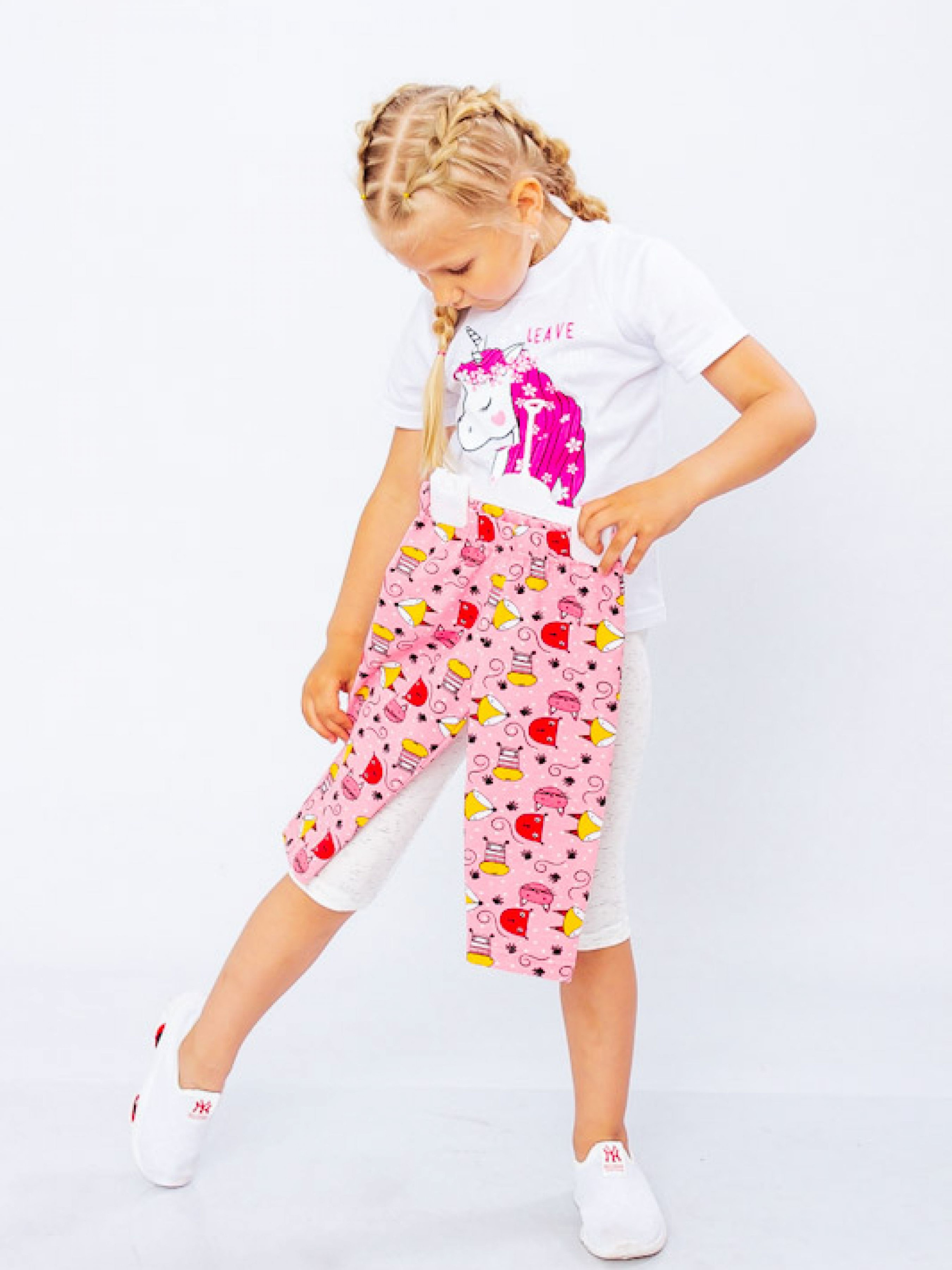 Набір трес для дівчинки (2шт.) Полотно: фулікра принтована Склад полотна: 95% бавовни 5% лайкри Зріст: 104-128 Набір трес для дівчинки від бренду Носи Своє створені для того щоб вашій малечі було комфортно легко і затишно. Виріб пошито з високоякісного полотна - фулікра яка не парить і не подразнює шкіру. Склад матеріалу - 95% натуральної бавовни і 5% еластану: міцний зносостійкий повітропроникний легкий і м'який. Треси відмінно підходять і для прогулянок і для сімейного відпочинку. Крій що облягає гарантує свободу рухів а щільна еластична резинка на поясі запобігає сповзанню виробу. Лосини від Носи Своє обов'язково сподобаються вашій дитині і вона буде носити їх з величезним задоволенням. Догляд: прати при температурі 30 ° С вручну або в делікатному режимі в пральній машині. Слабке віджимання. Сушка на свіжому повітрі без потрапляння прямих сонячних променів. Прасувати річ слабонагрітою праскою з виворітного боку.